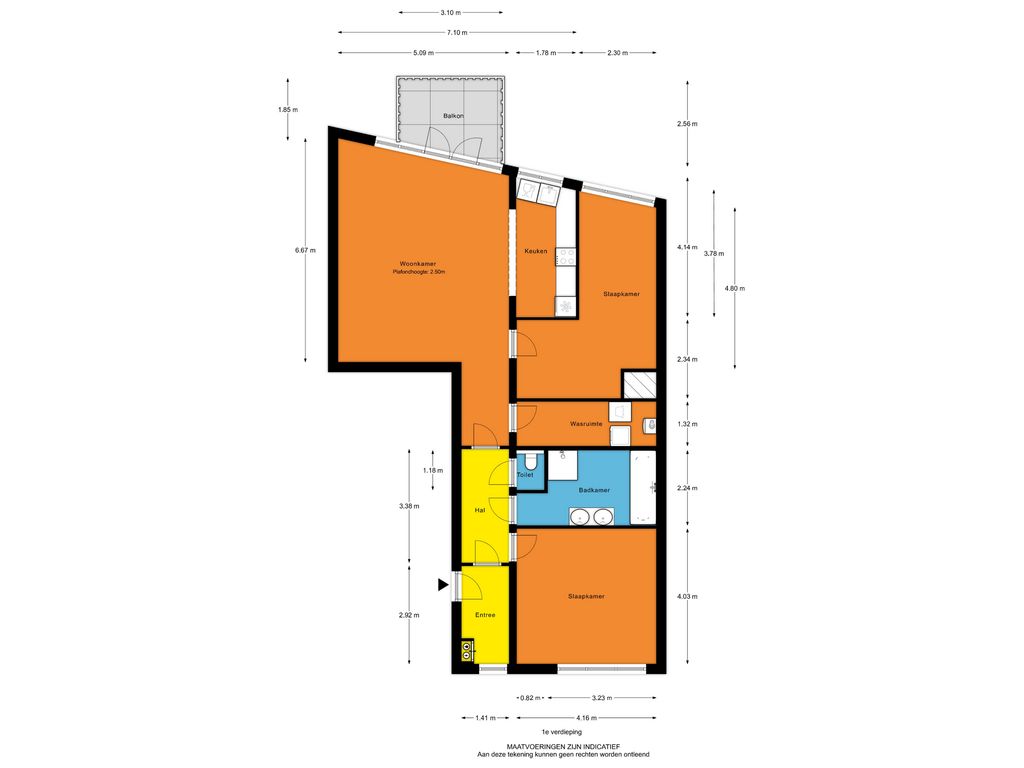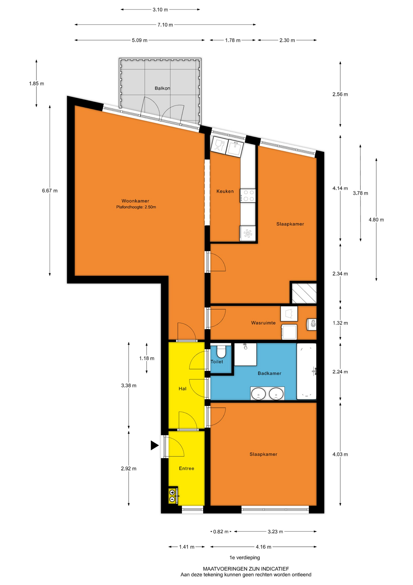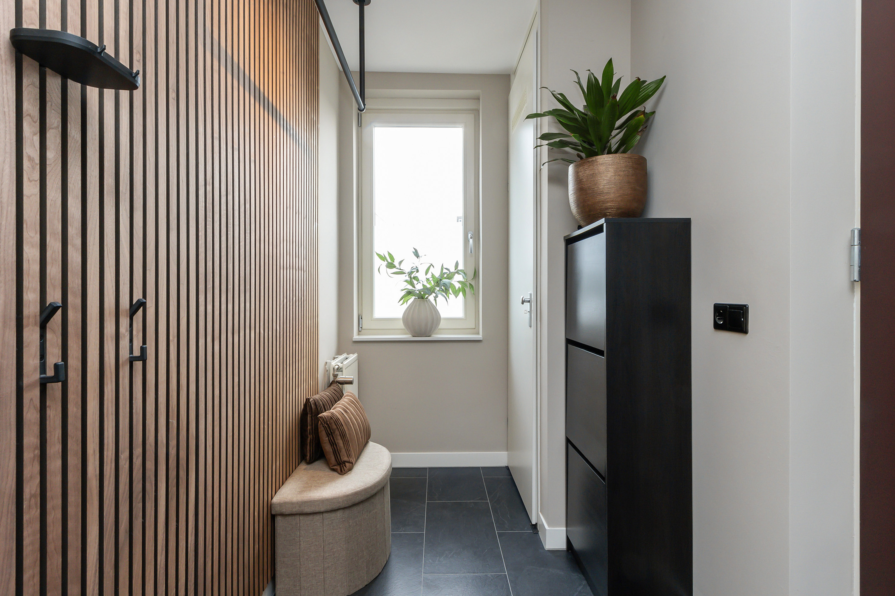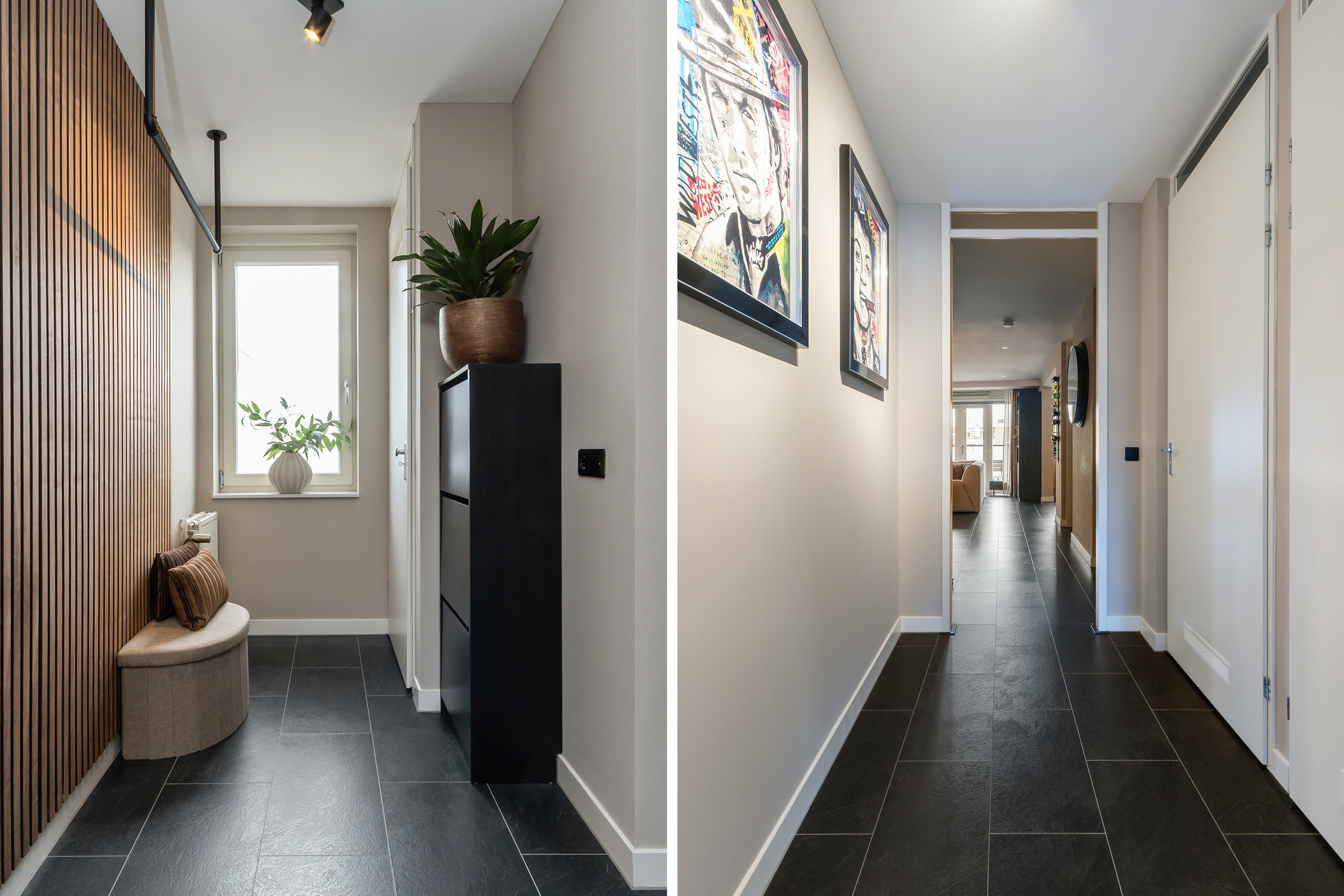 - Entree, hal, meterkast, toilet en toegang tot de vertrekken;