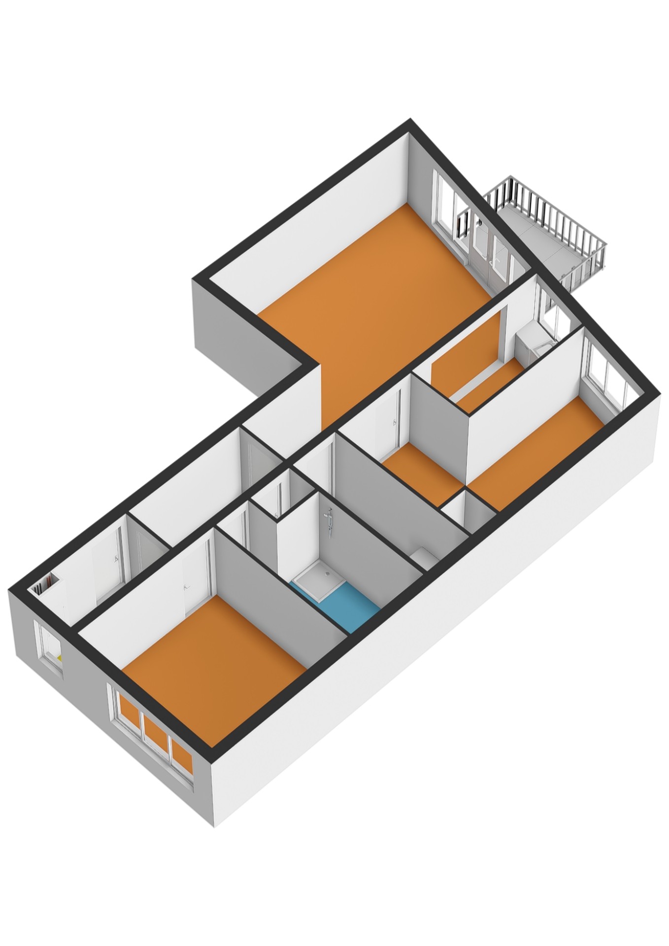 - Slaapkamer 2 (L-vormig) gelegen aan voorzijde;