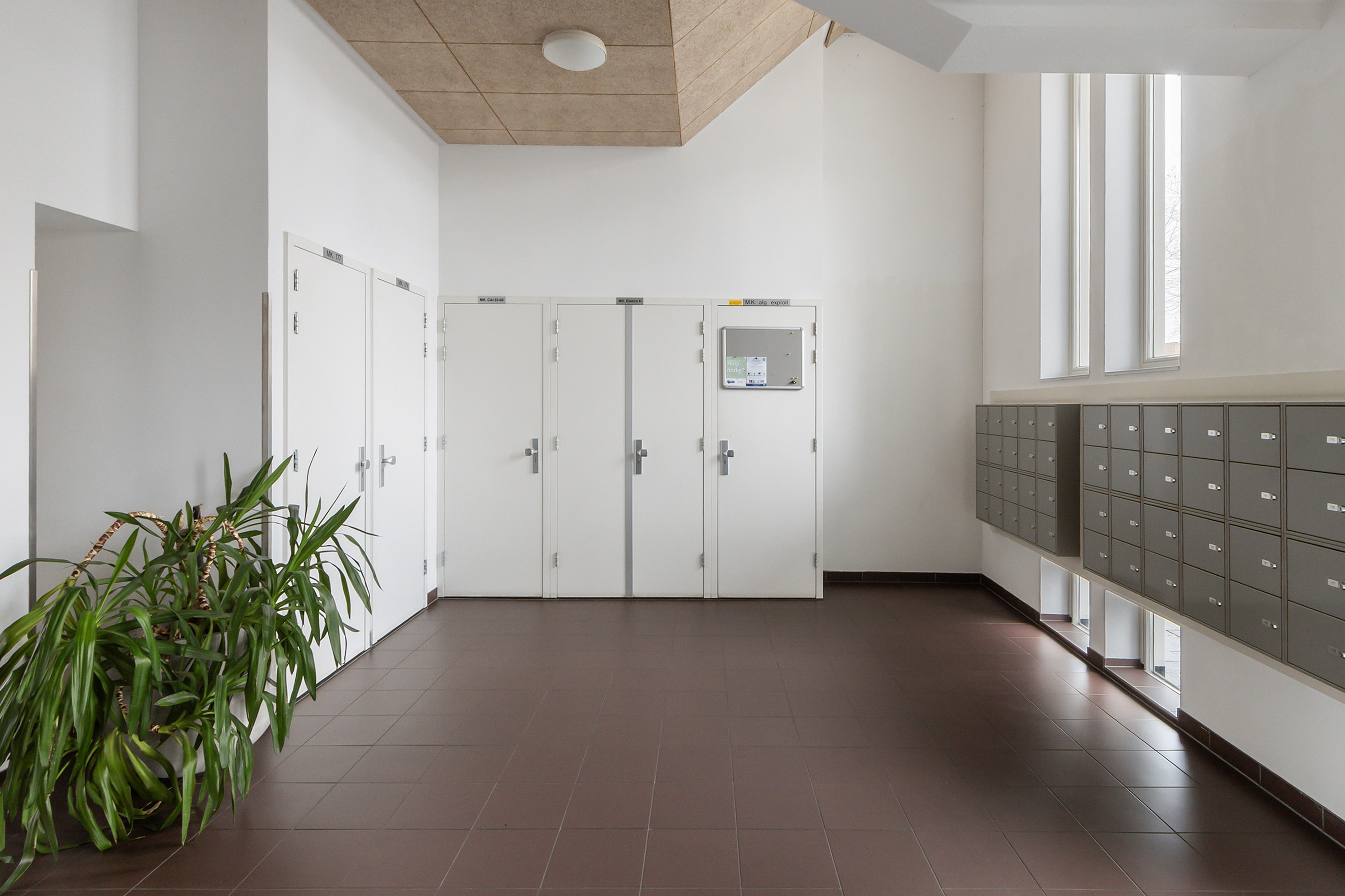 - Nette, afgesloten centrale entree met een representatieve uitstraling, voorzien van brievenbussen, lift, trapopgang en toegang tot het parkeerterrein en de bergingen in de onderbouw.