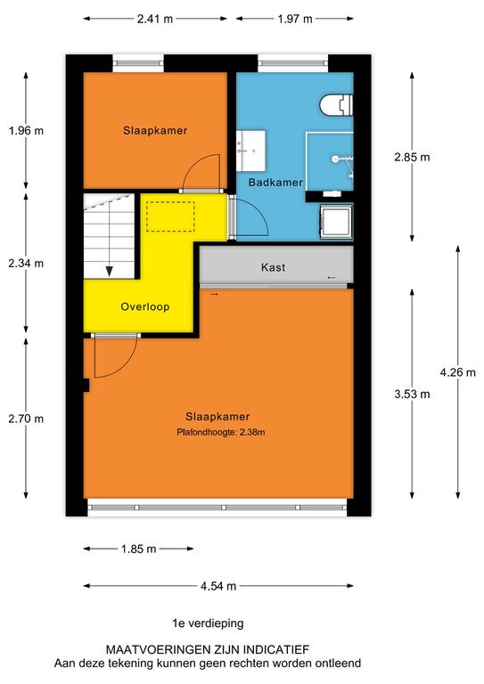 - Eerste verdieping: wandafwerking met glasvlies of verfwerk. Vloerafwerking met laminaat.