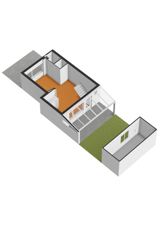 - Zonnige achtertuin gelegen op het westen. Ruim terras met overkapping van aluminium met polycarbonaat dakplaten. Leuk speelplaatsje met kunstgras. Berging van hout met bitumen dak.