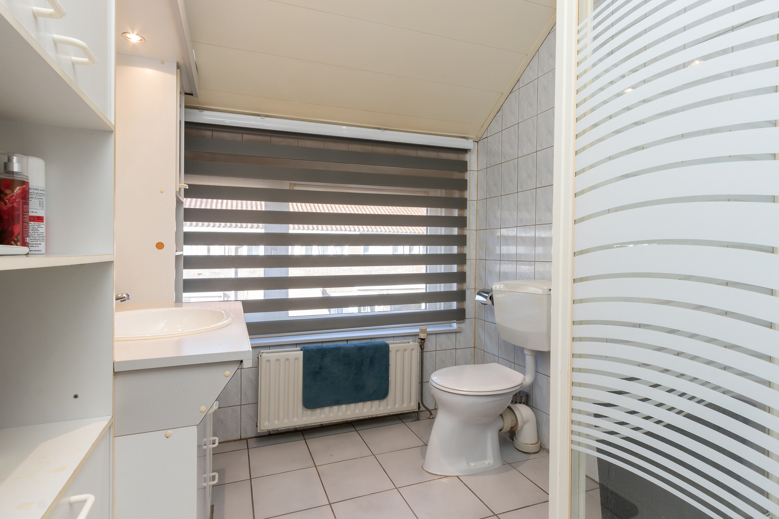 - Tussenhal met toegang tot wasruimte, recent vernieuwd half betegeld toilet en toegang tot achtertuin.