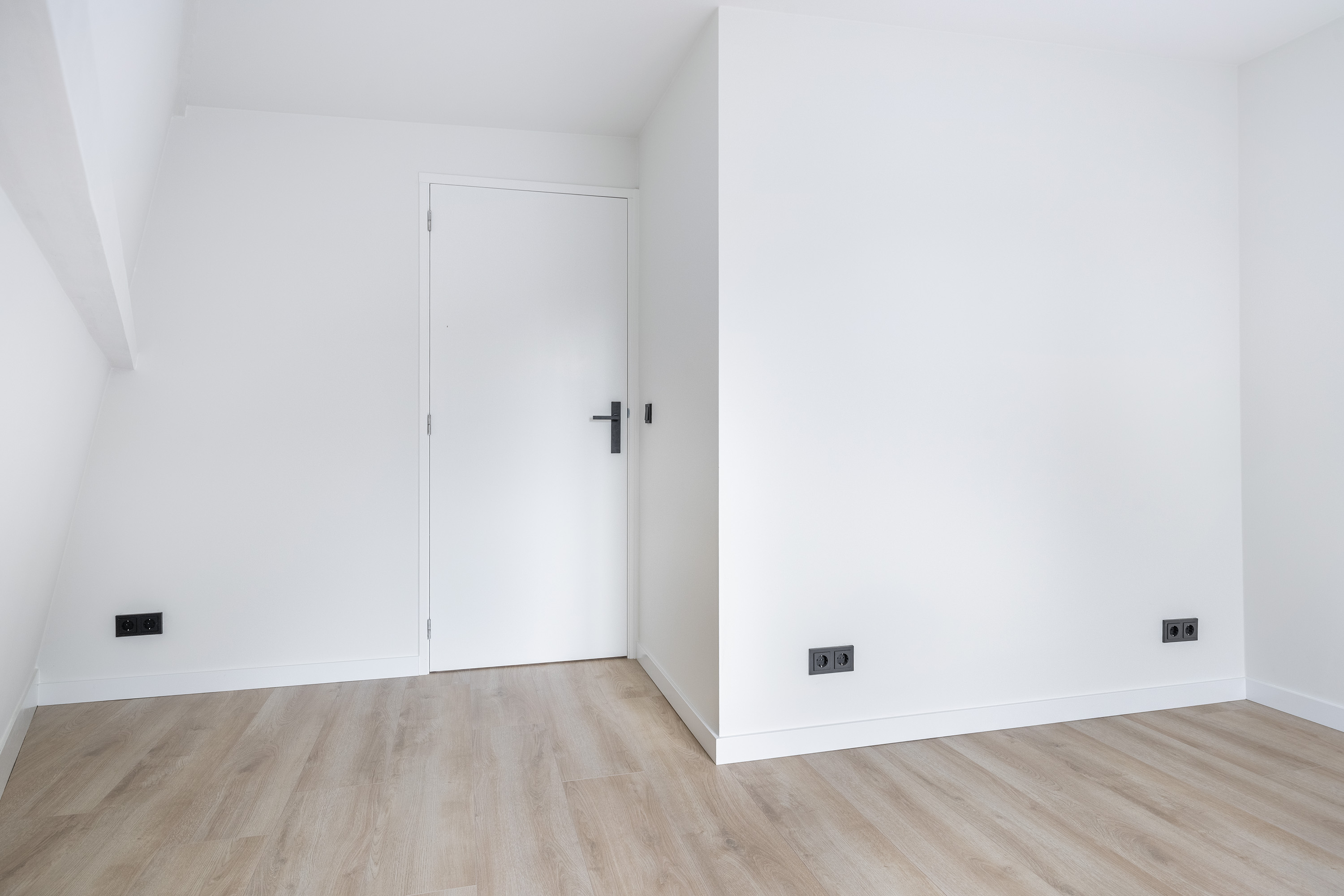 - Glad gestucte en wit gesausde wanden en plafonds;
