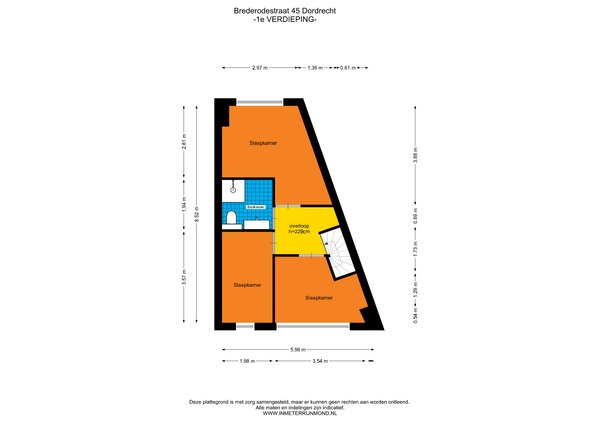 De vermelde afmetingen/ oppervlakten in deze informatie zijn gemeten op basis van de BBMI (Branche Brede Meetinstructie). De meetinstructie is bedoeld om een meer eenduidige manier van meten toe te passen voor het geven van een indicatie van de gebruiksoppervlakte. De meetinstructie sluit verschillen in meetuitkomsten niet volledig uit, door bijvoorbeeld interpretatieverschillen, afrondingen of beperkingen bij het uitvoeren van de meting.