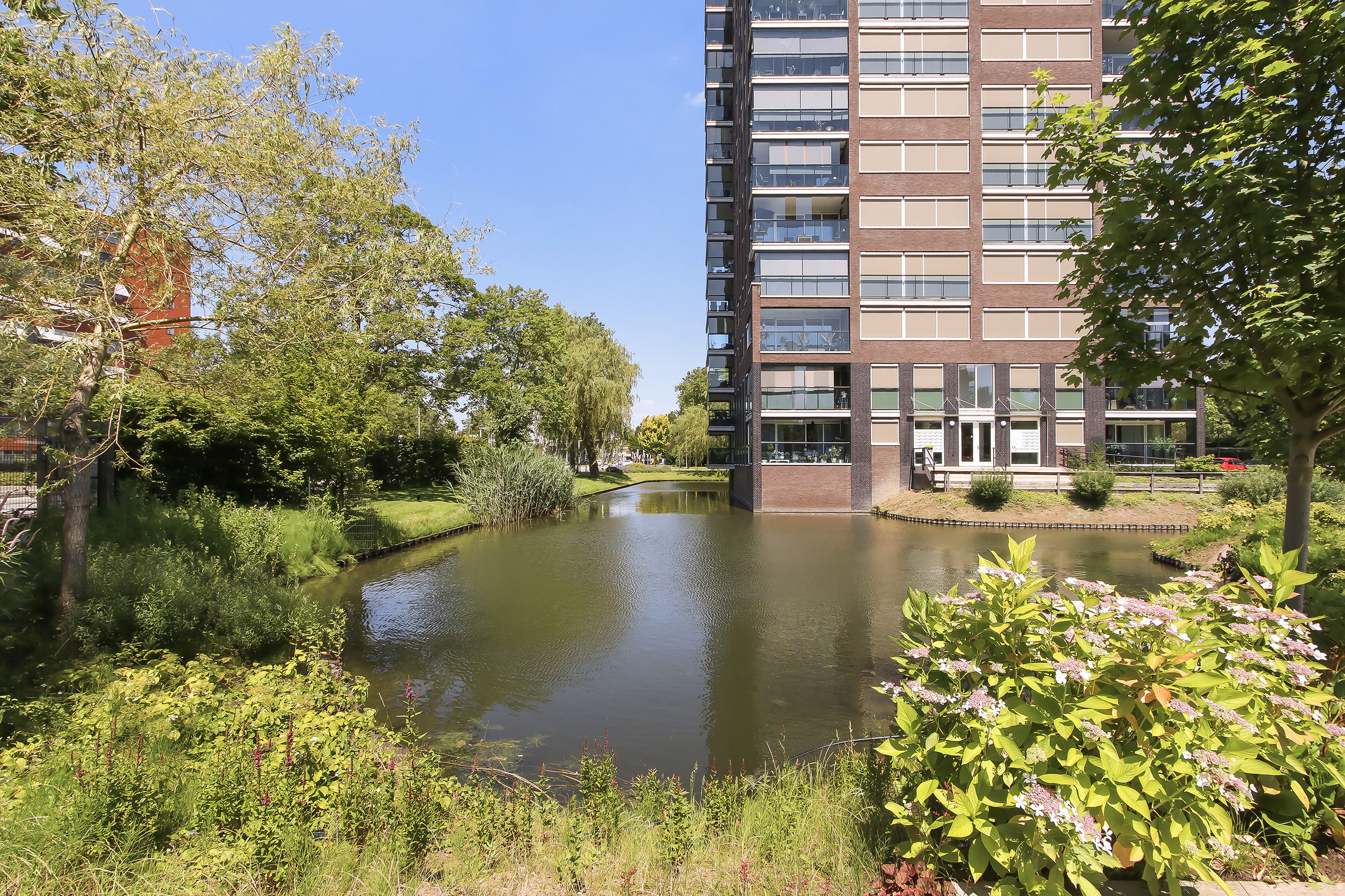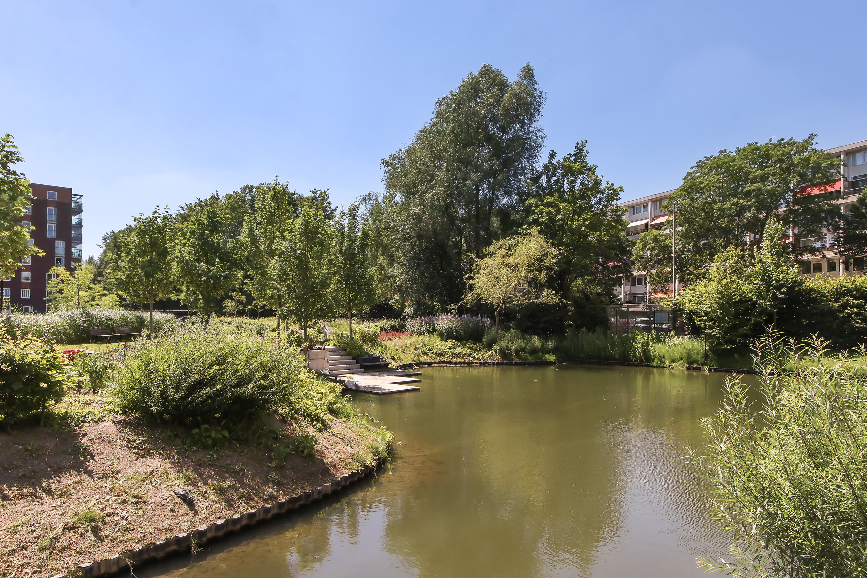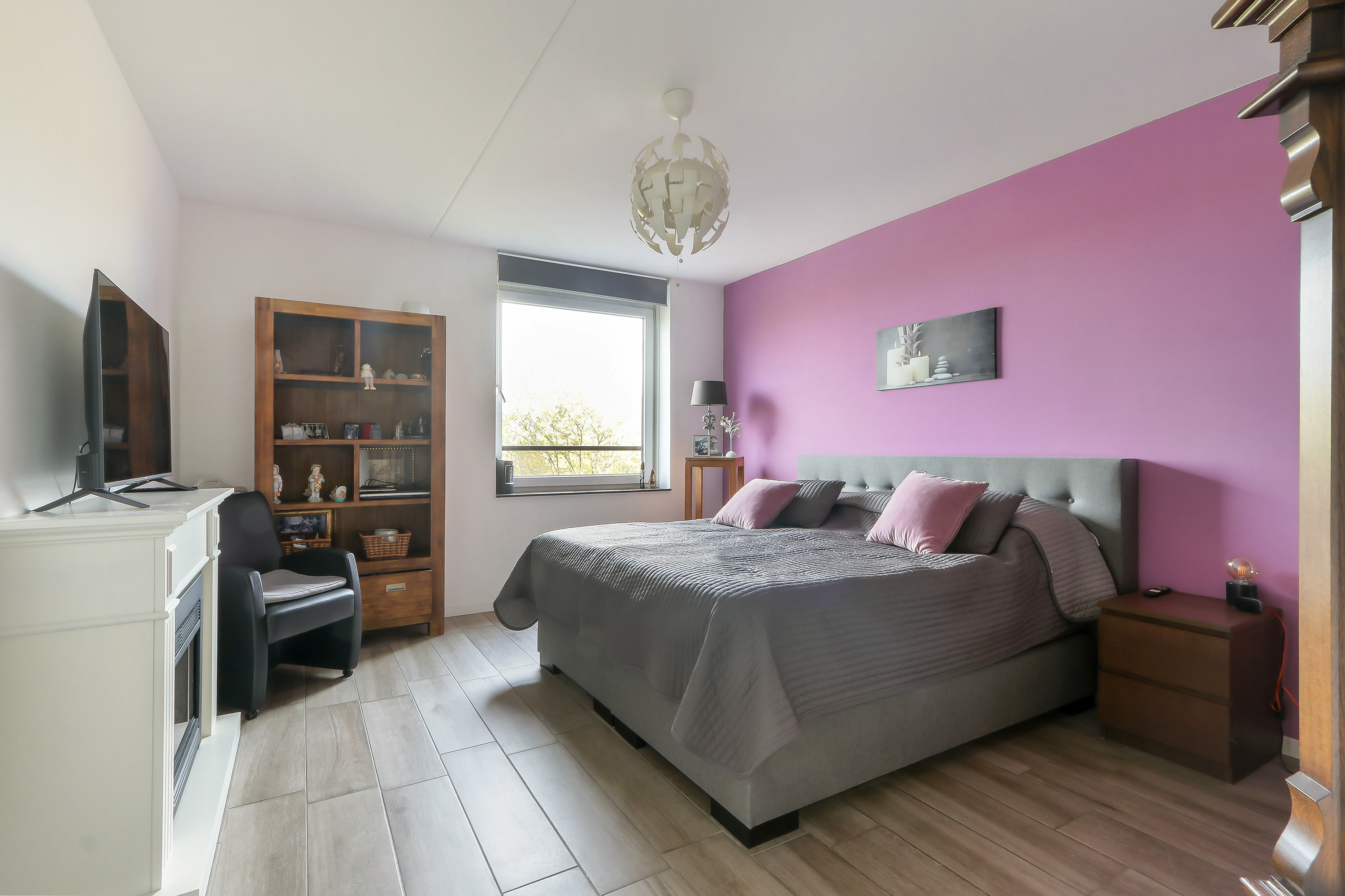 - Slaapkamer 1, gelegen aan de noordzijde van het appartement met uitzicht op een vijver;