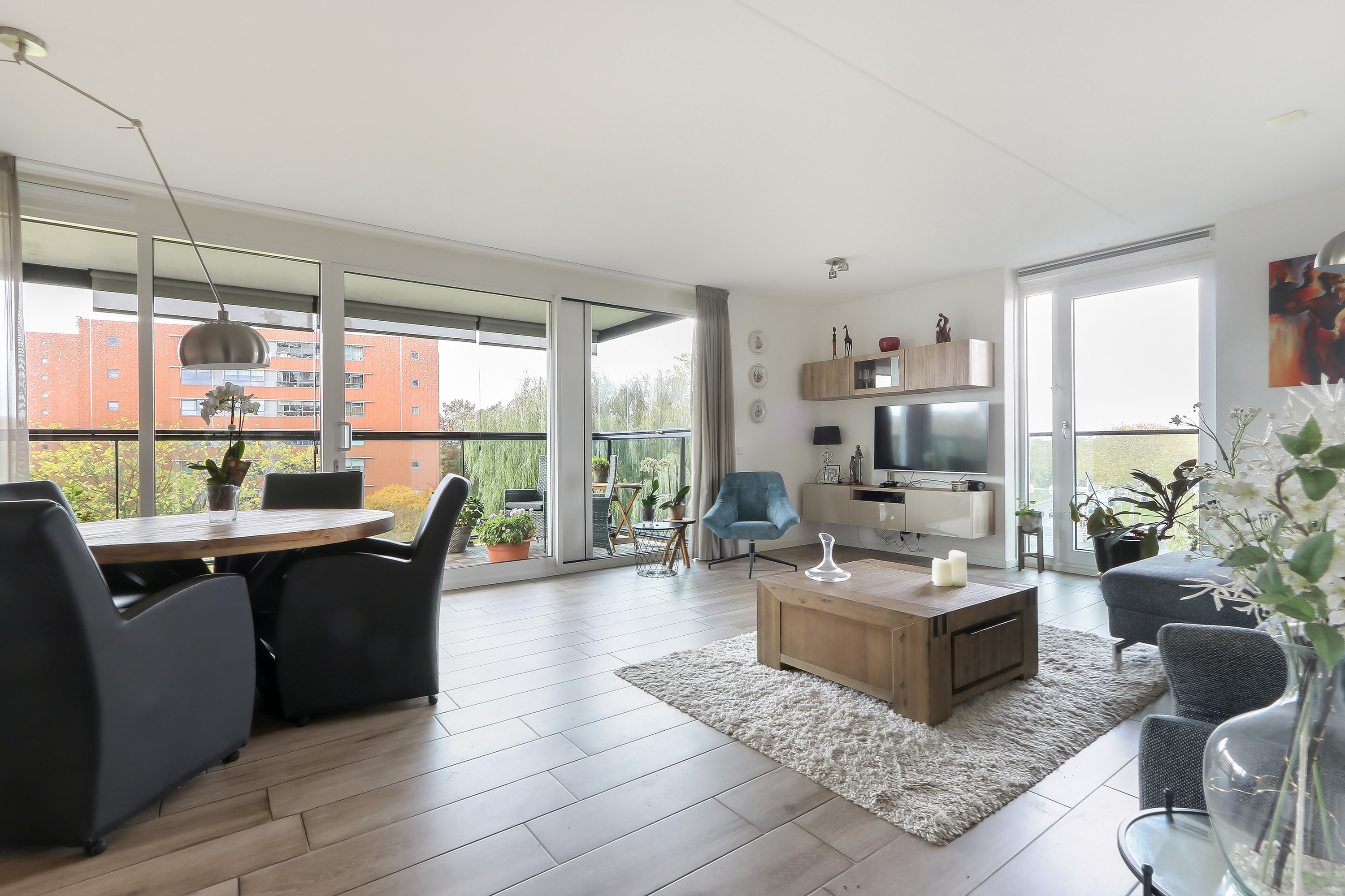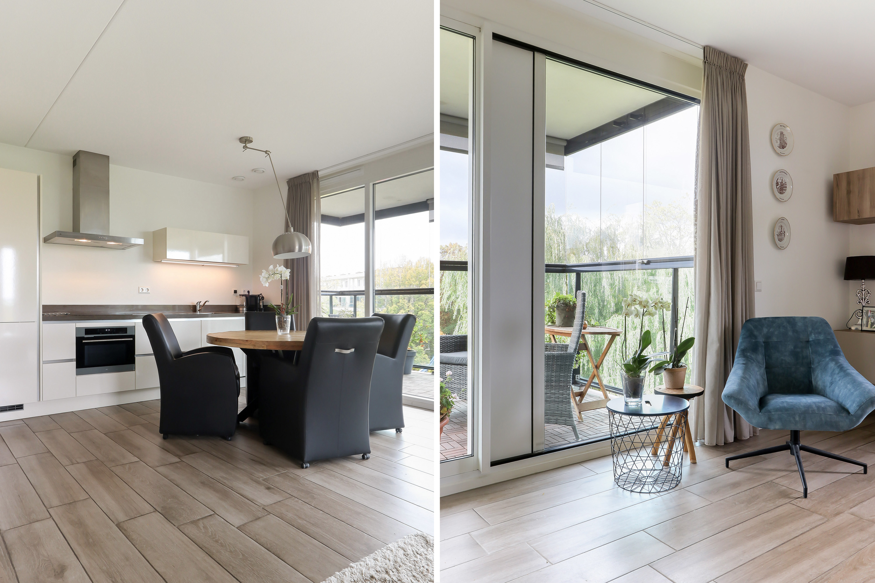- Heerlijk lichte woonkamer met schuifpui naar het zonnige balkon en een Frans balkon voor extra daglichttoetreding;