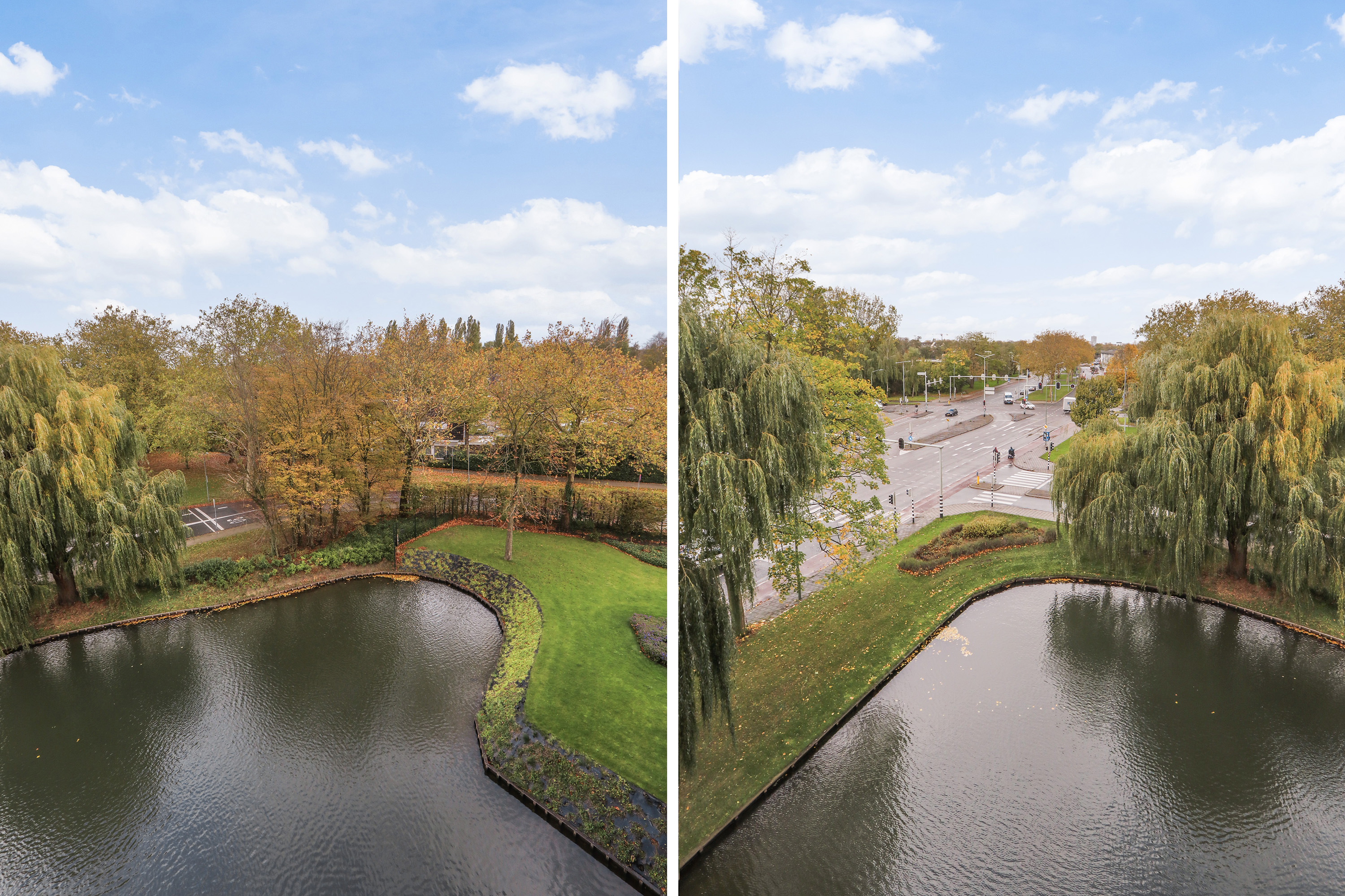 - Slaapkamer 2, gelegen aan de noordzijde van het appartement met uitzicht op een vijver;