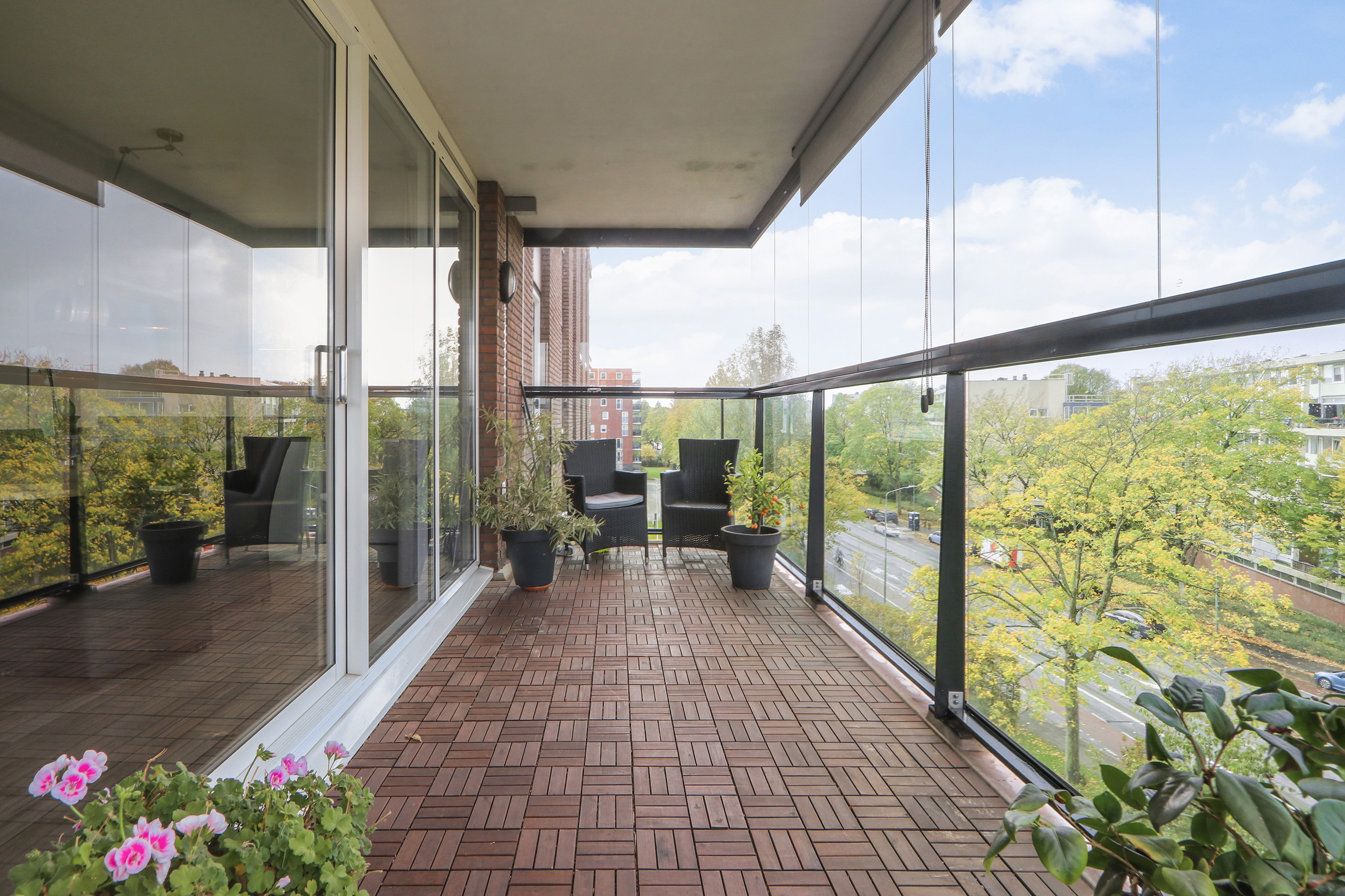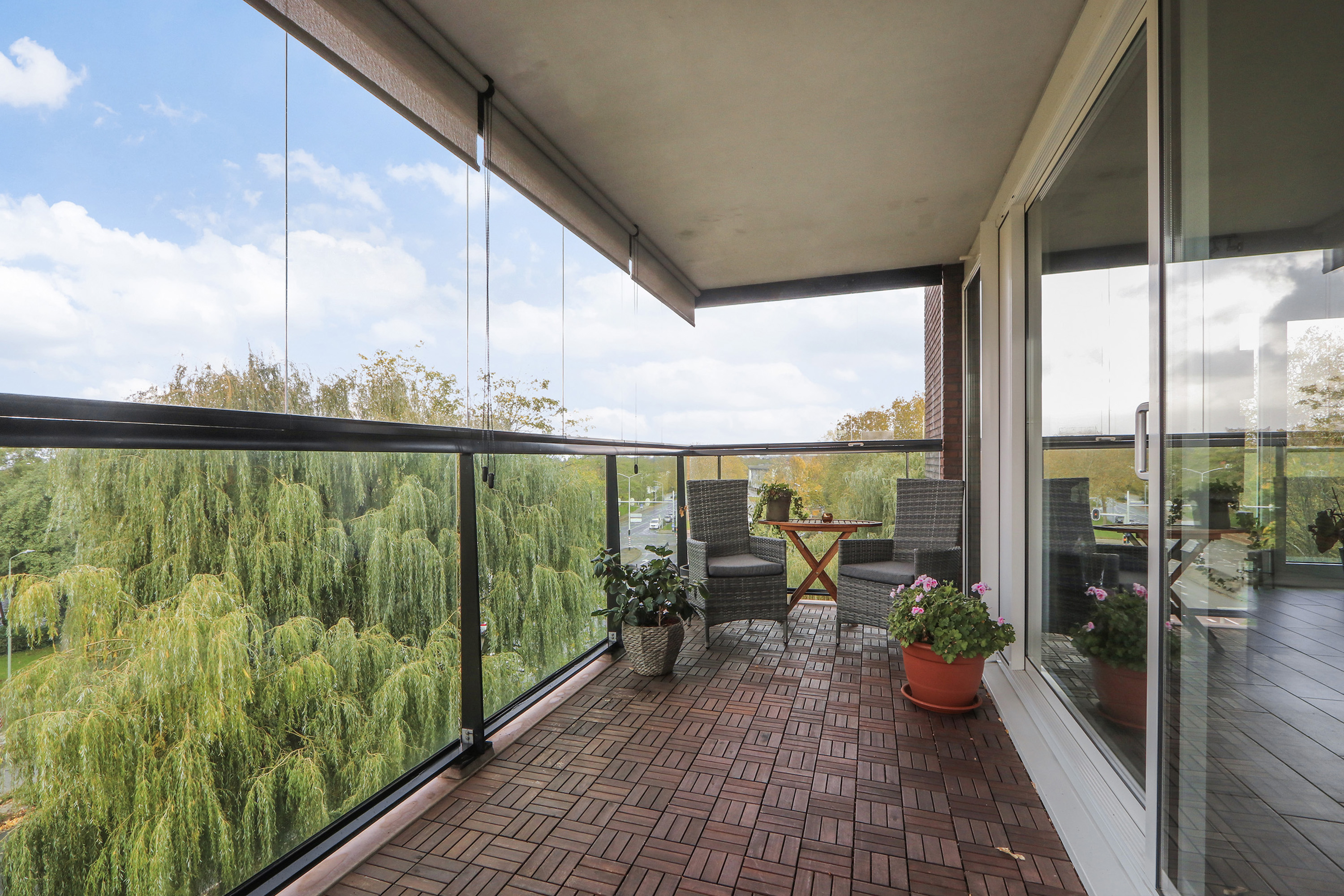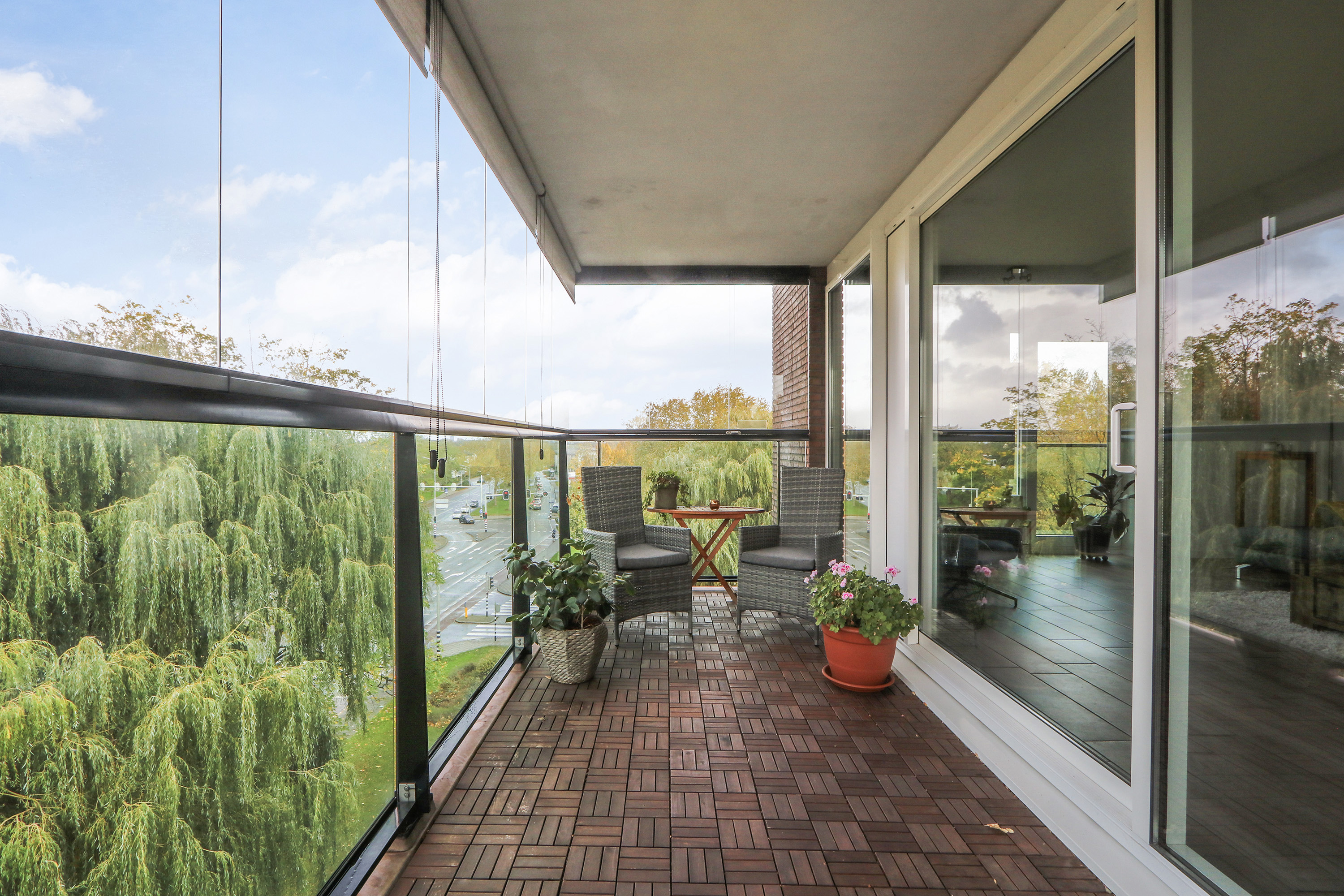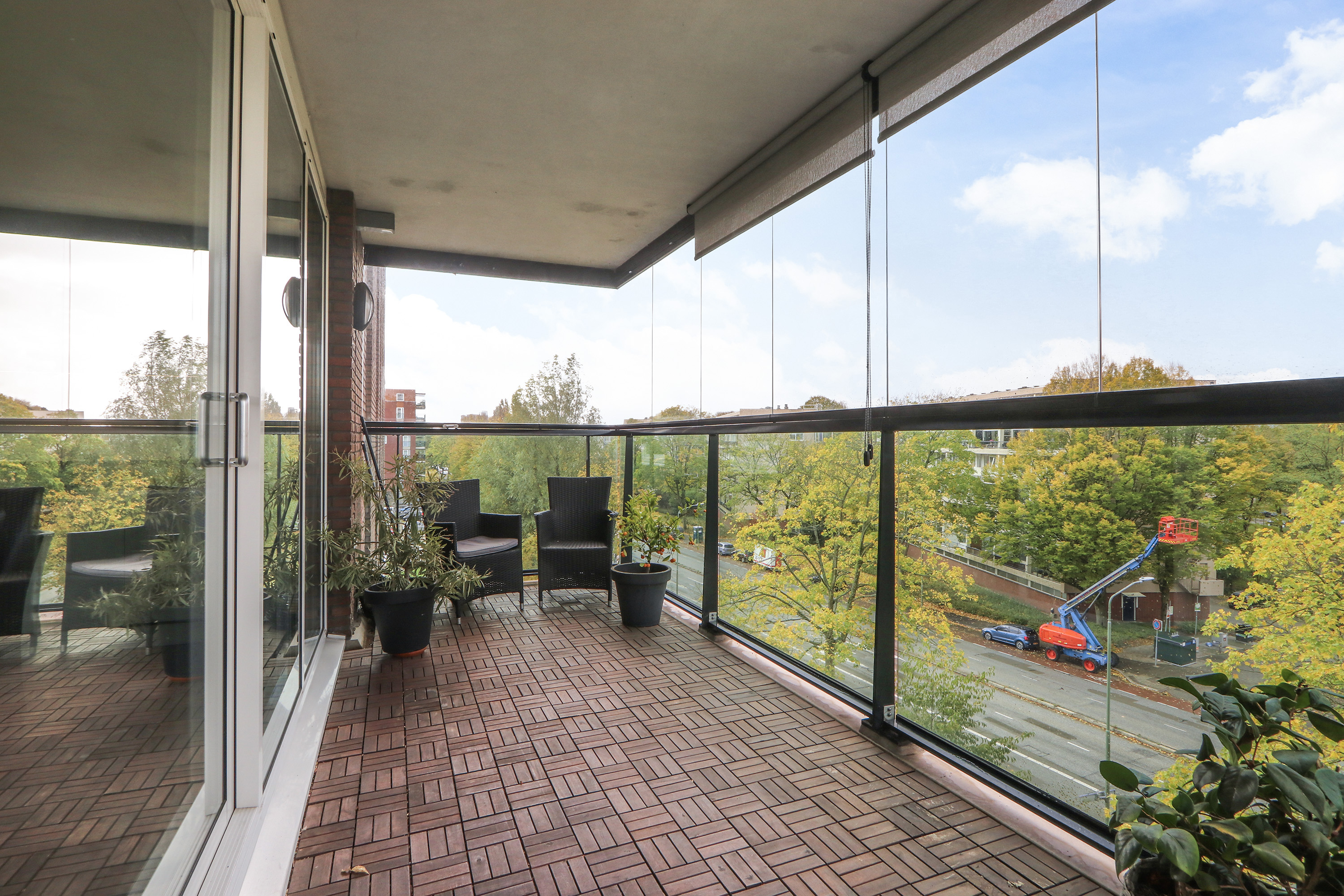 - Balkon van circa 12 m², gesitueerd op het westen, met een hardglazen balustrade en houtlook vlonders als vloerafwerking. Het terras kan d.m.v. hardglazen schuifpanelen volledig afgesloten worden, waardoor u altijd gebruik kunt maken van deze ruimte. Zonwering aan de voorzijde van het balkon;