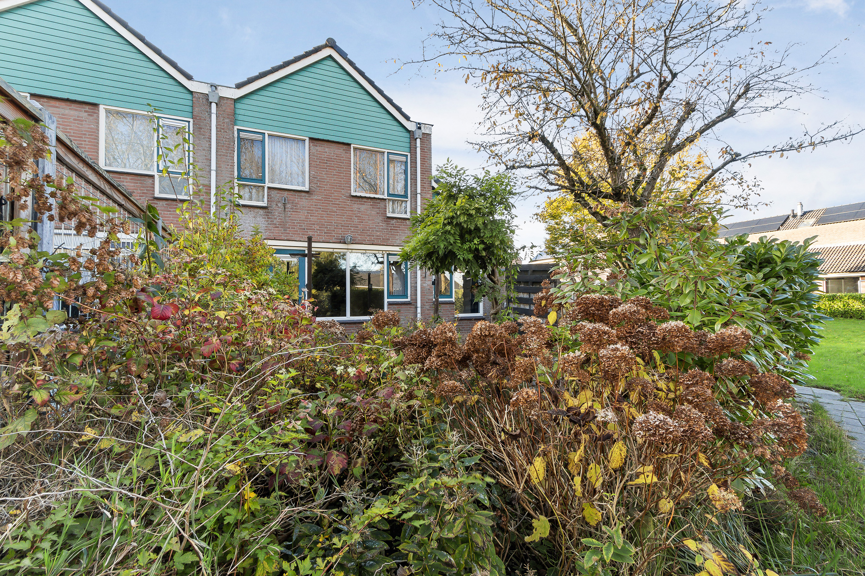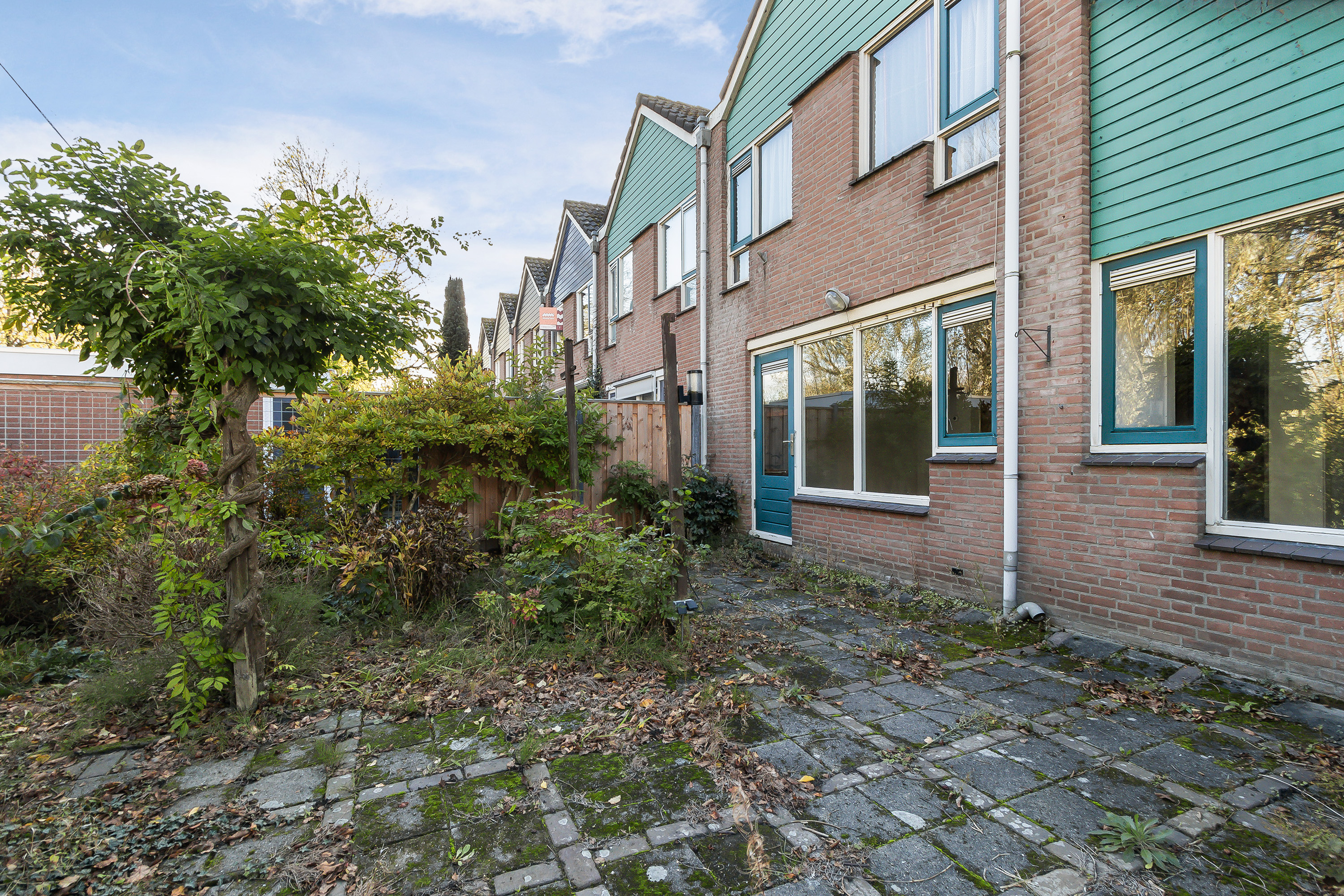 De achtertuin (ligging op het oosten) is ca. 9.90 m. diep (diepste punt) en ca. 8.75 m. breed t.p.v. de achtergevel en biedt volop mogelijkheden om een heerlijke buitenruimte te creëren. De tuin loopt door langs de zijkant van de woning naar de voortuin, waar zich ook de stenen aangebouwde berging bevindt van ca. 7 m². Handig voor het stallen van fietsen, tuinspullen en gereedschap.