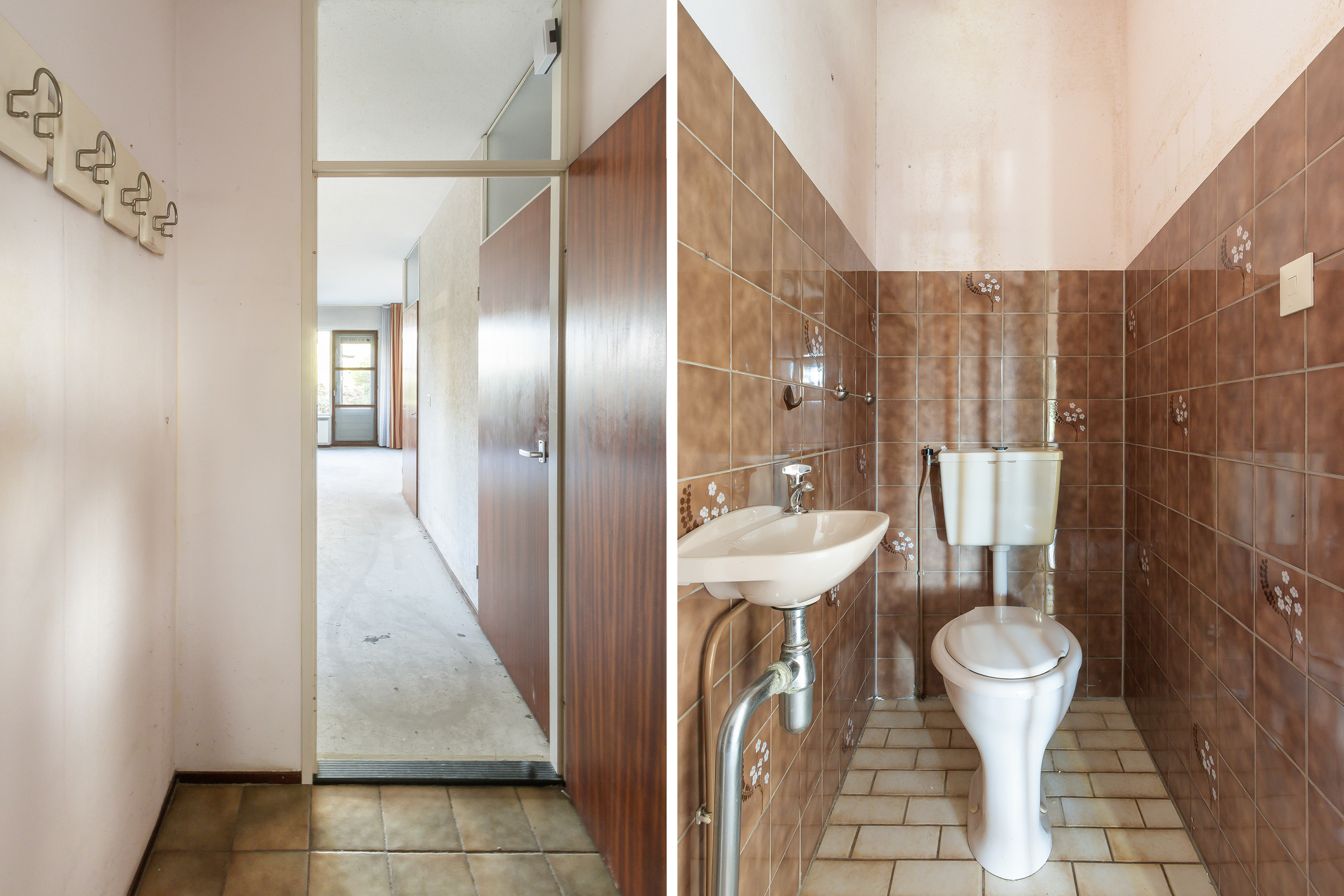 - Portaal/trappenhuis met separaat toilet en trapopgang naar de verdieping;