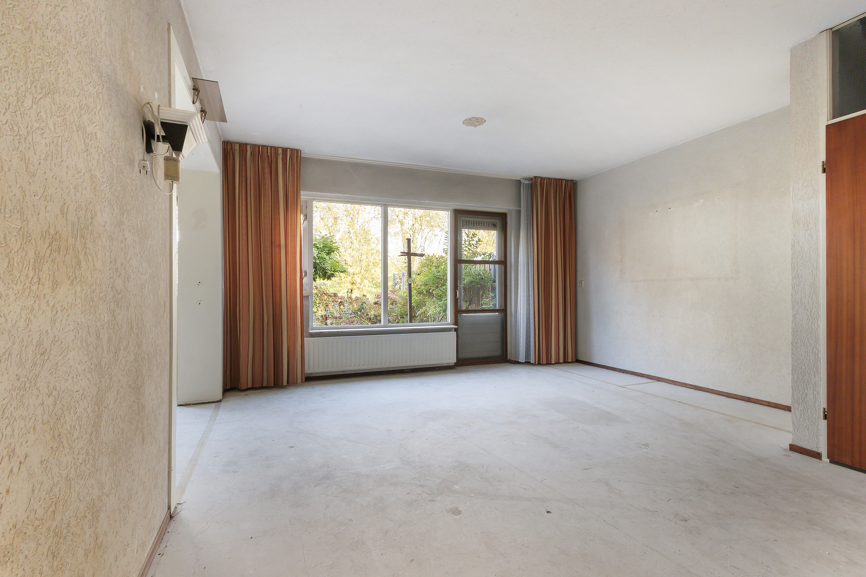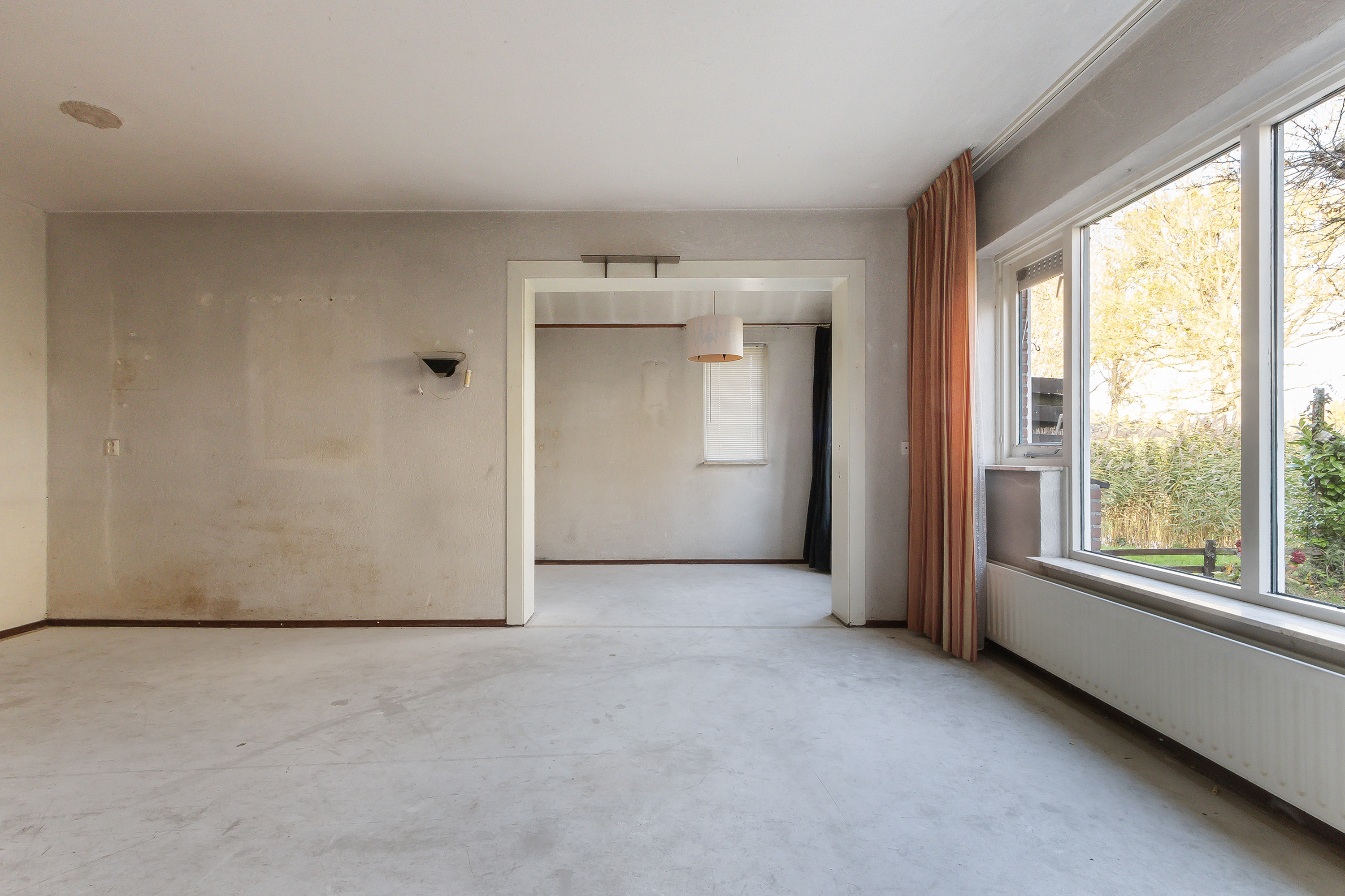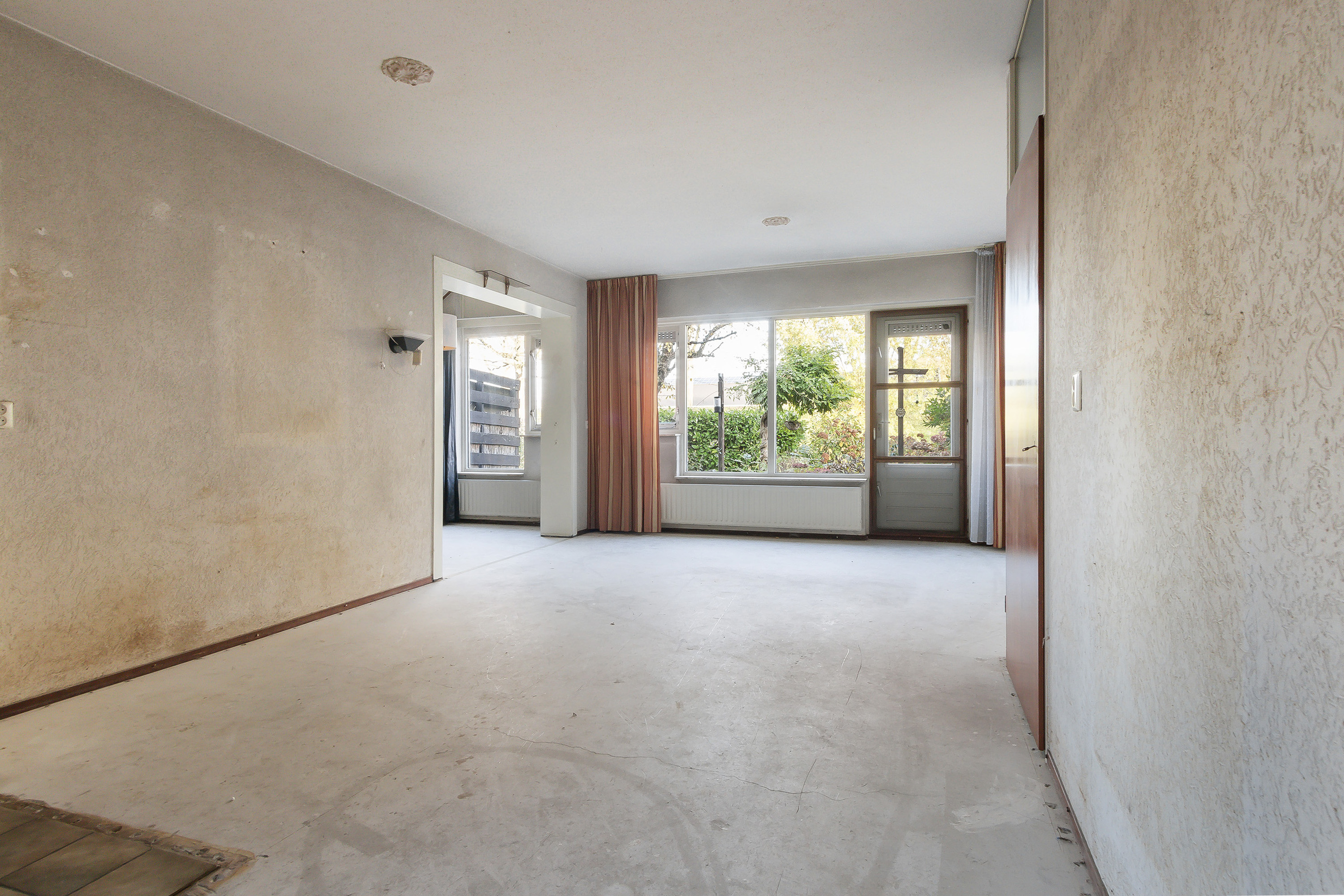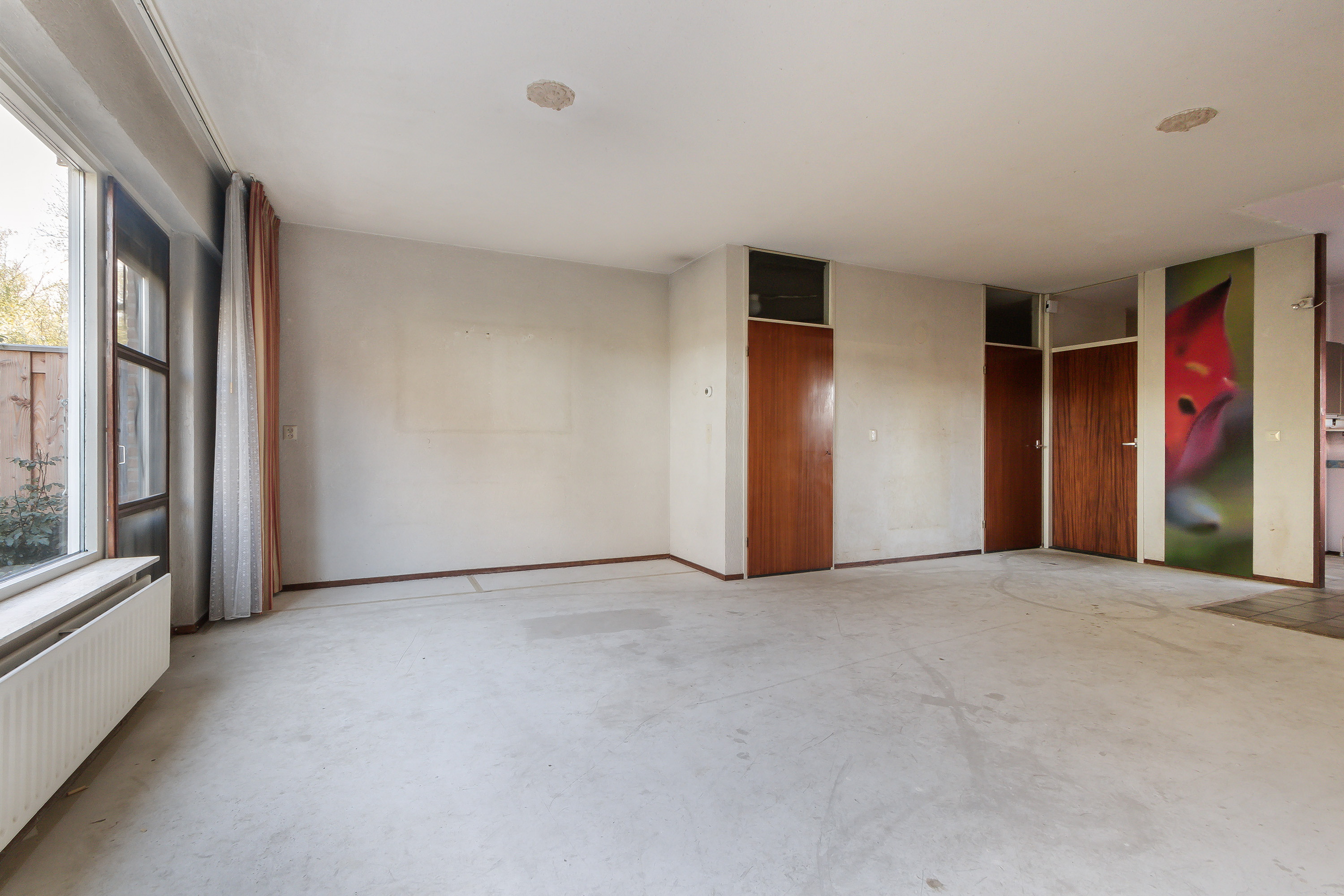 - Tuingerichte, woning brede woonkamer, extra ruim dankzij uitbouw aan de zijkant, trapkast, toegang naar de achtertuin en tot het trappenhuis;