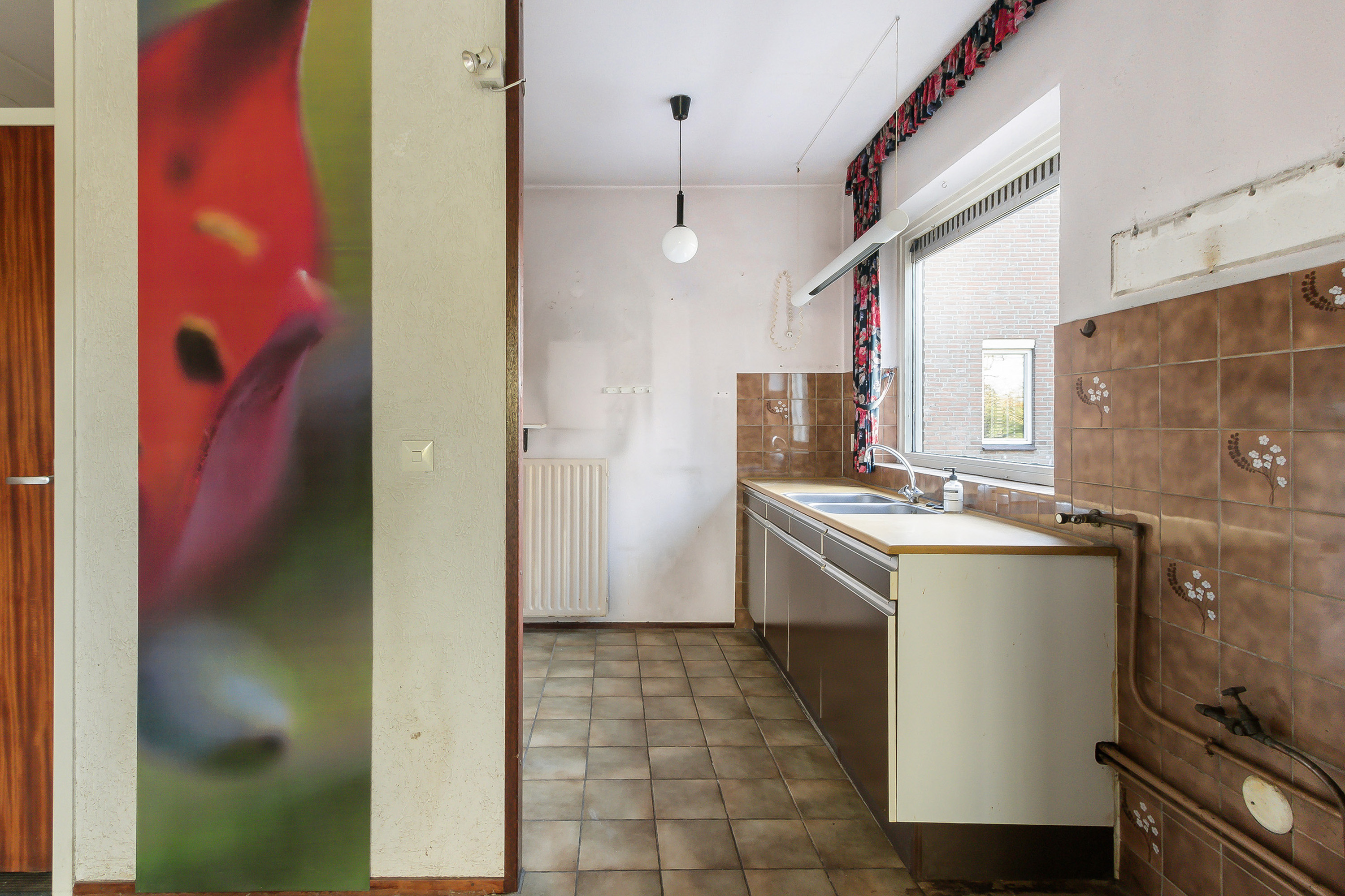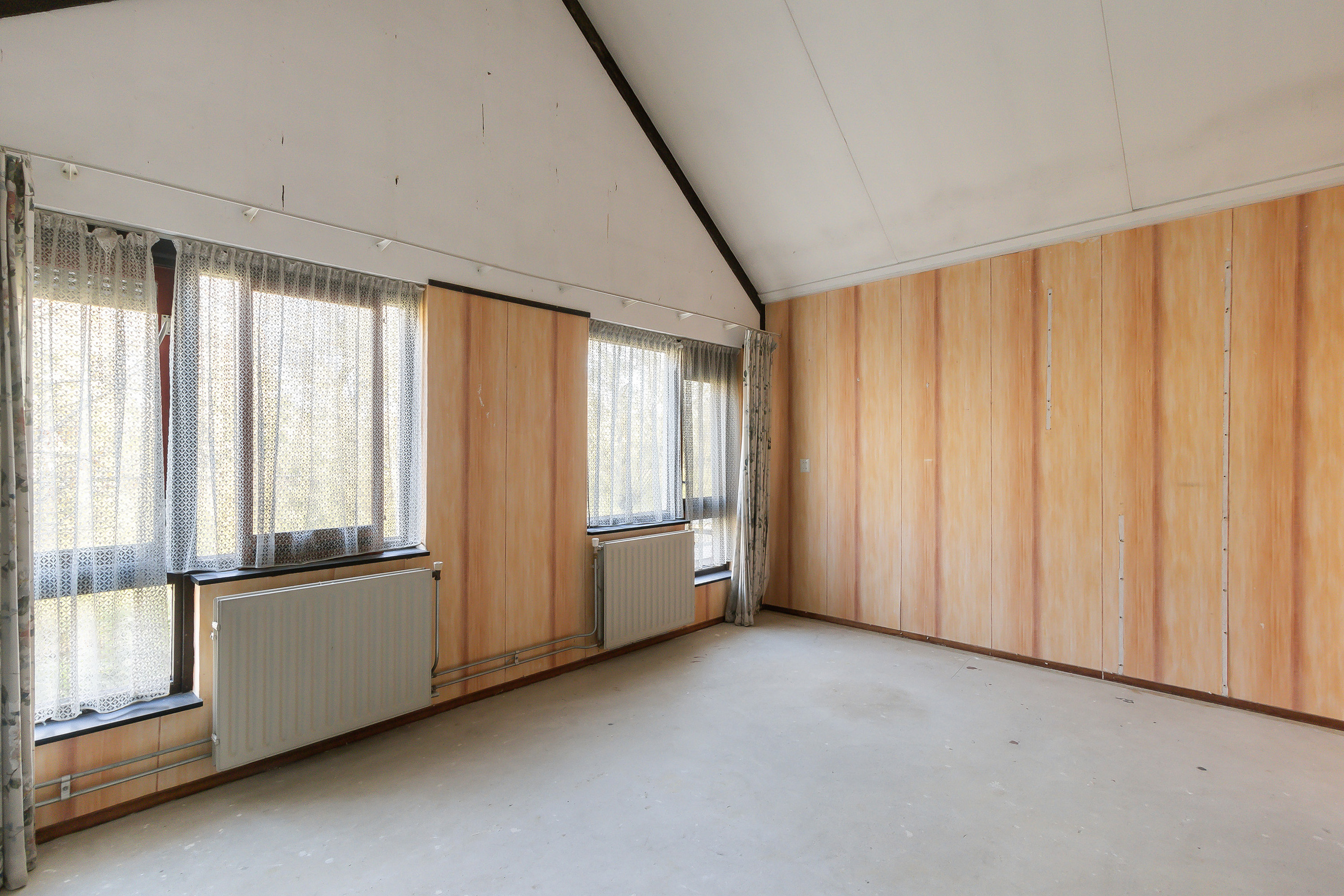 Op de begane grond vind je een lichte tuingerichte woonkamer met zij-uitbouw (hoge nok van ca. 3.90 m.) en een praktische trapkast, een open keuken met eenvoudige inrichting en een eenvoudig toilet. De zij-uitbouw is ideaal als extra leef- of werkruimte. De verdieping biedt drie slaapkamers, waarvan de hoofdslaapkamer (van maar liefst ca. 22 m²) een nokhoogte heeft van ca. 3.90 m., en een eenvoudige badkamer.