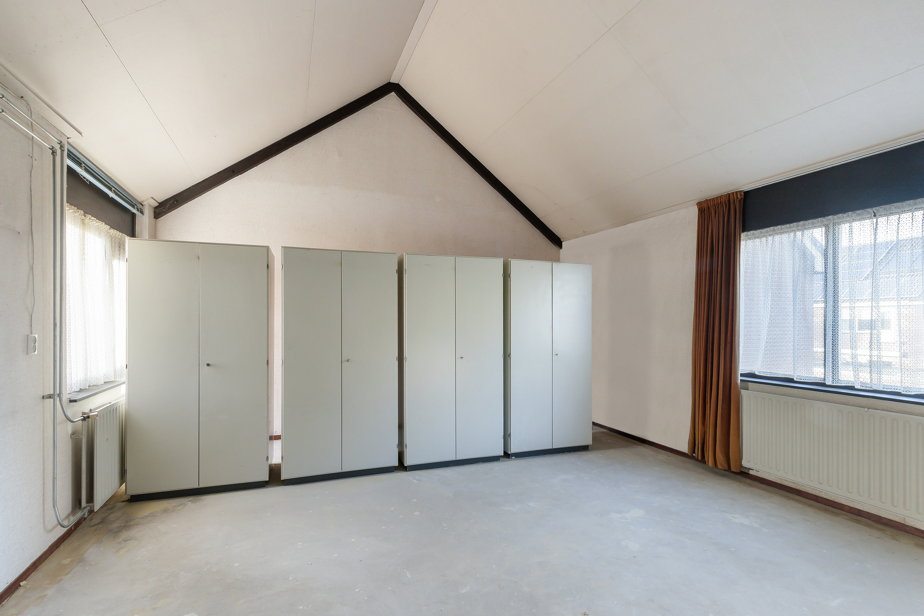 - Slaapkamer 3, aan de voorzijde en deels ‘zwevend’ boven de onderdoorgang ruim bemeten met circa 22 m²;