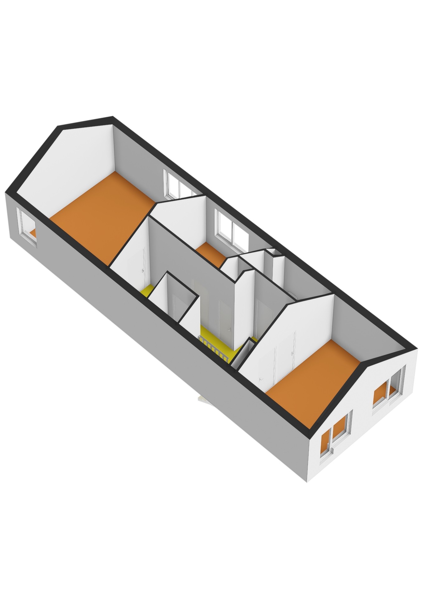 - Verdieping: grotendeels behang wandafwerking. Betonnen vloer.