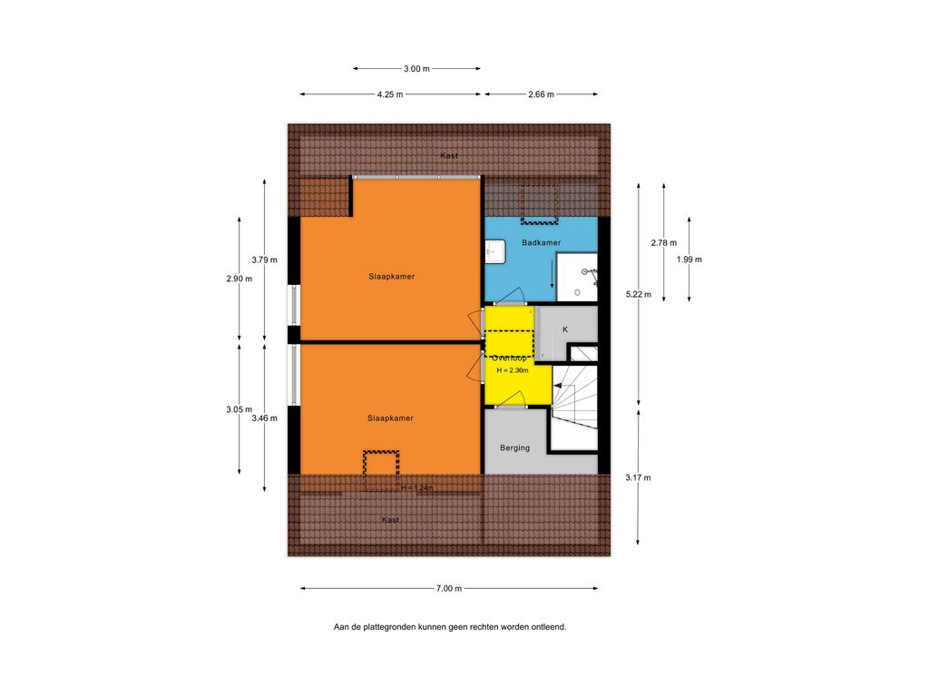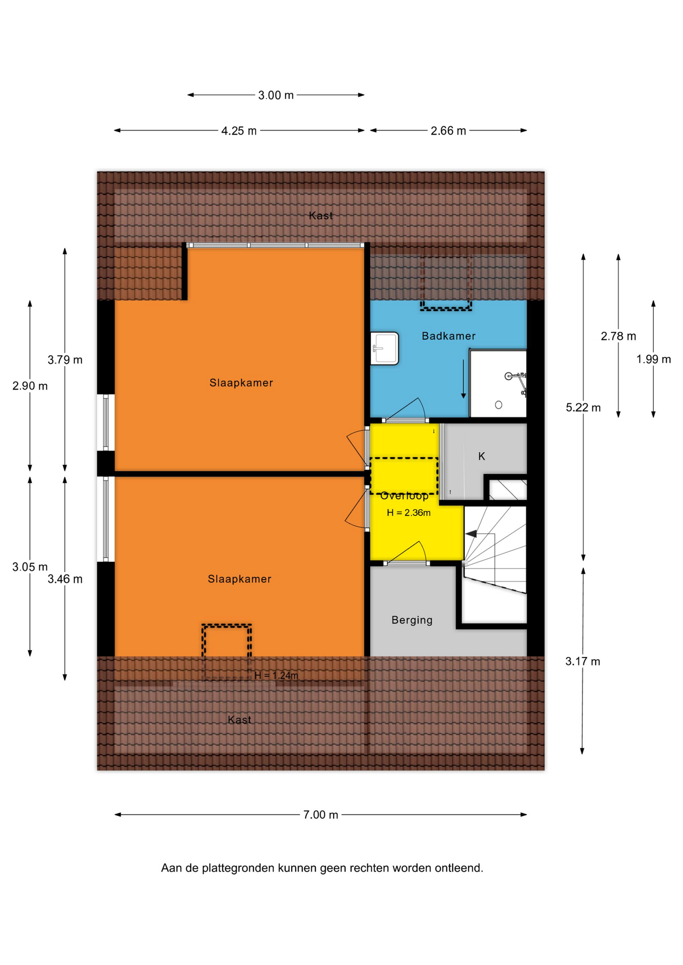 - Bergzolder met betonnen vloer en een nokhoogte van ca. 1.61 meter.