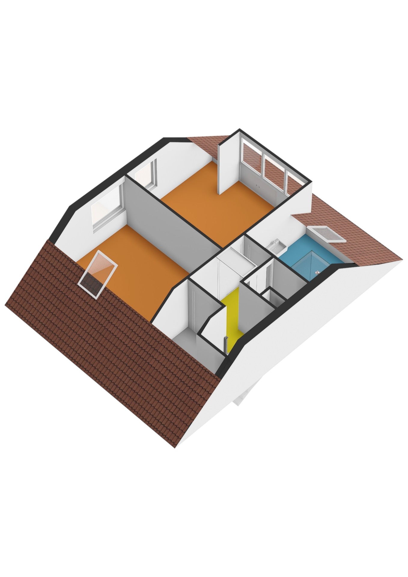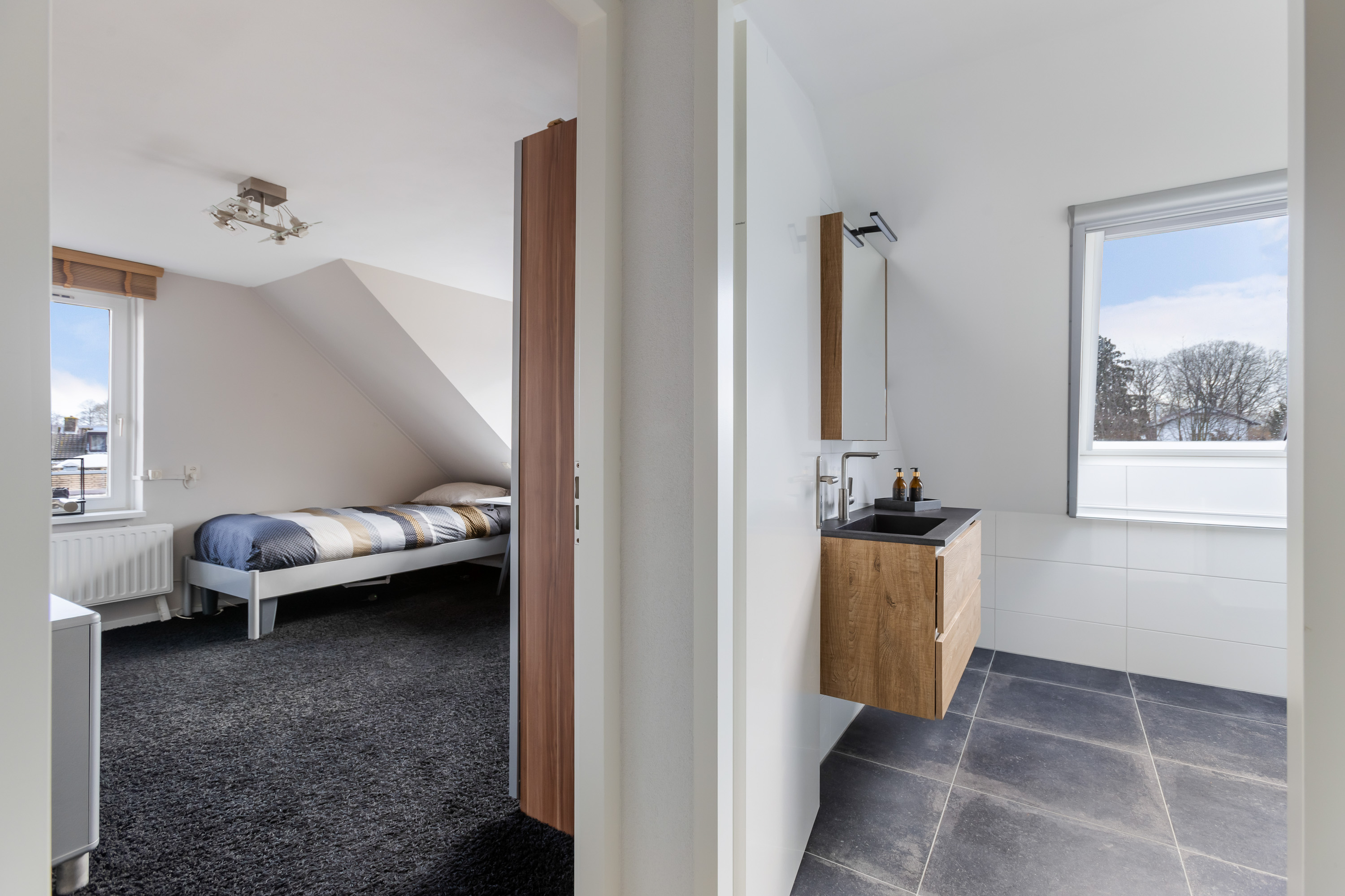 - Slaapkamer 5, gelegen aan de voorzijde met dakvenster, voorzien van rolluiken, een dakraam en diverse raampartijen (afmetingen nader te bepalen).