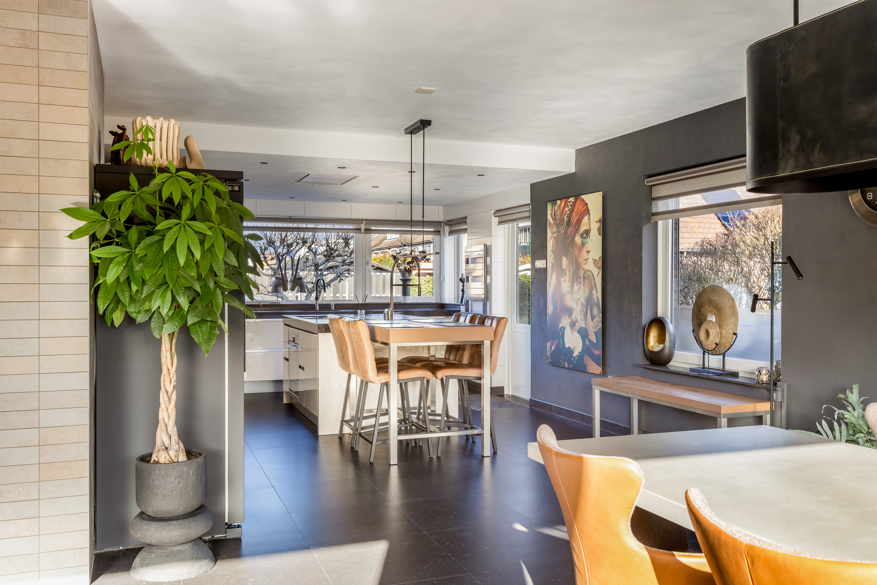 De magnifieke open woonkeuken is het kloppende hart van deze woning: stijlvol, modern en uitgerust met topapparatuur van Miele en Siemens. Of je nu een familiediner bereidt of gasten ontvangt, koken in deze ruimte is echt een feestje. Samen met de tuingerichte woonkamer is dit een heerlijke leefruimte om lekker te ontspannen.