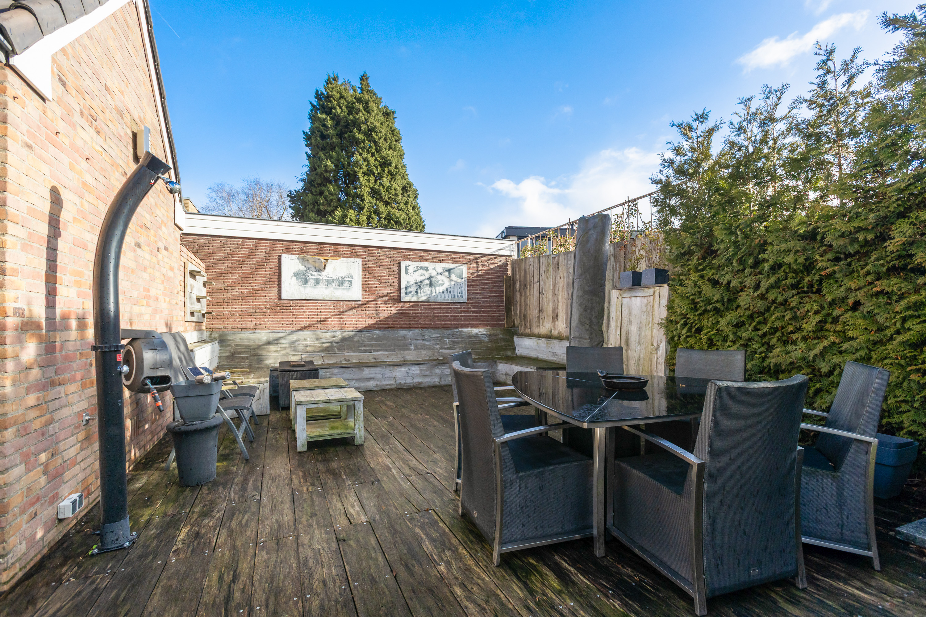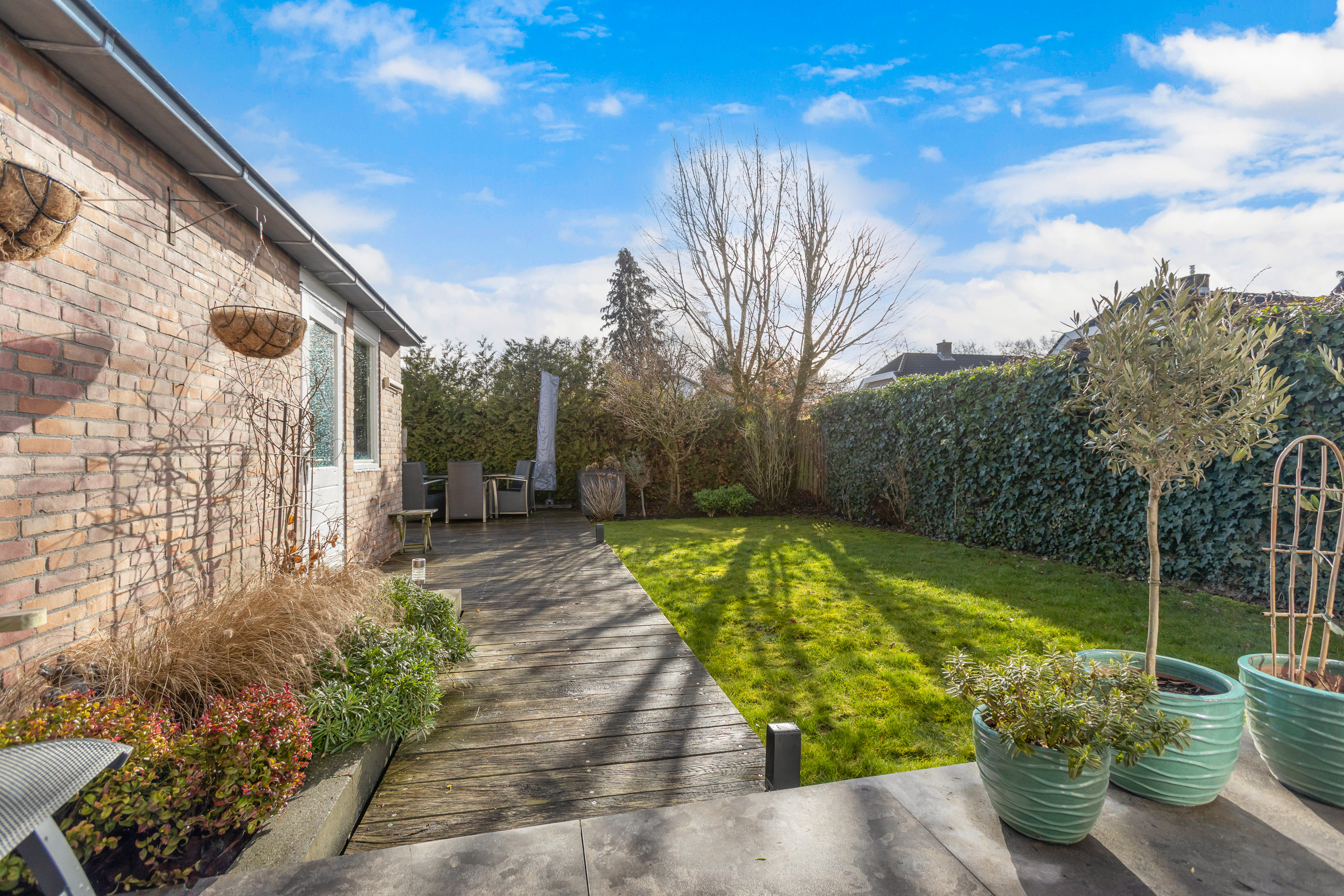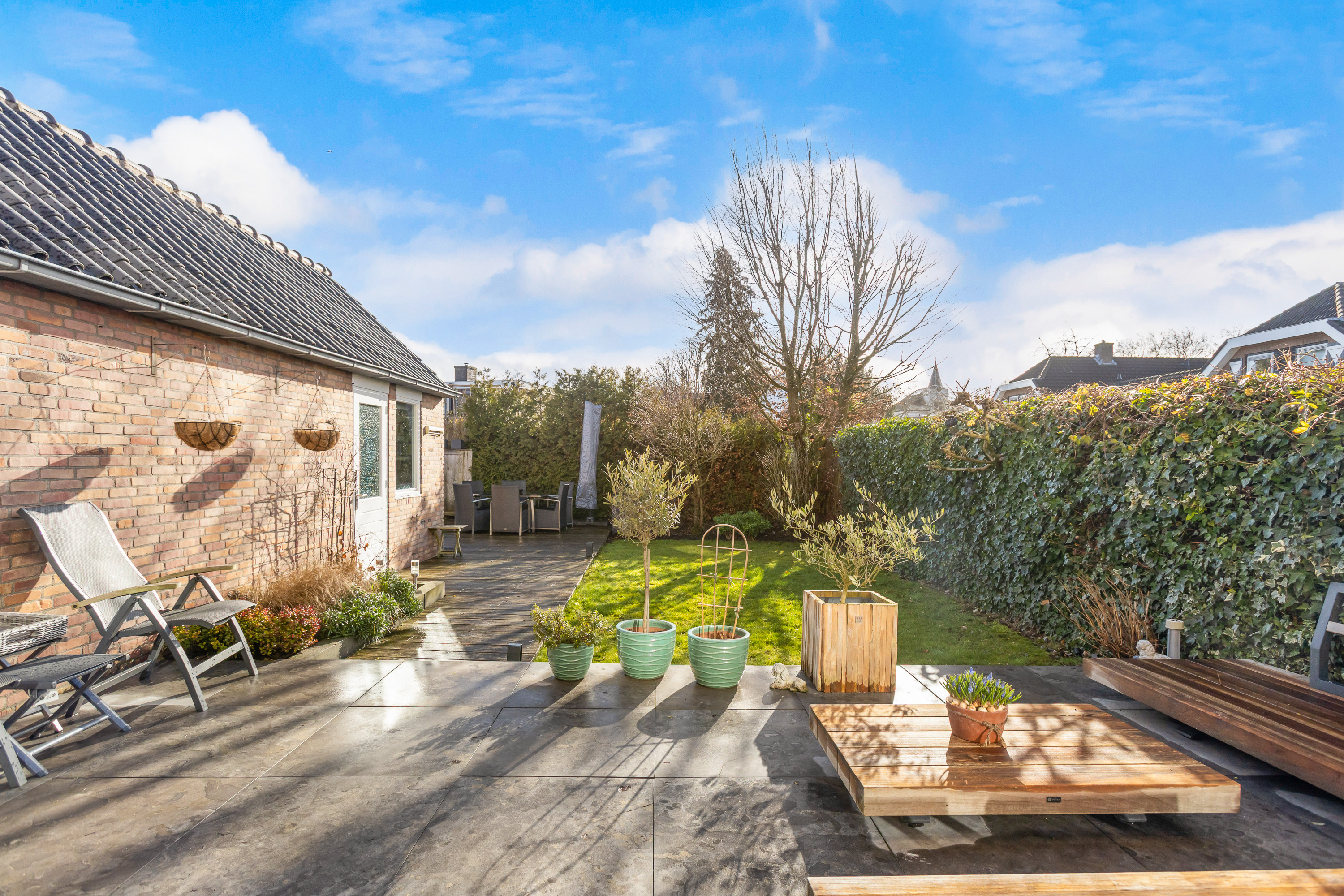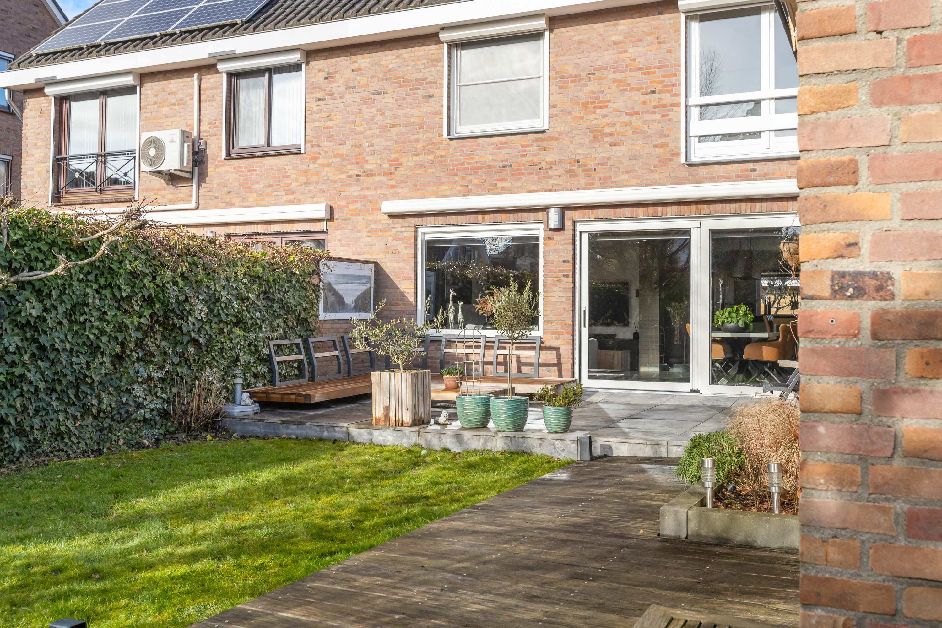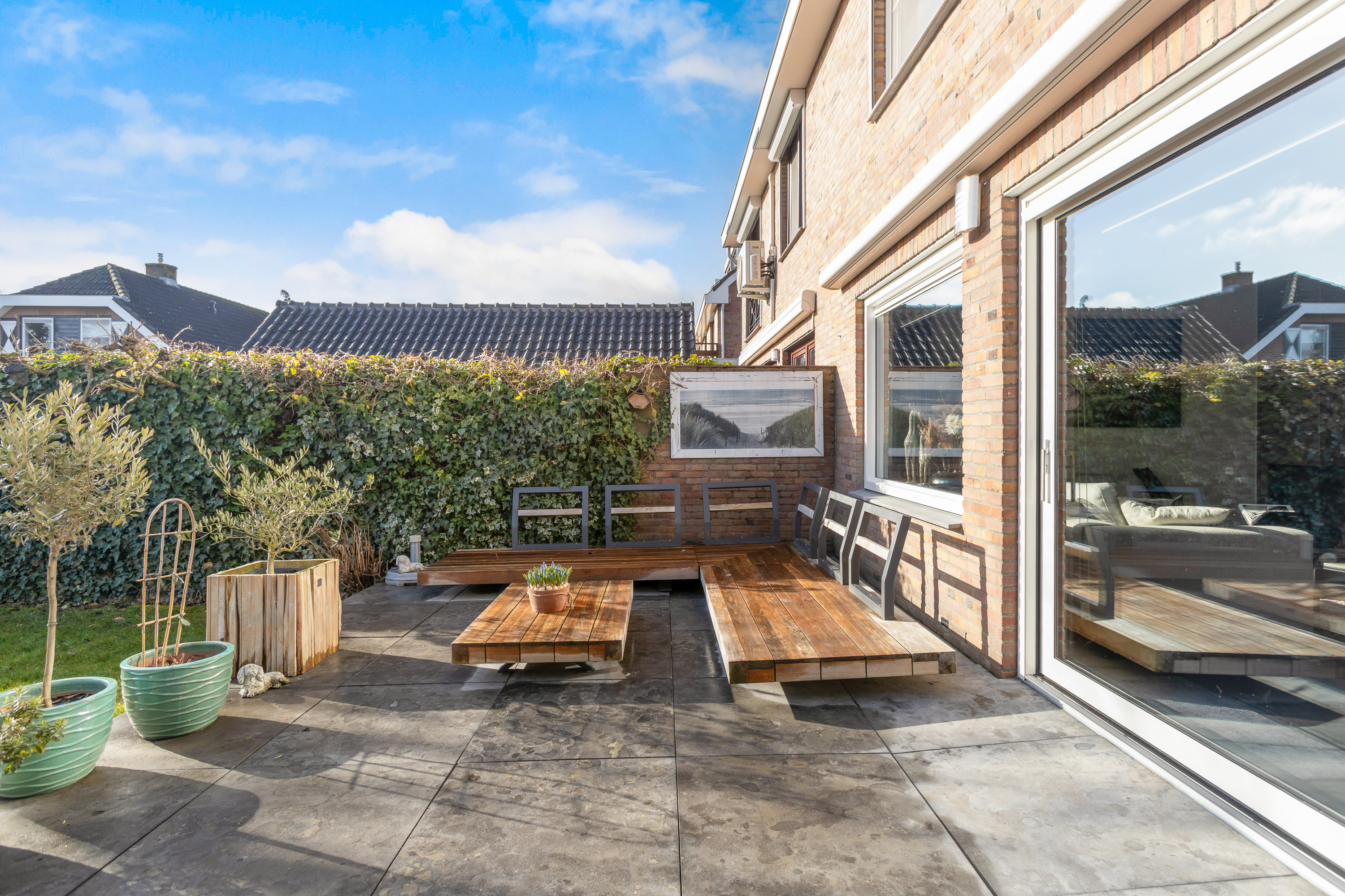 - Fraai aangelegde achtertuin in L-vorm met Chinees hardstenen terras, een houten vlonder, een gazon en een royale zithoek achter de garage - een heerlijke plek om te ontspannen of gezellig buiten te zitten met familie en vrienden;