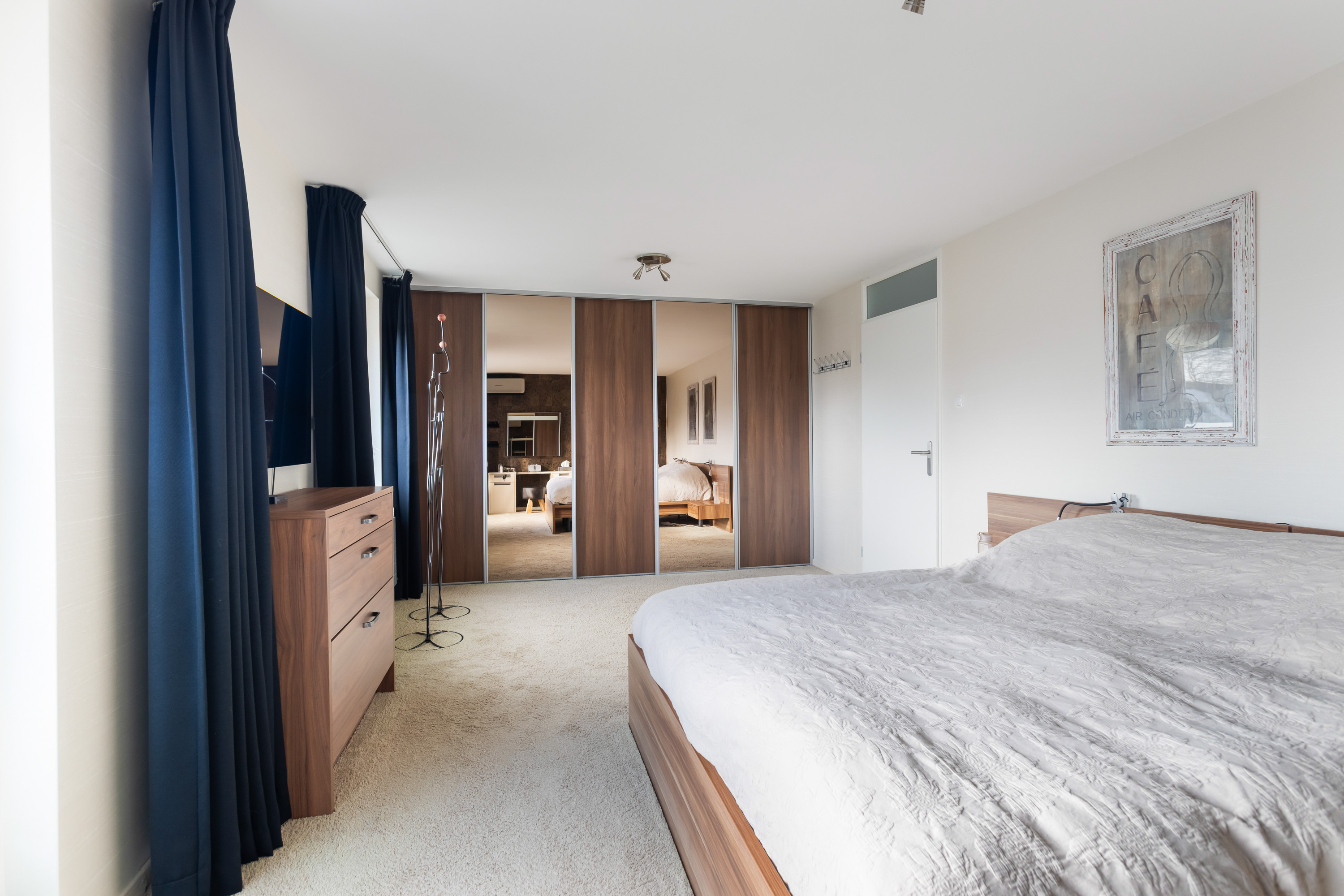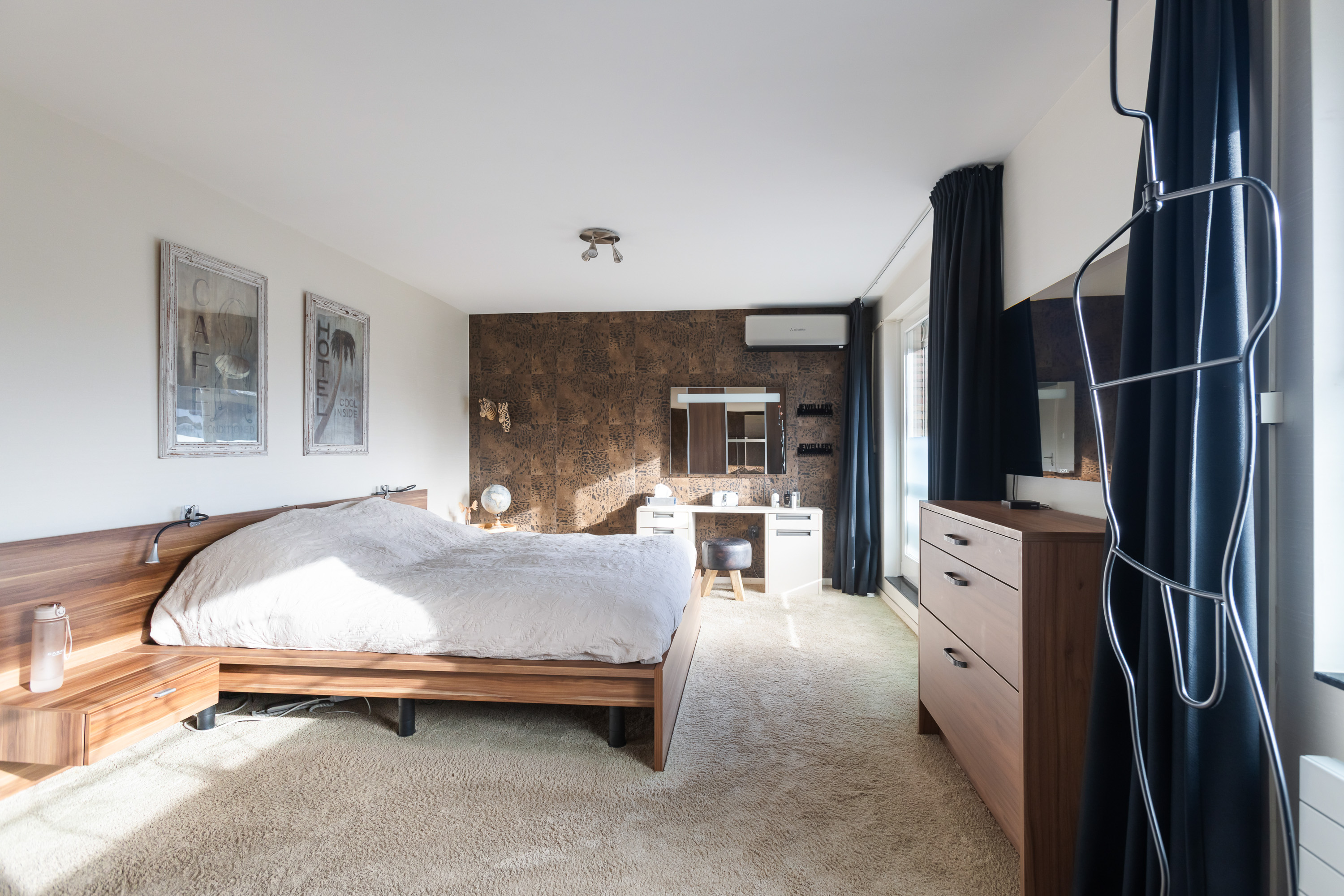 - Slaapkamer 1, gelegen aan de achterzijde, voorzien van airconditioning, rolluiken, vaste grote schuifdeurkast en hardstenen vensterbanken (hoofdslaapkamer, ca. 7.00 m. x 3.50 m);