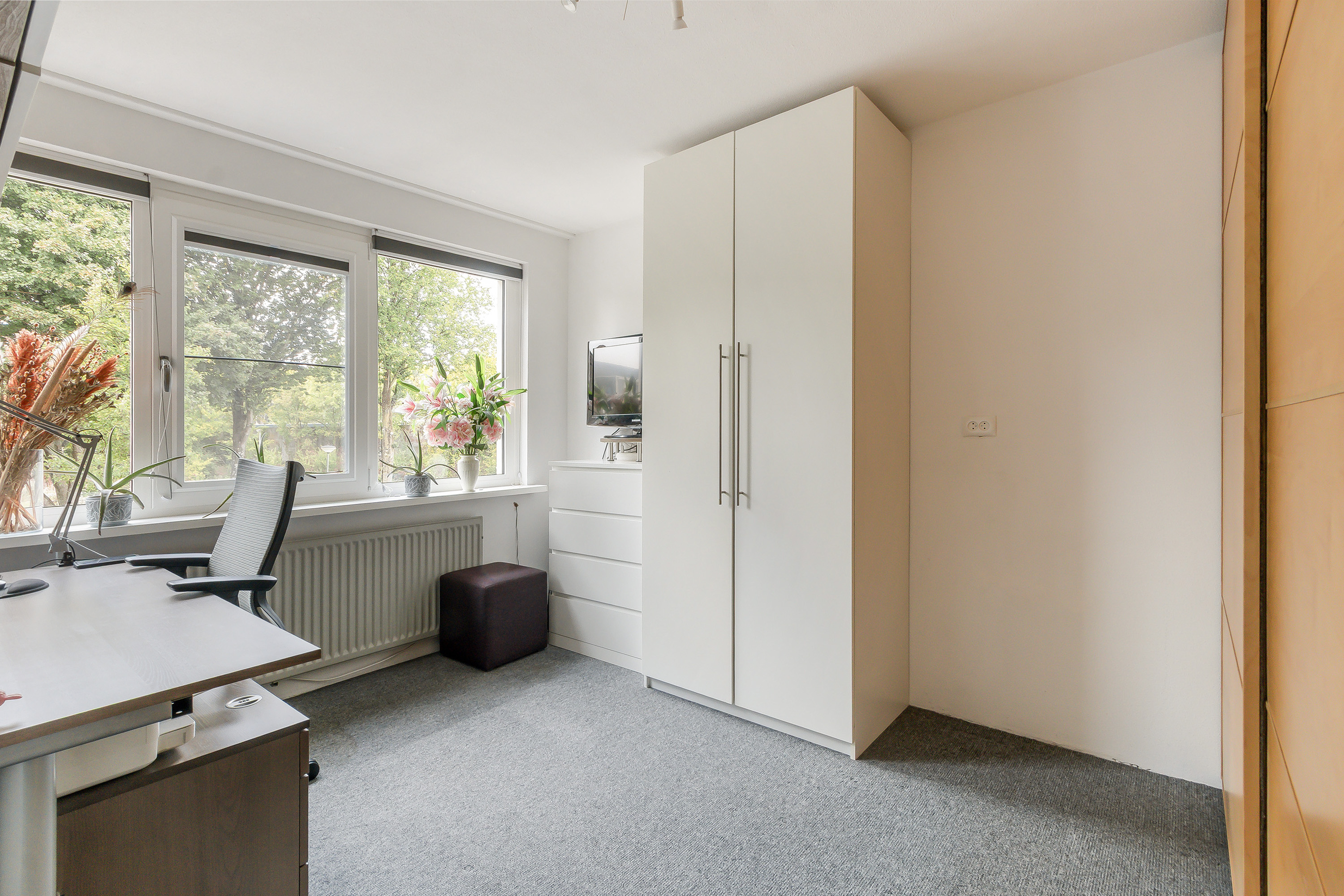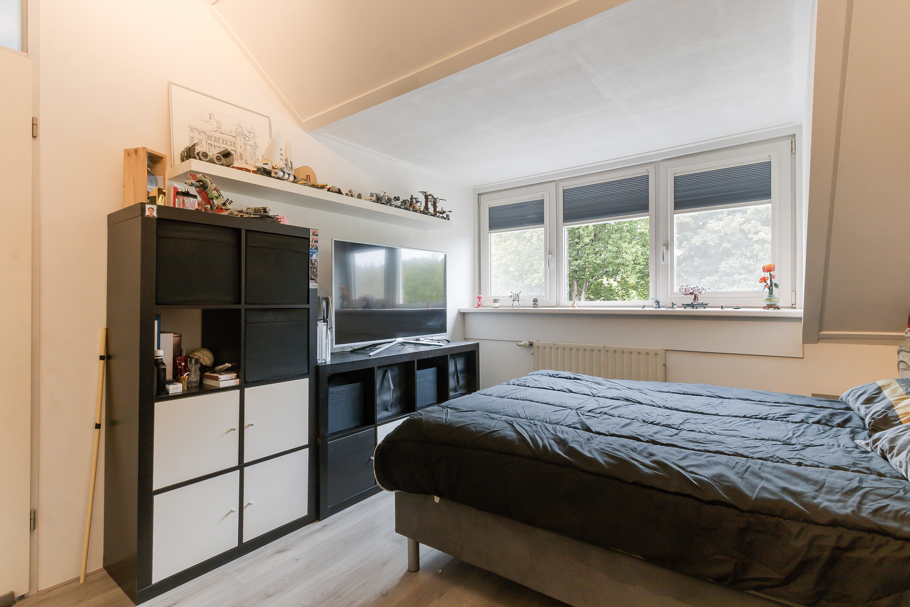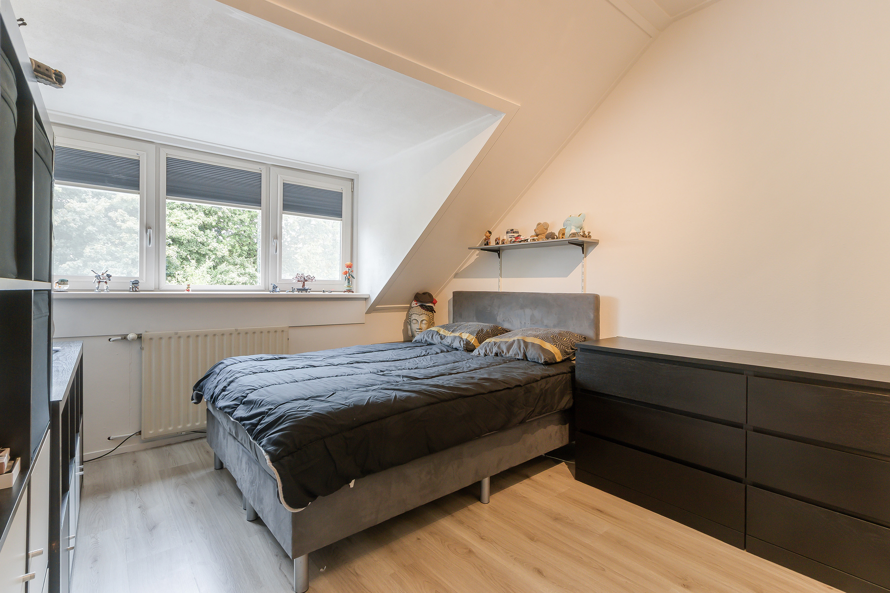 - Slaapkamer 4, gelegen aan de achterzijde, voorzien van een dakkapel en airconditioning.