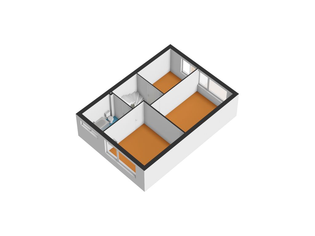 Tweede verdieping: overloop met bergruimte en een cv-ruimte en een 4e slaapkamer met dakkapel en bergruimte.