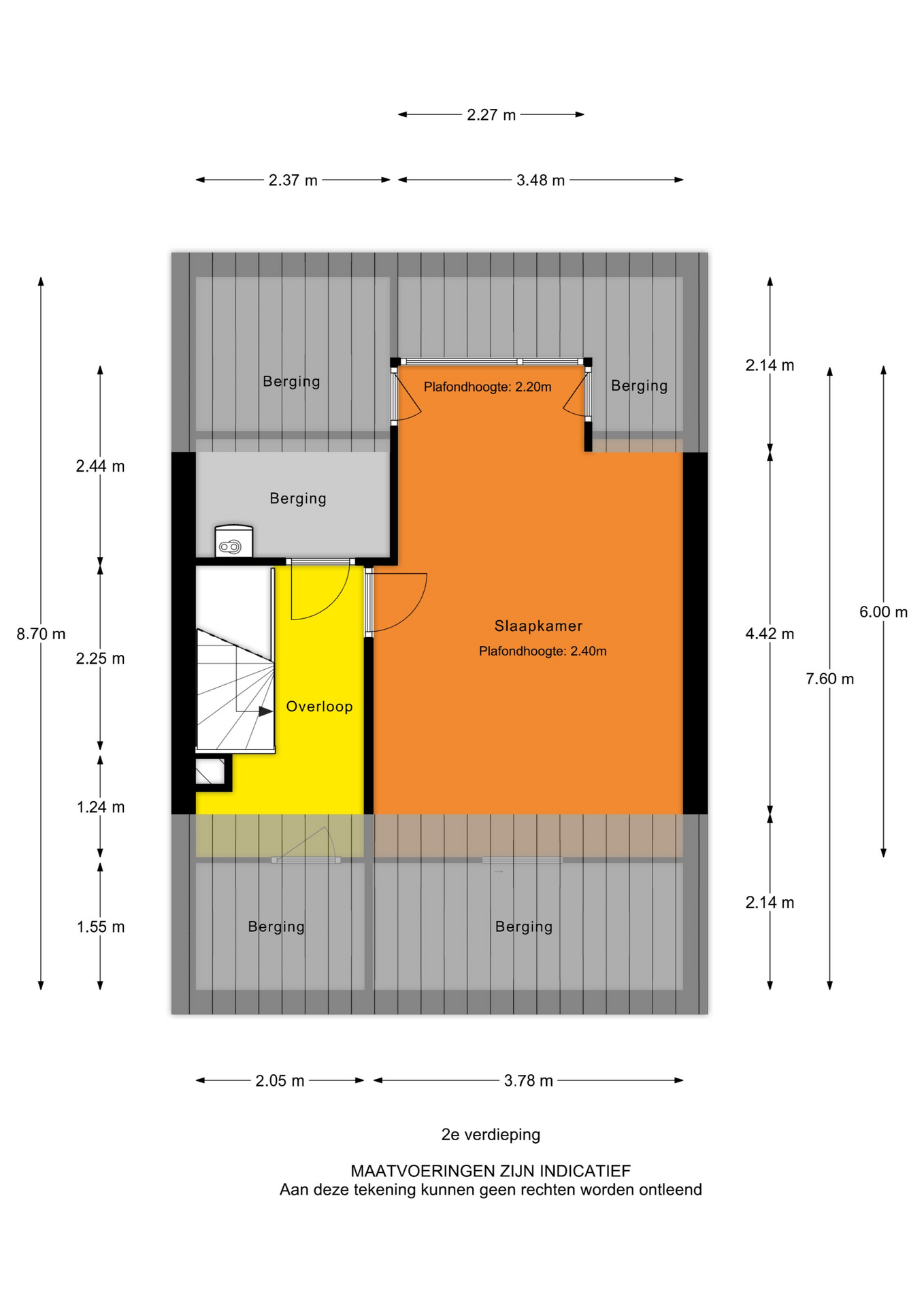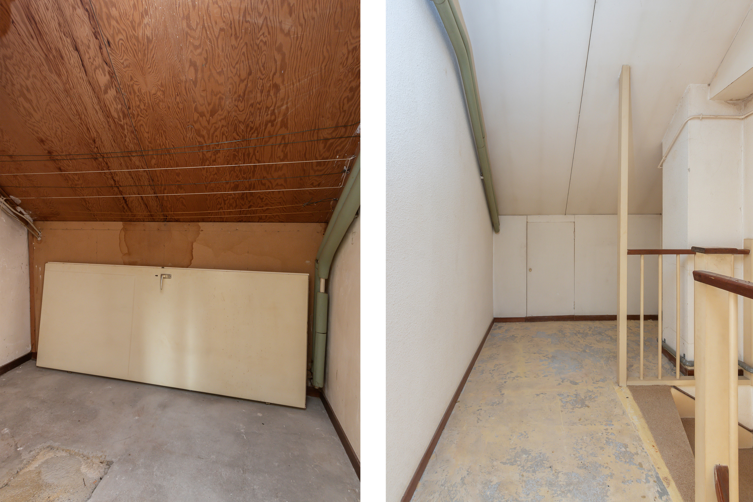 Tweede verdieping: overloop met bergruimte en een cv-ruimte en een 4e slaapkamer met dakkapel en bergruimte.
