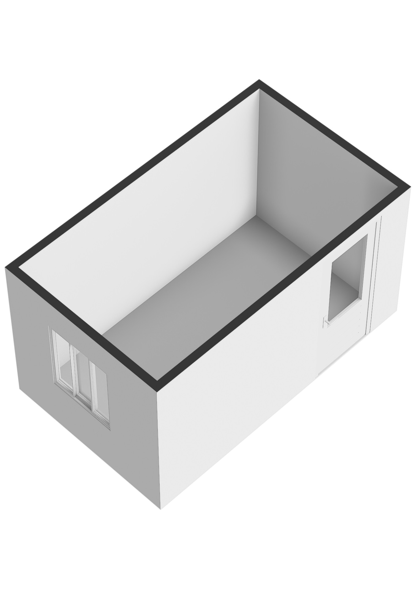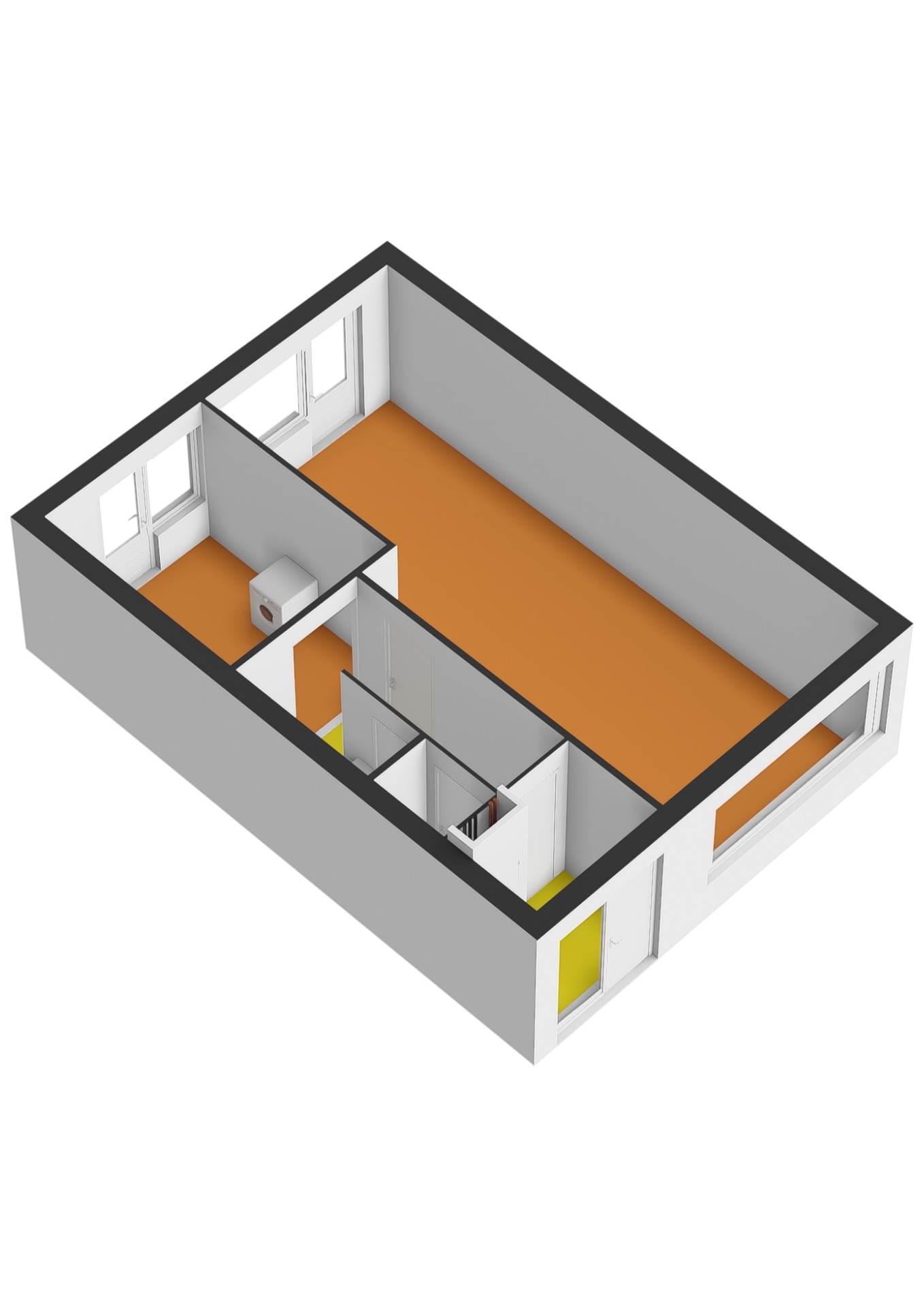 - Tweede verdieping: behang wandafwerking. Kale betonvloer.