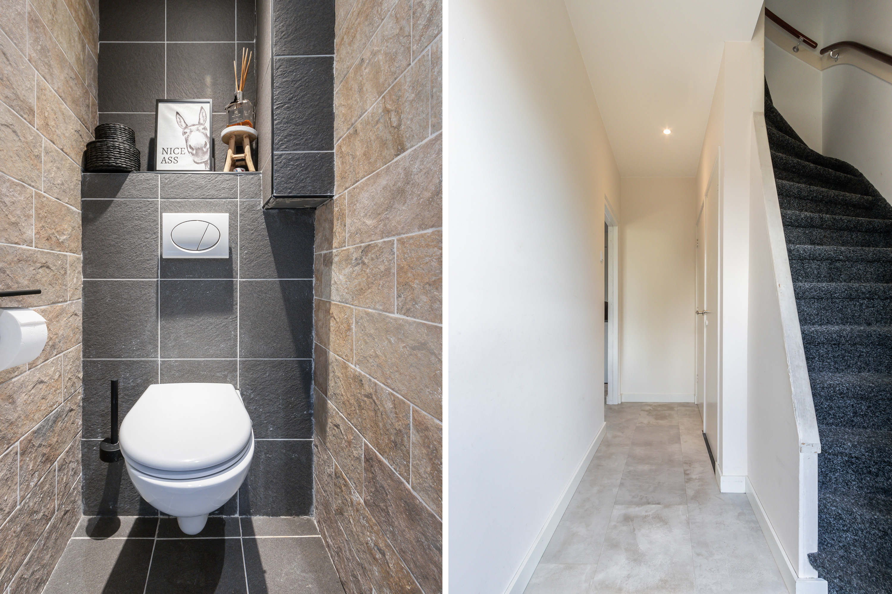 - Tweede verdieping: glasvliesbehang. Laminaat vloerafwerking.