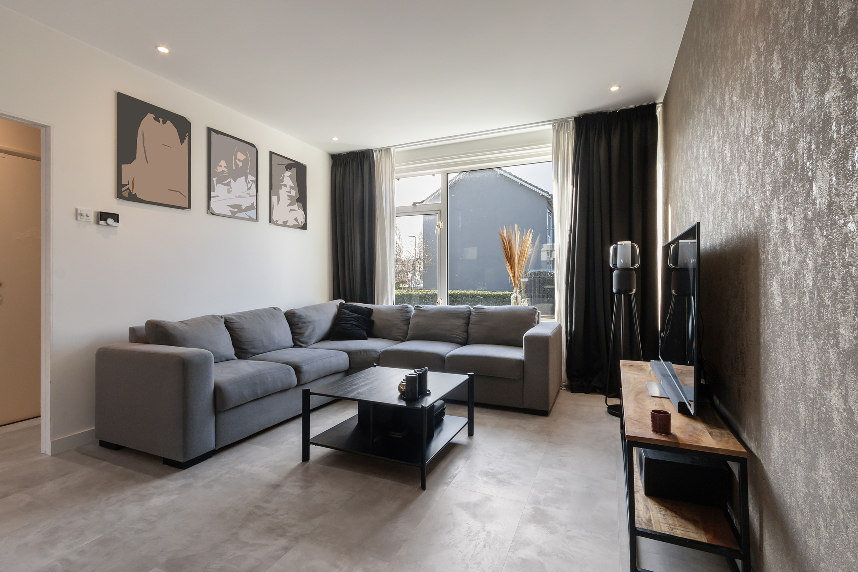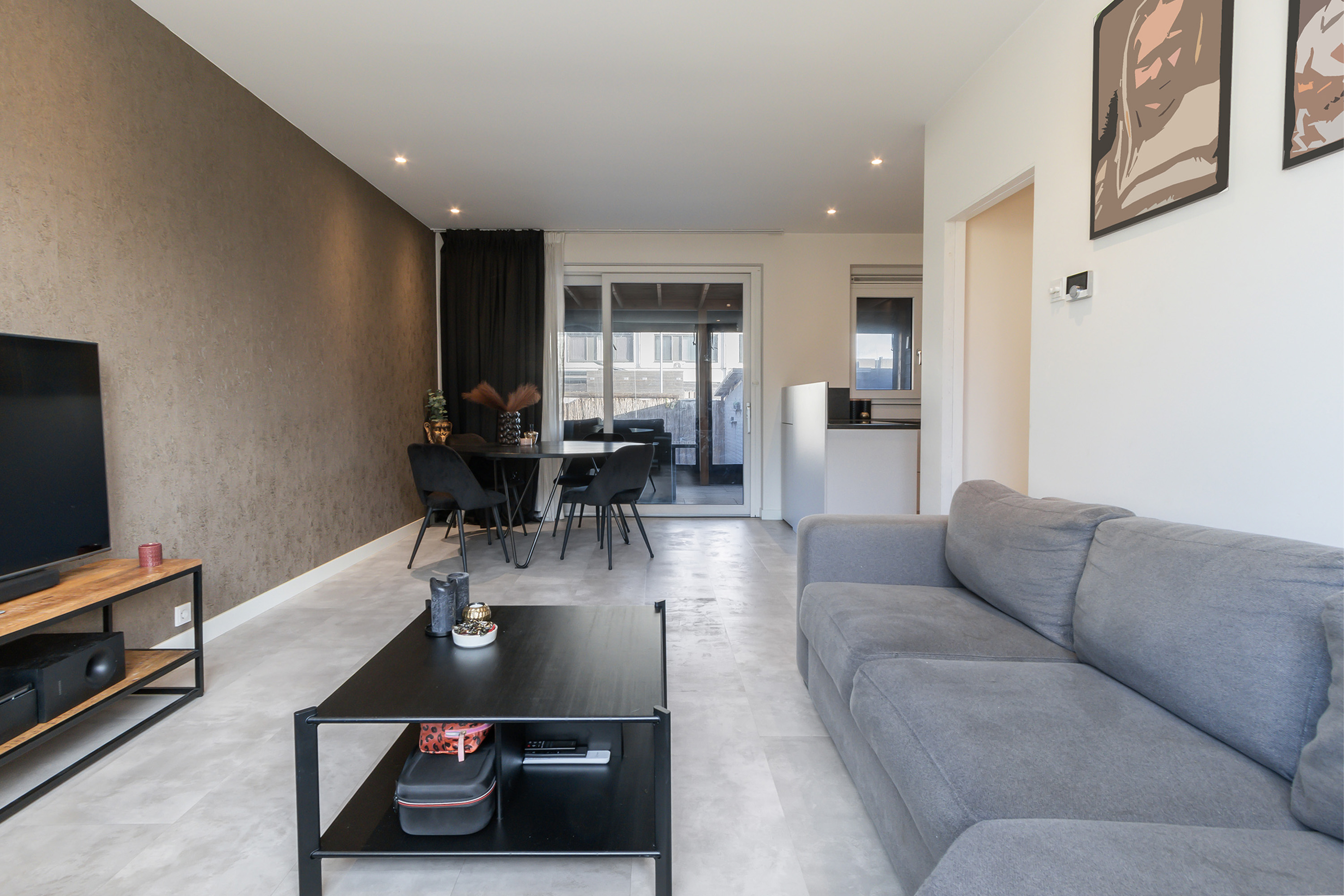 - Lichte doorzonwoonkamer met kunststof schuifpui naar de achtertuin/ overkapping;