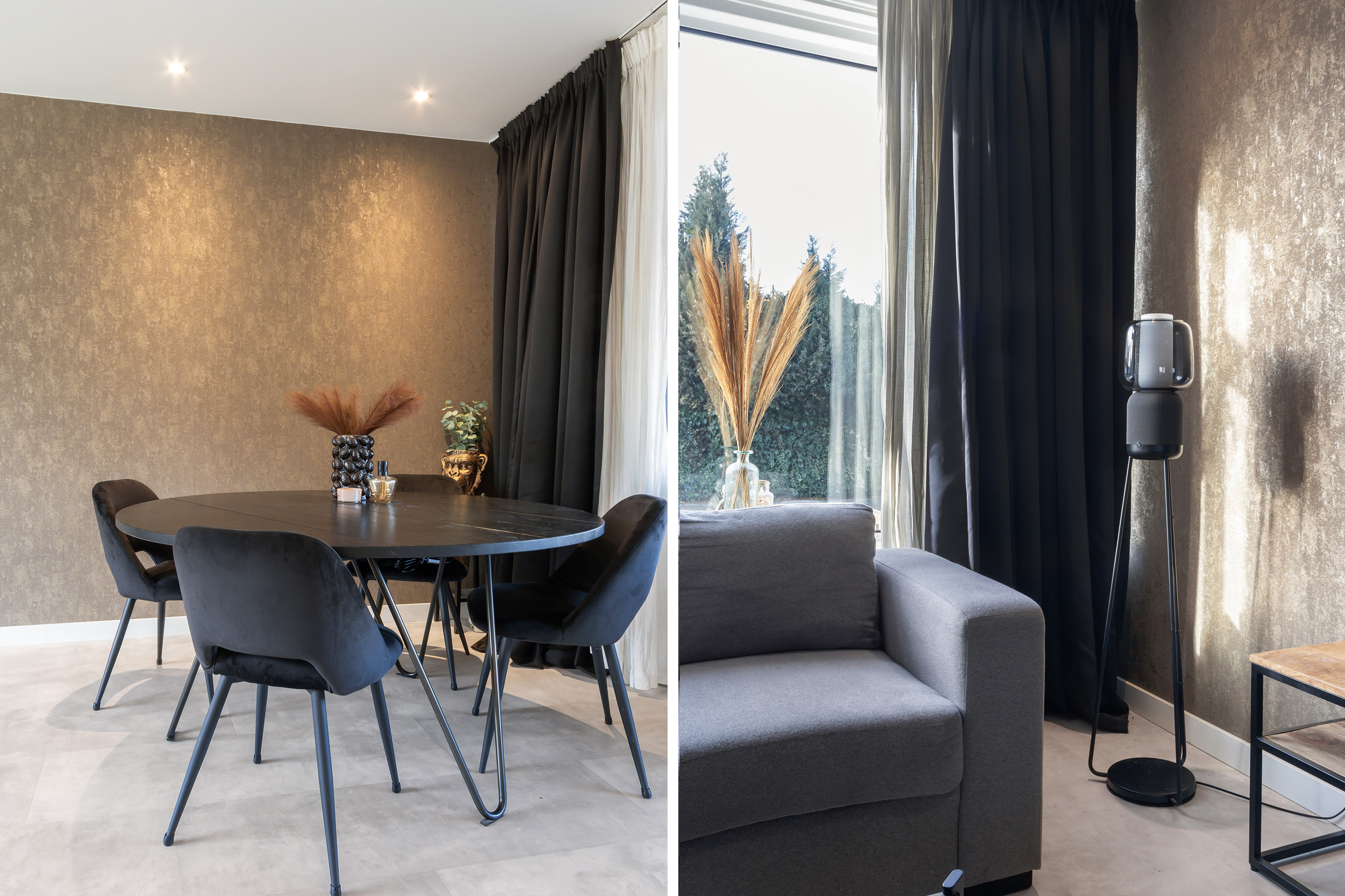- Eerste verdieping: grotendeels behang wandafwerking en deels gestucte en gesausde wanden. Laminaat vloerafwerking.