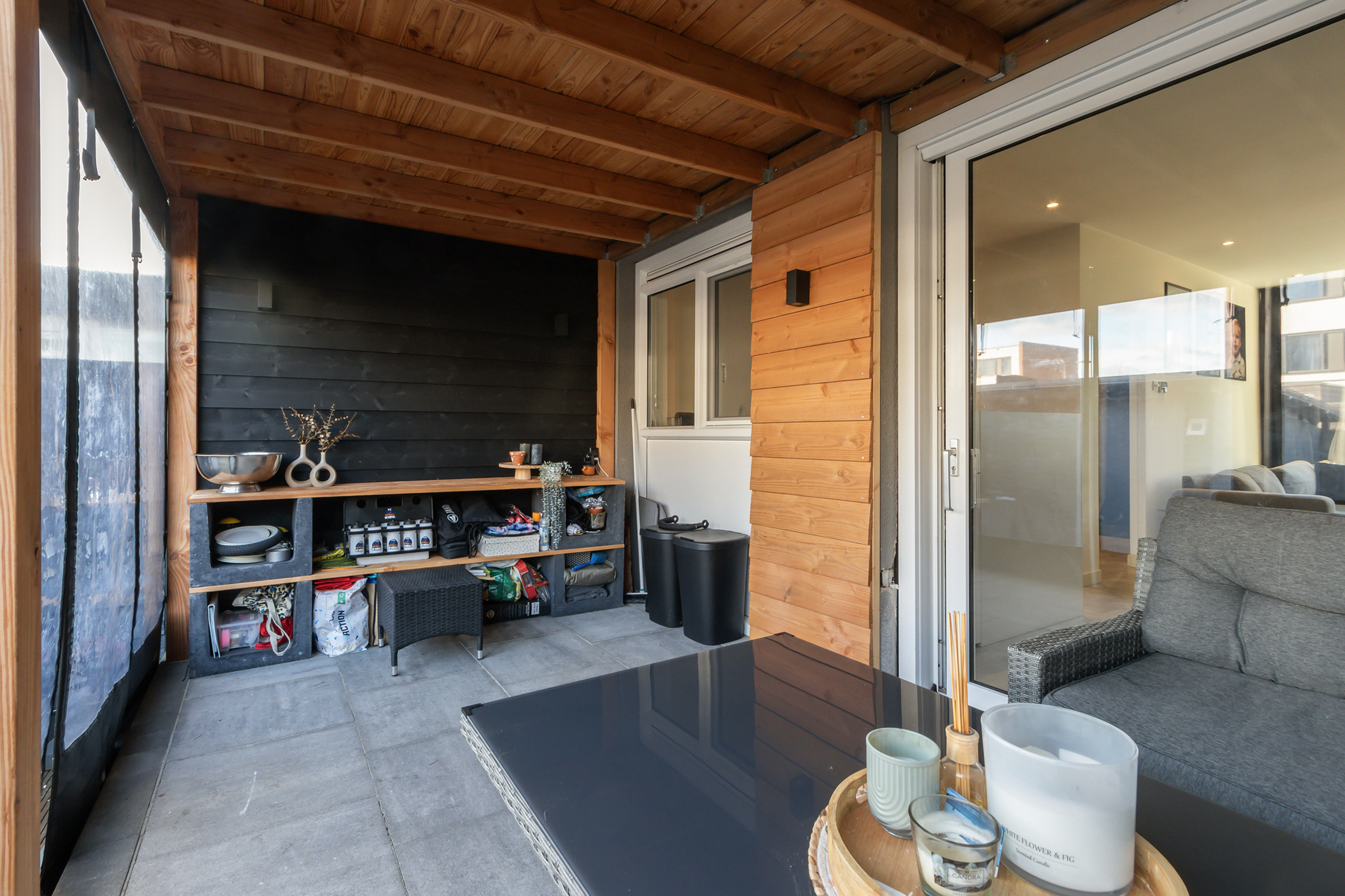 - Tuin van ca. 44 m² (incl. overkapping) gelegen op het oosten met royale lounge-overkapping (2023), direct grenzend aan de woning;