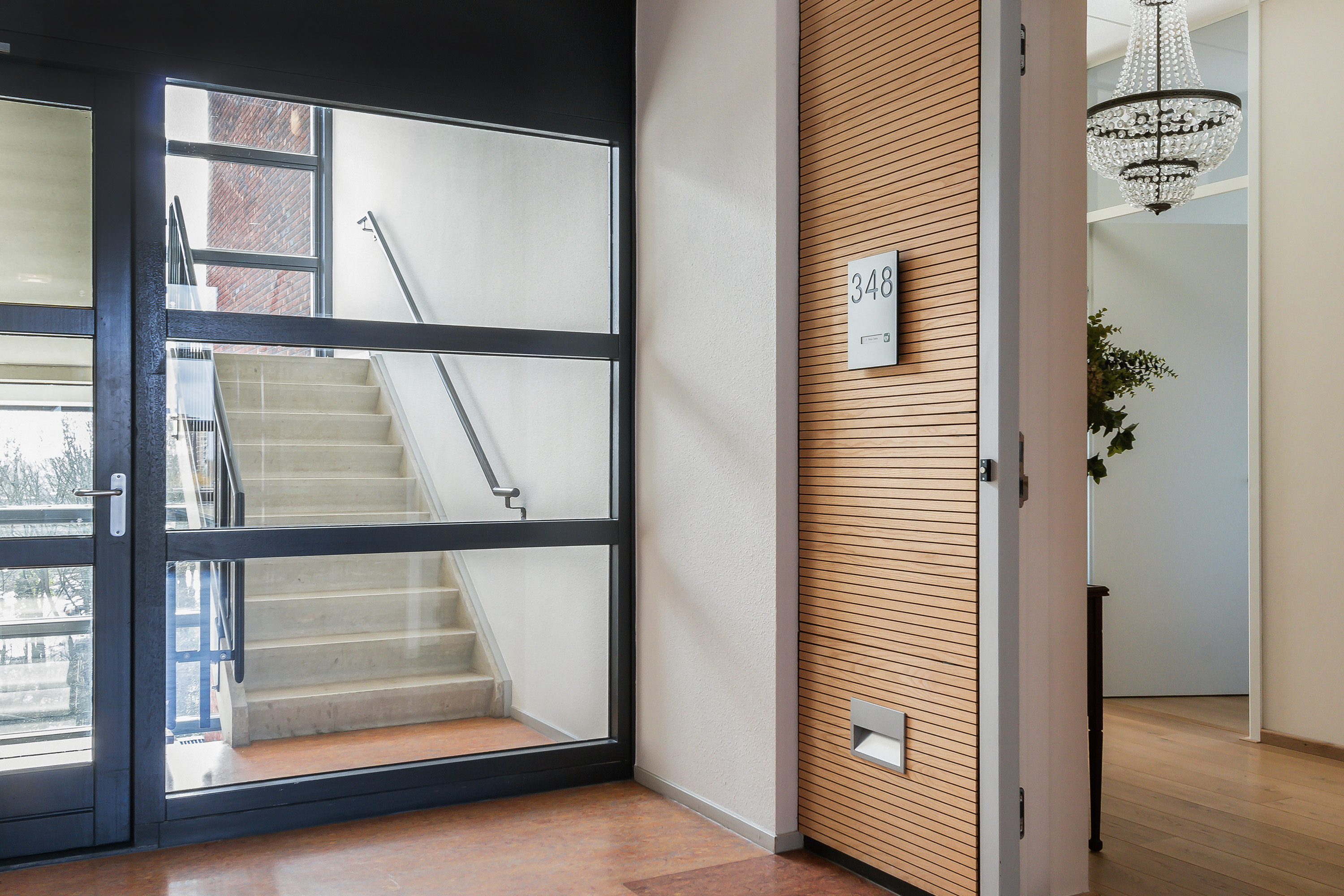 - Afgesloten entreehal met toegang tot de lift en het trappenhuis, de brievenbussen, het bellentableau, de gezamenlijke (fietsen)berging, een gemeenschappelijke ruimte en de fraai aangelegde gezamenlijke tuin.
