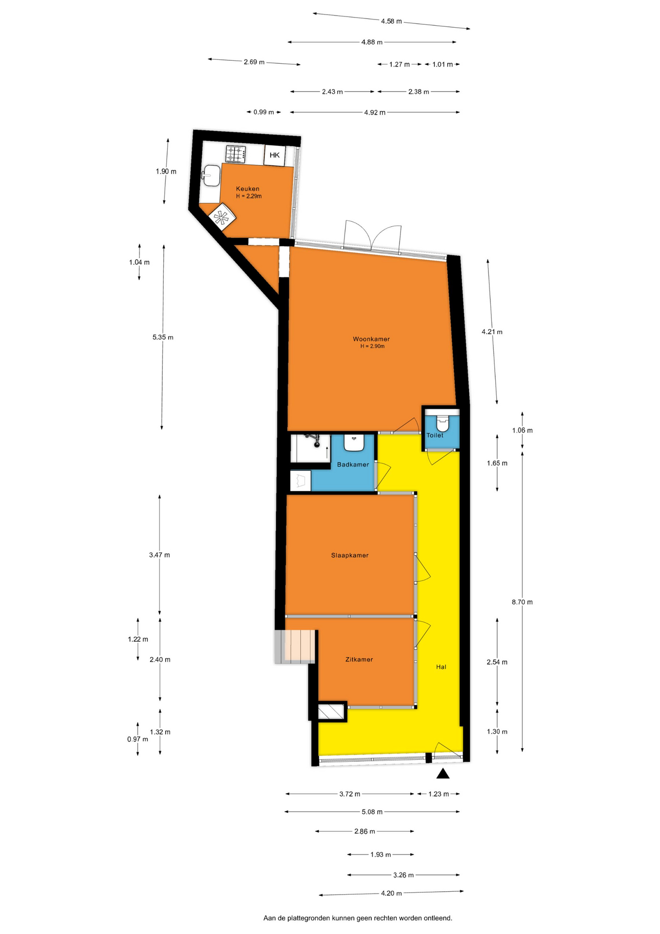 De vermelde afmetingen/ oppervlakten in deze informatie zijn gemeten op basis van de BBMI (Branche Brede Meetinstructie). De meetinstructie is bedoeld om een meer eenduidige manier van meten toe te passen voor het geven van een indicatie van de gebruiksoppervlakte. De meetinstructie sluit verschillen in meetuitkomsten niet volledig uit, door bijvoorbeeld interpretatieverschillen, afrondingen of beperkingen bij het uitvoer en van de meting.