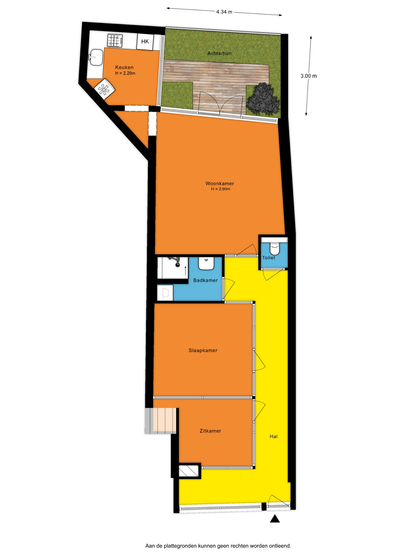 Let op! De foto’s in deze verkooppresentatie zijn genomen met een groothoeklens. Voor verkrijging van een reële indruk van de ruimten dient u de foto’s te spiegelen met de plattegronden!