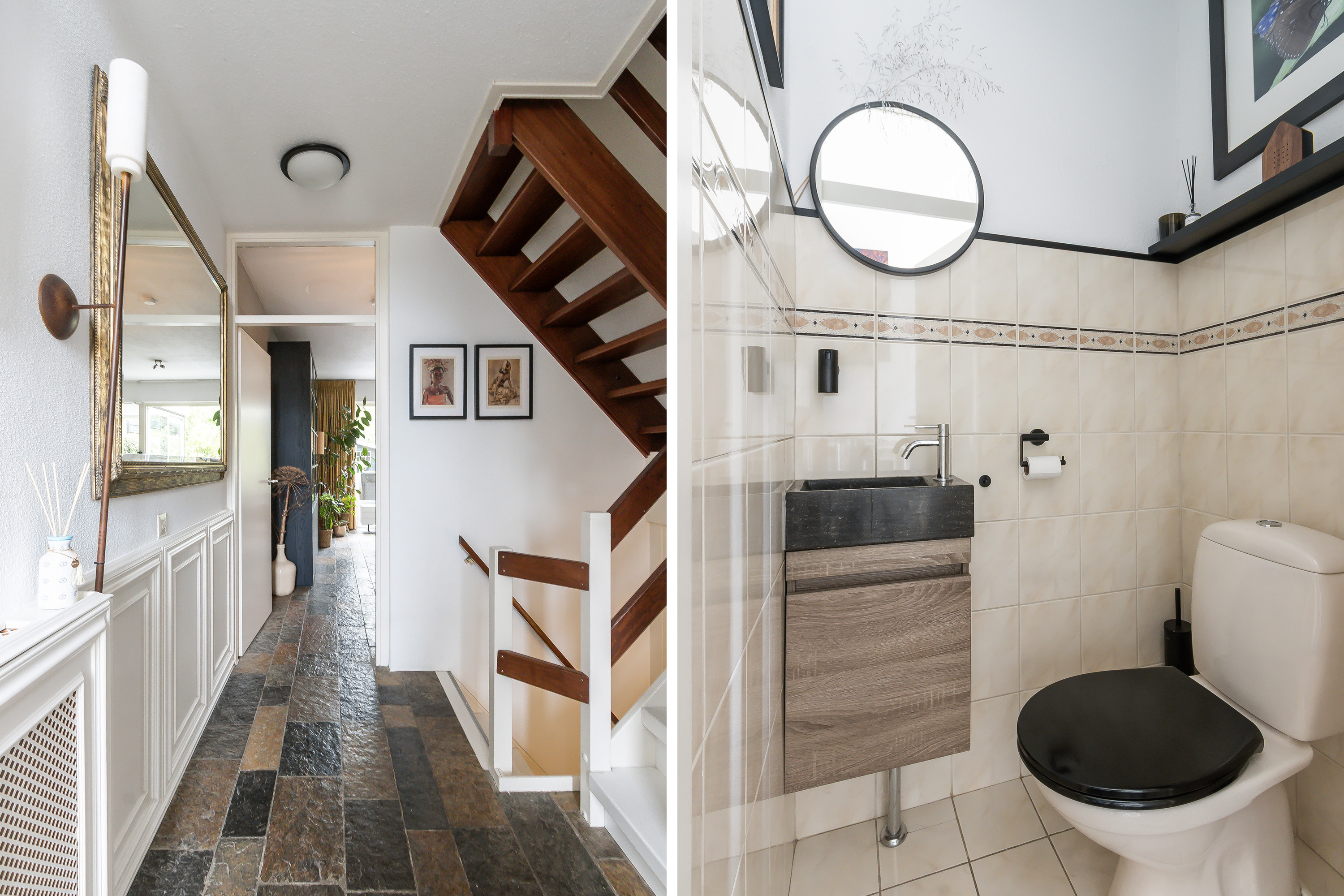 - Entree, hal, meterkast, toilet en trap naar niveau -1 en +1;