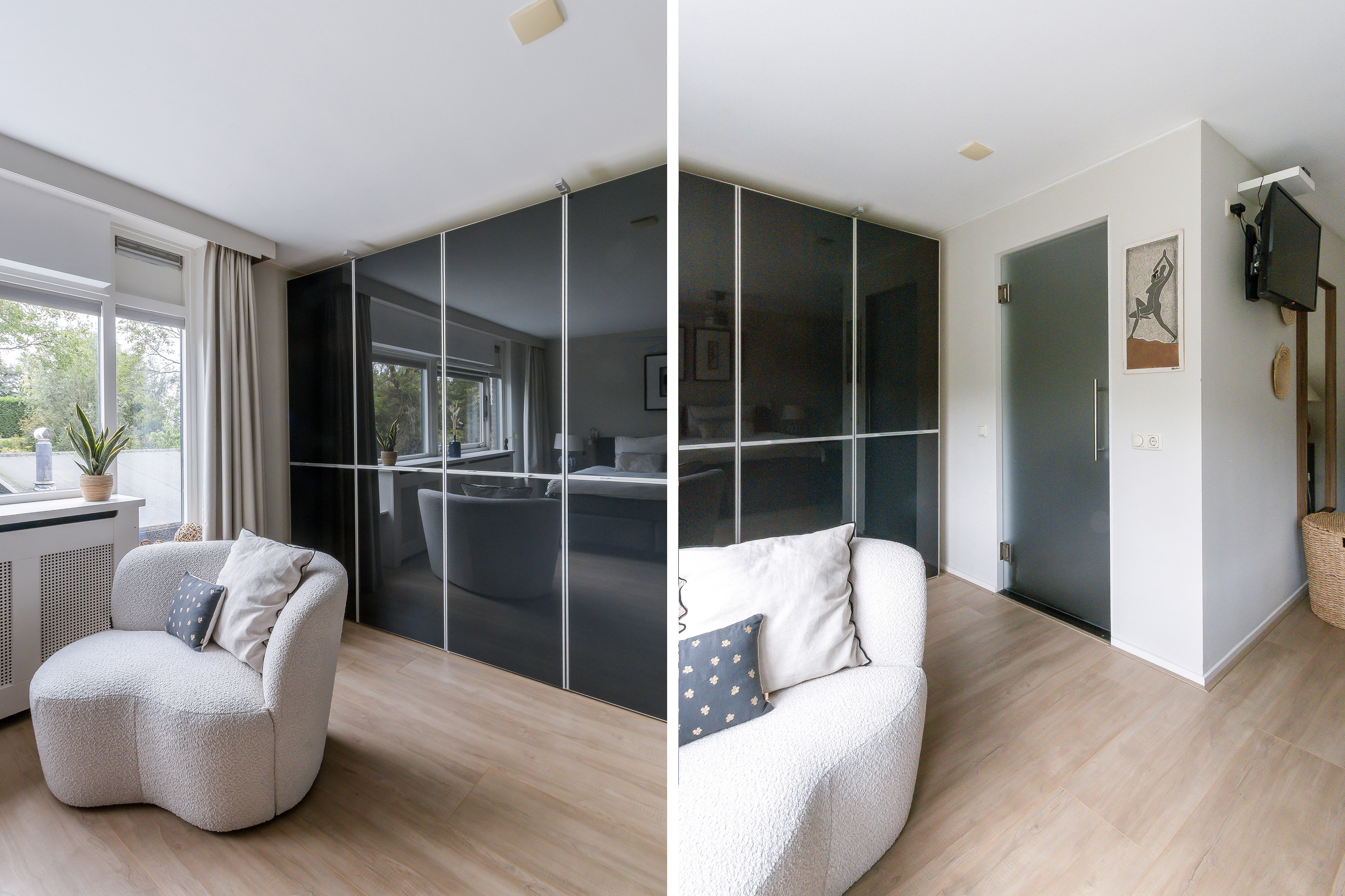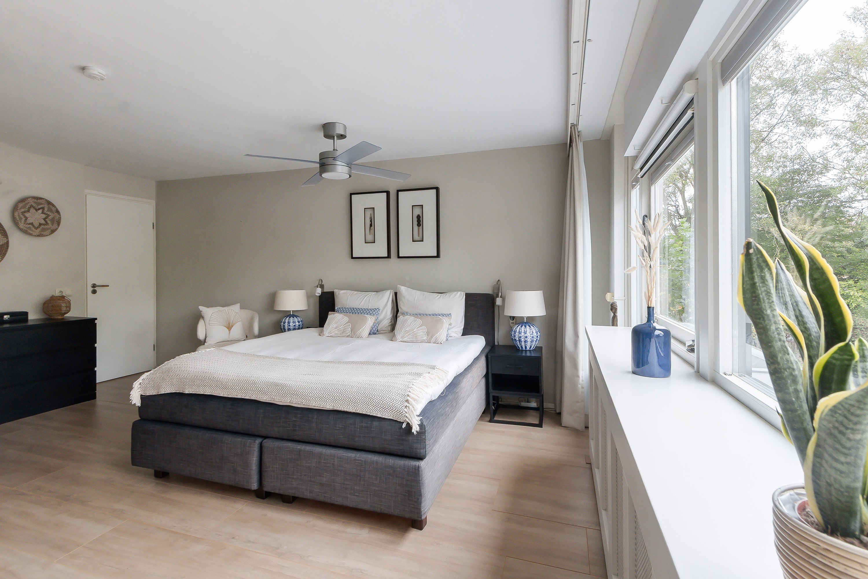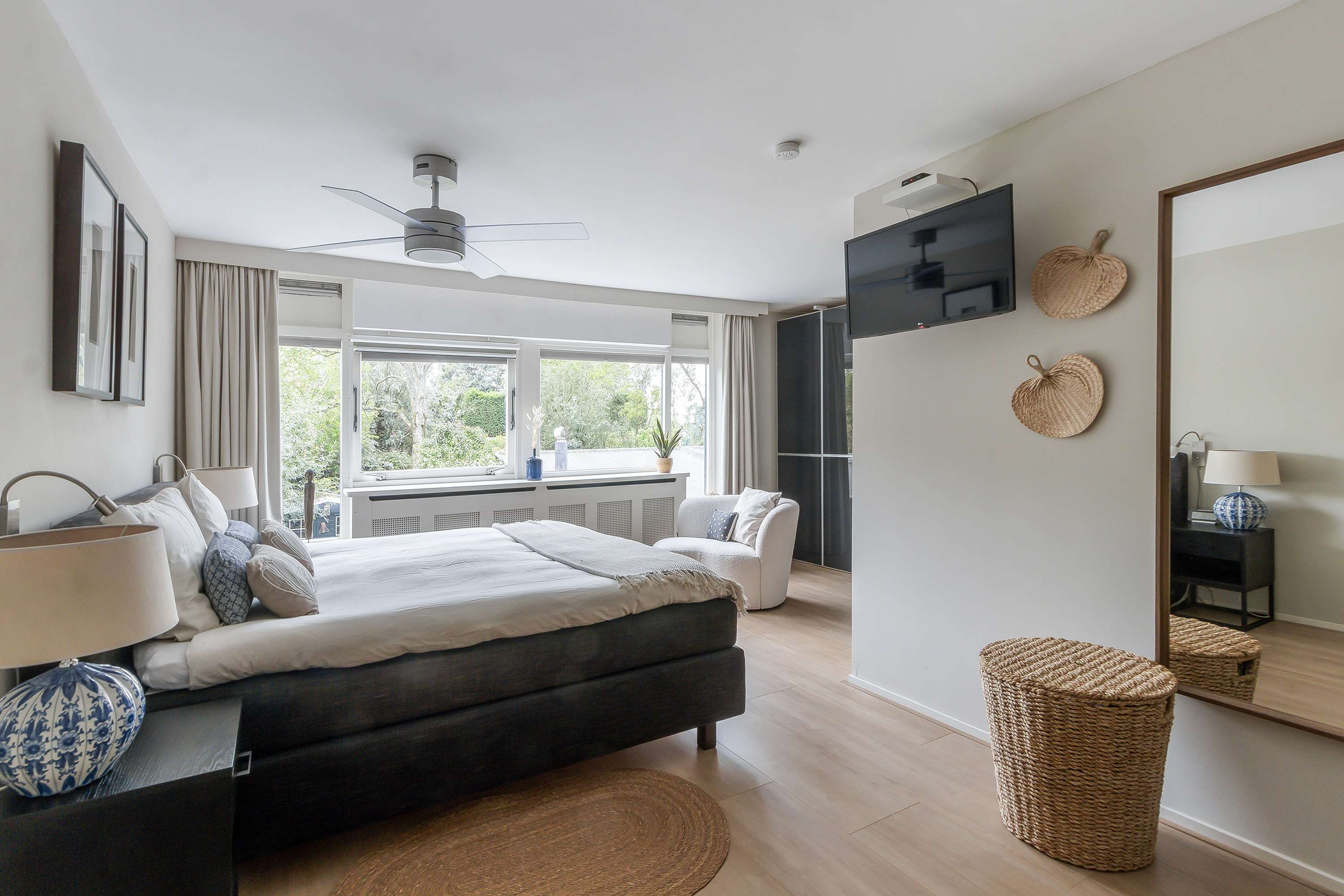 - Slaapkamer 1, gelegen aan de achterzijde, extra groot (voorheen twee slaapkamers), met elektrisch bedienbare zonneschermen en een badkamer en suite;