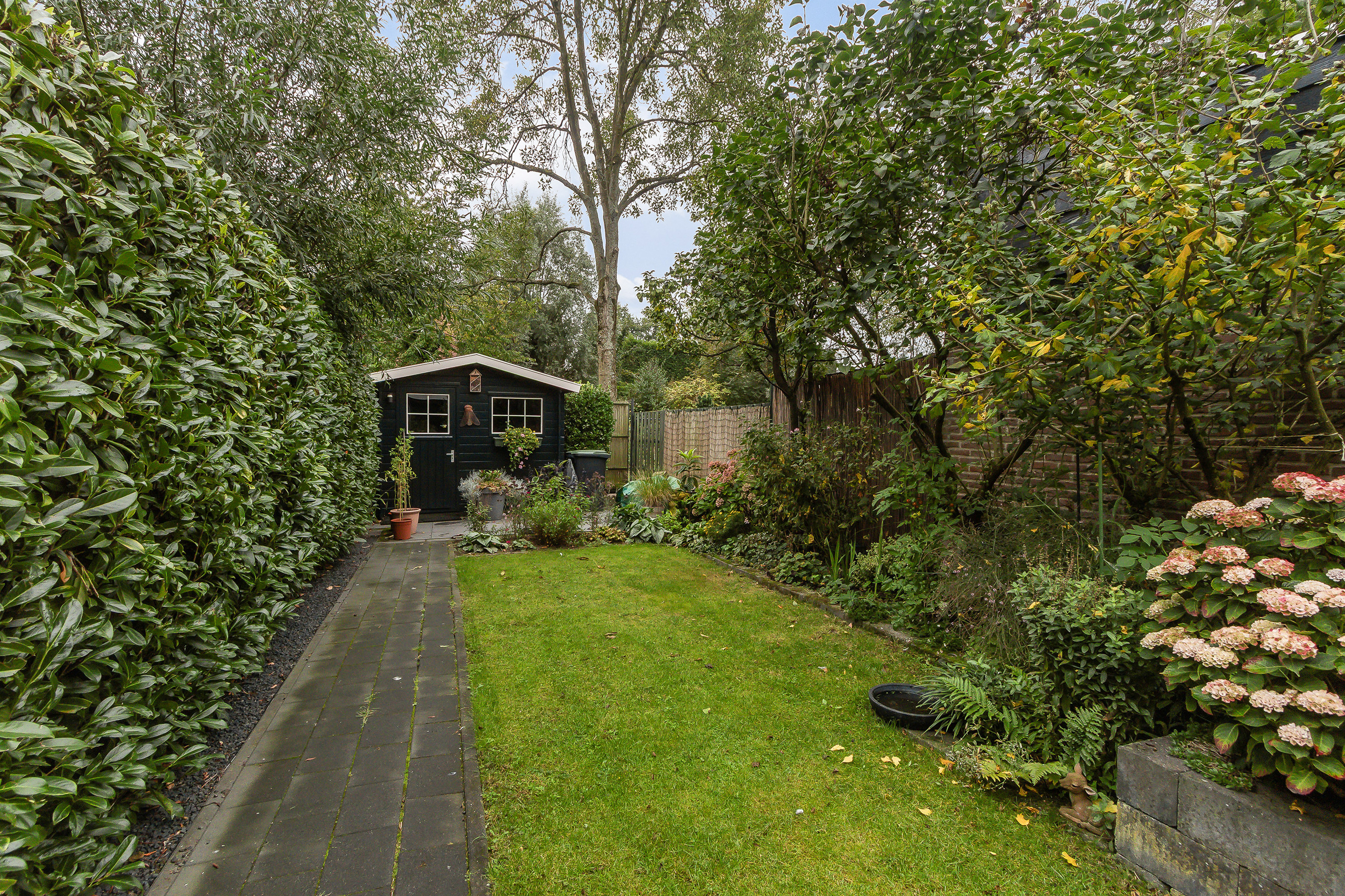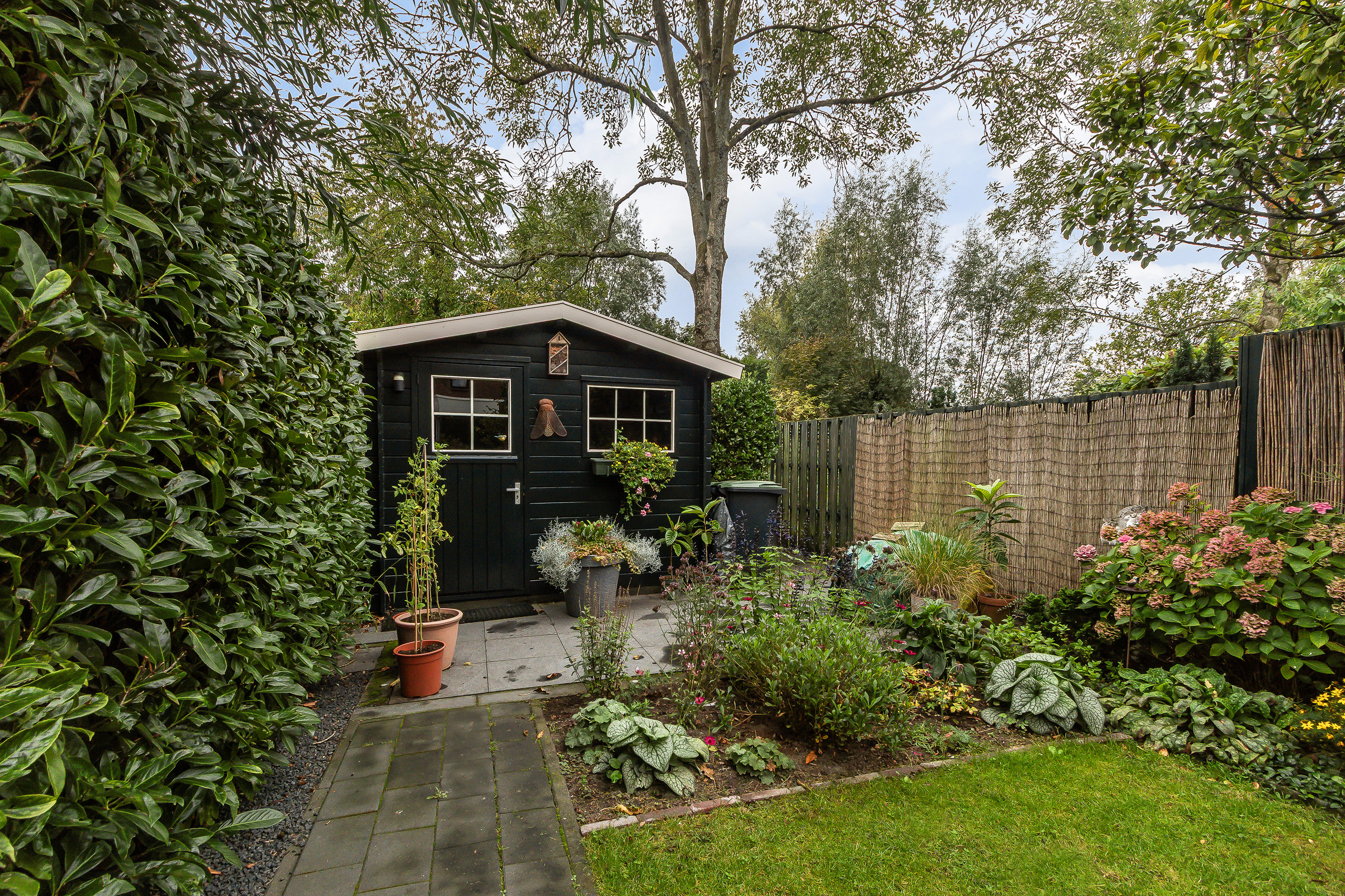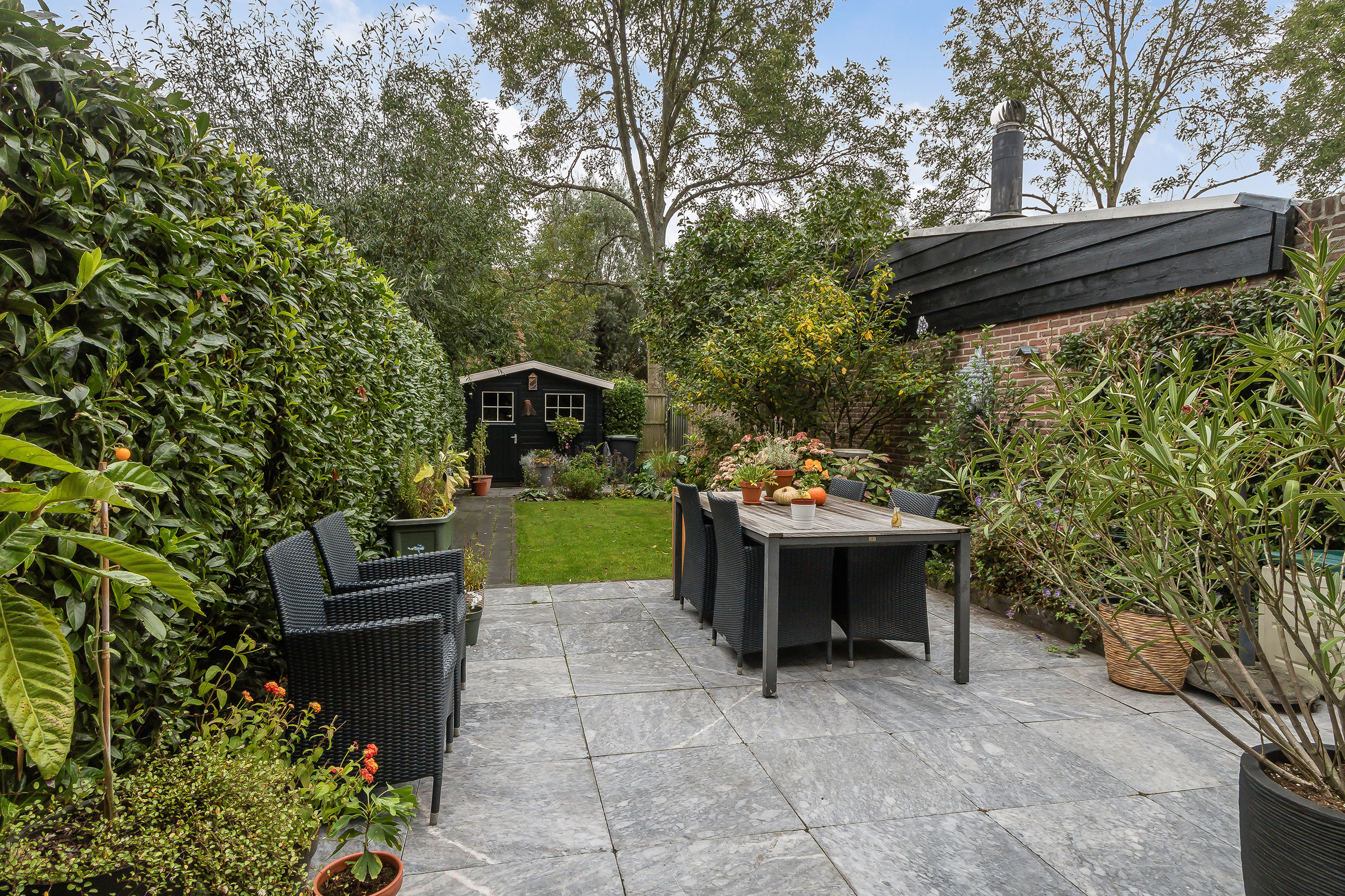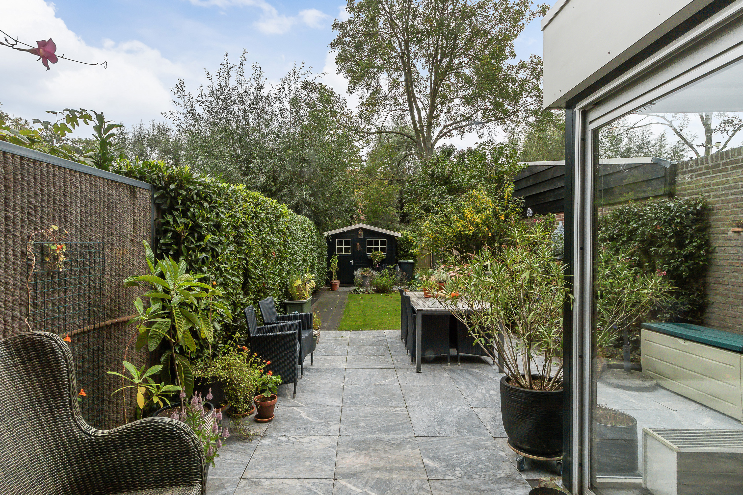 De achtertuin is een opvallend pluspunt. Bijna 20 meter diep, vrij gelegen en op het zuidoosten gesitueerd, biedt deze tuin veel privacy en volop zon. De tuin is ingericht met een groot betegeld terras, gras, borders, grind en een houten berging. Ook is er een achterom aanwezig.