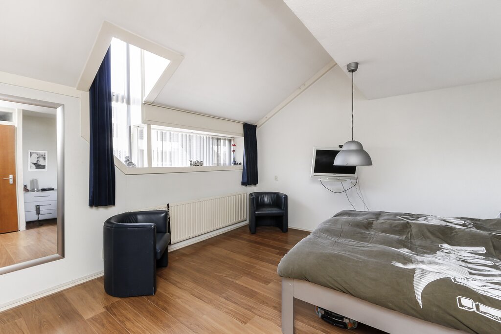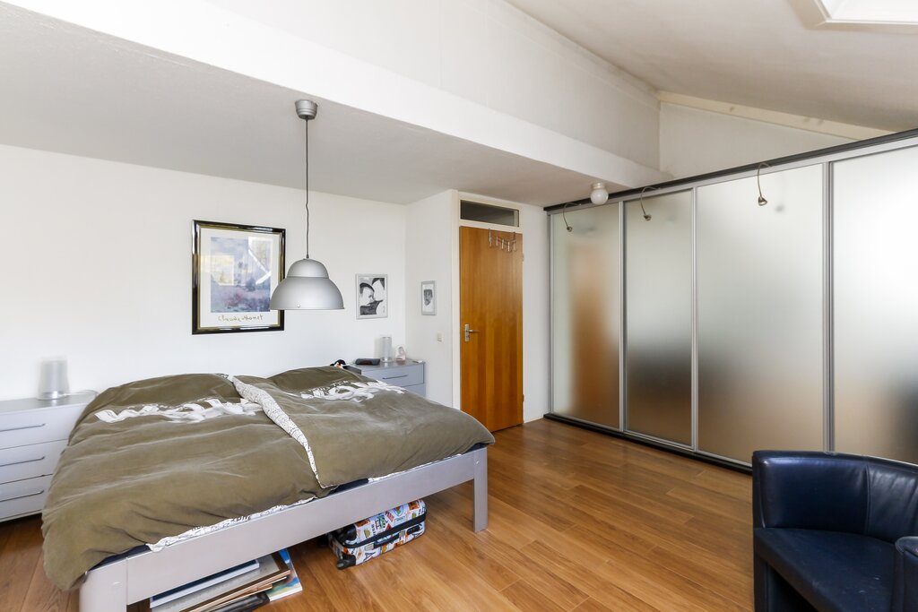 - Slaapkamer 1 gesitueerd aan de voorzijde, met schuifkastenwand over de gehele breedte incl. lichtlijst. Het plafond in deze kamer is schuin oplopend wat een ruimtelijk effect geeft;