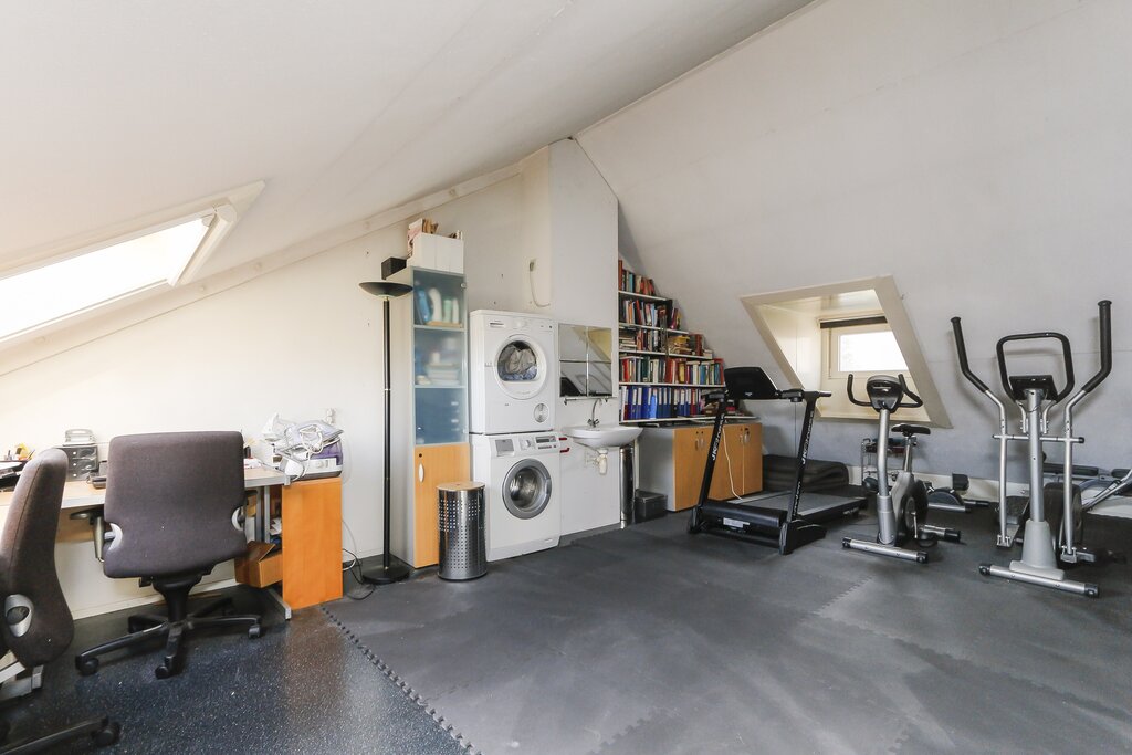 - Slaapkamer 4, ruime zolderslaapkamer met dakkapel, dakraam, wastafel, aansluiting voor wasapparatuur en een drietal inbouwkasten.