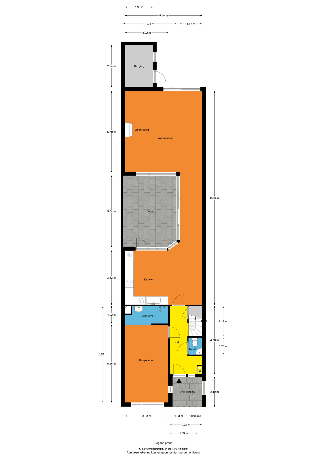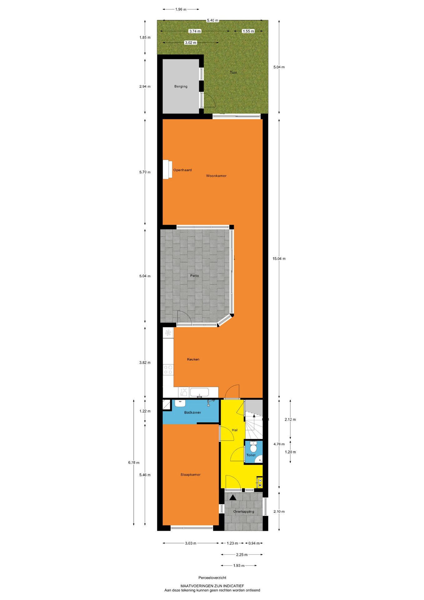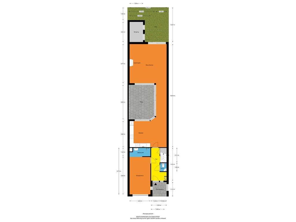 - Patiotuin: afm.: 5.04 x 3.74 m.