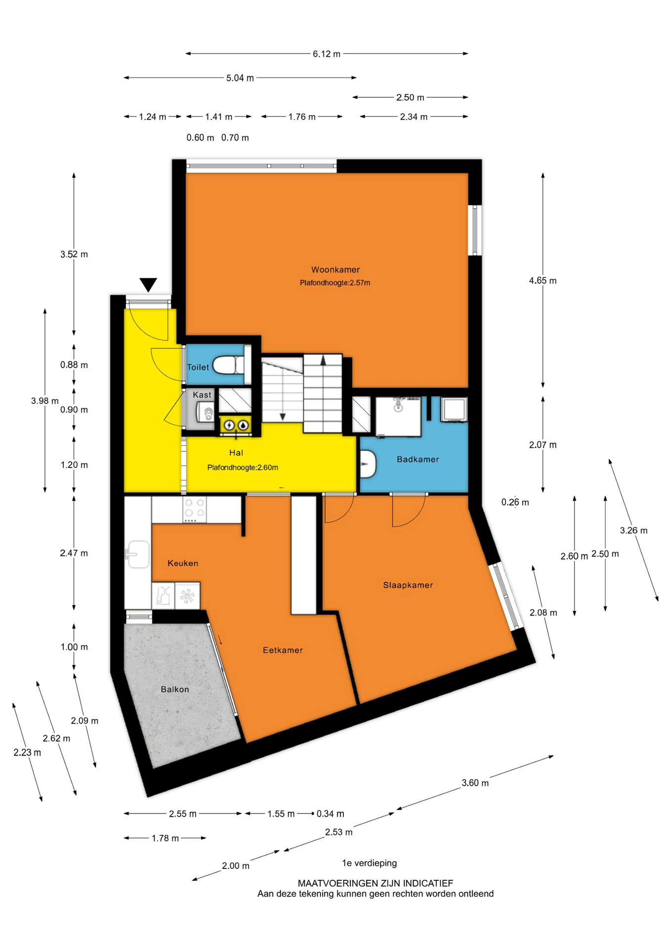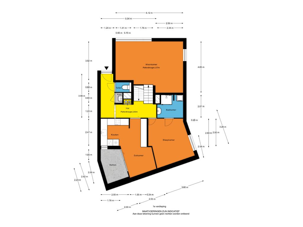 Via de entree betreedt u de hal met garderobe en toilet. Vanuit hier heeft u toegang tot de eetkeuken, een balkon, een slaapkamer mét een badkamer en-suite en de meterkast. De centraal gelegen trap verbindt de verschillende woonniveaus en vormt het hart van de woning.