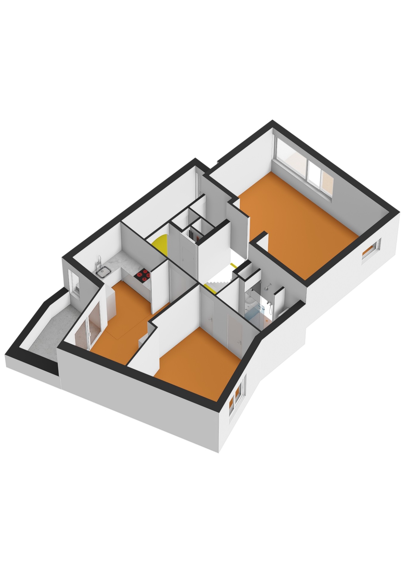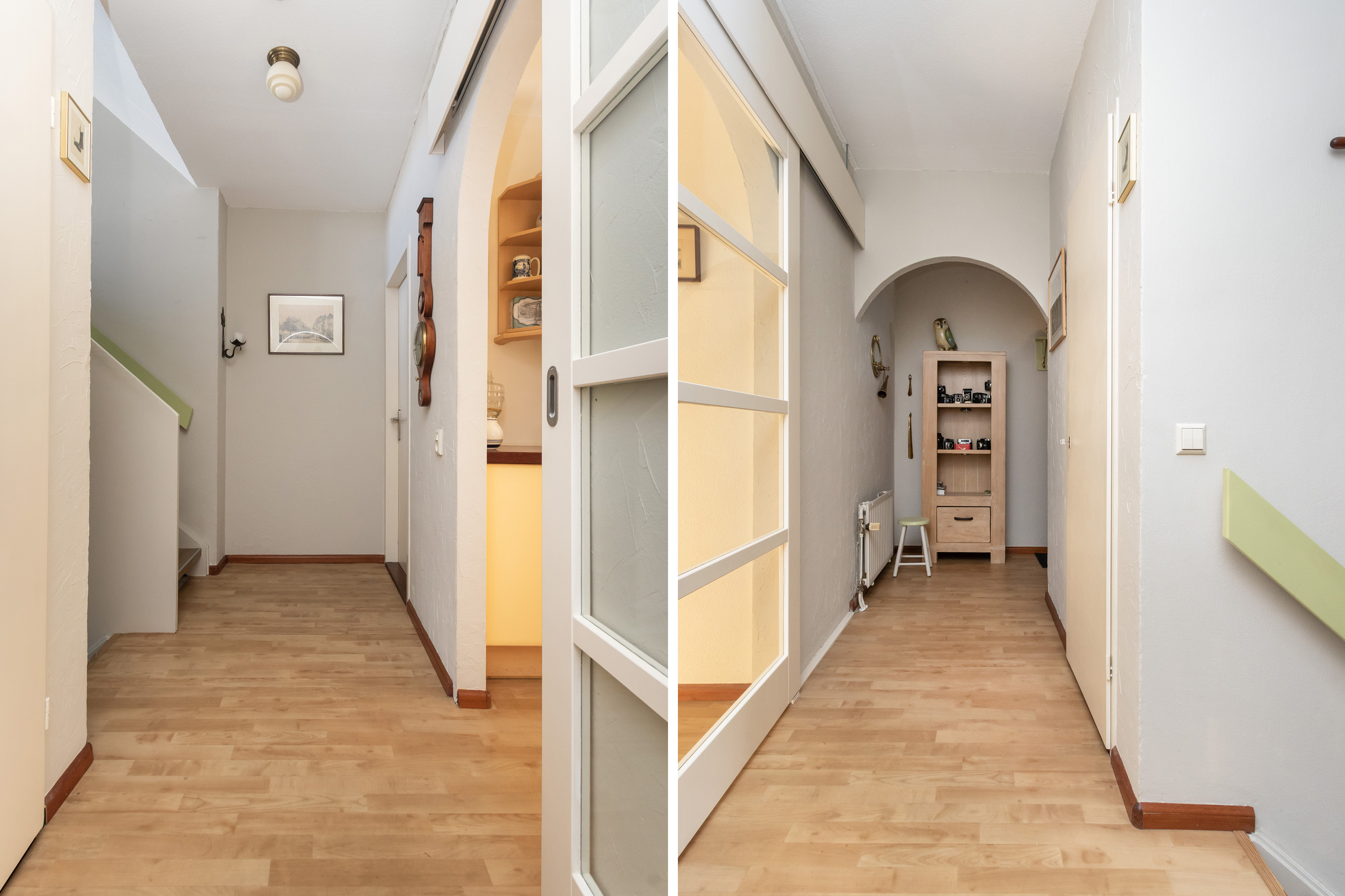 - Gang, biedt toegang tot de meterkast, cv-kast, keuken, slaapkamer en de trap naar zowel boven als beneden (split level);