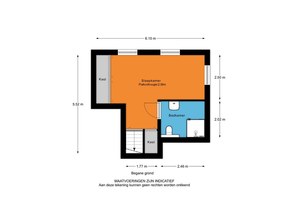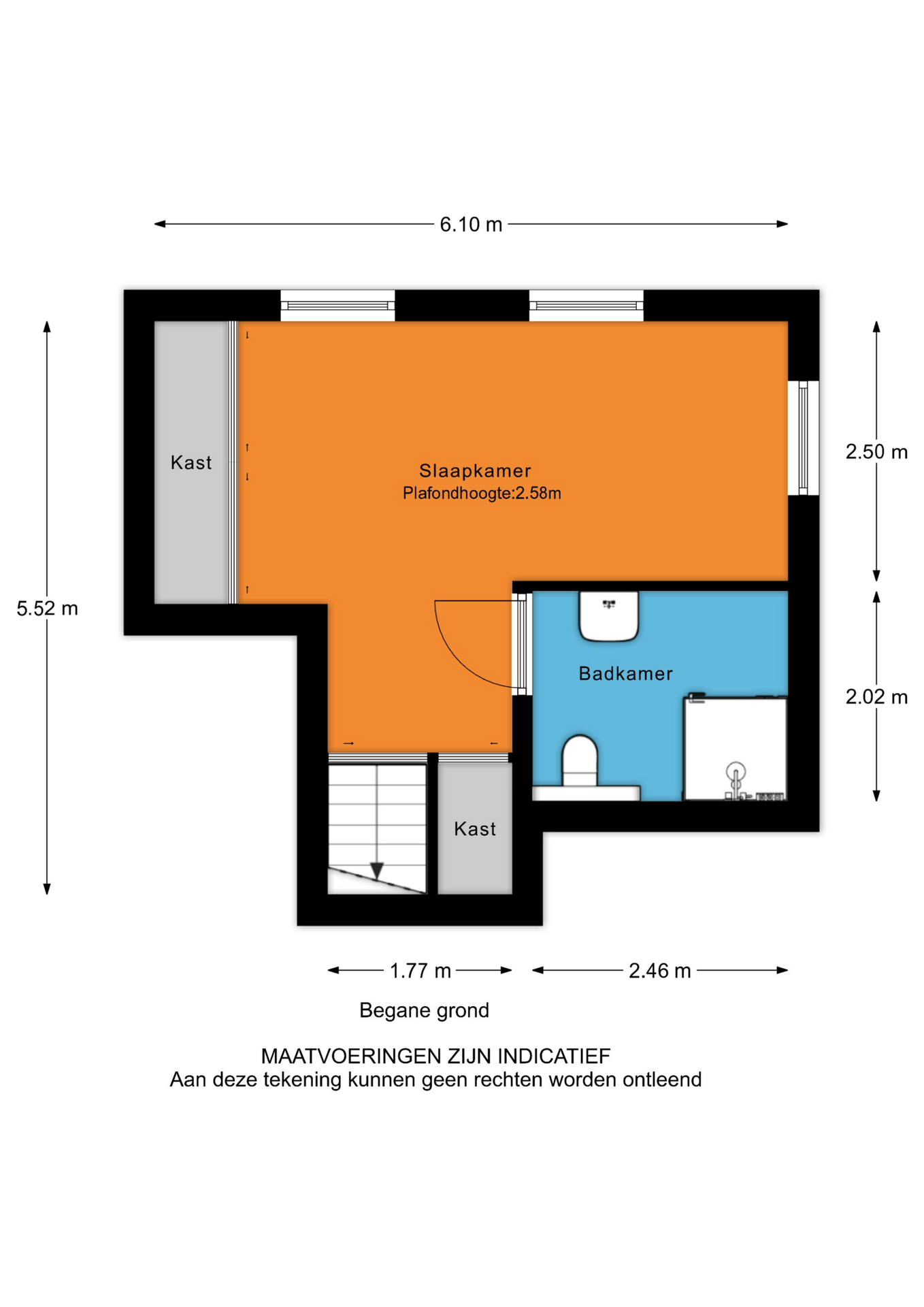 De vermelde afmetingen/ oppervlakten in deze informatie zijn gemeten op basis van de BBMI (Branche Brede Meetinstructie). De meetinstructie is bedoeld om een meer eenduidige manier van meten toe te passen voor het geven van een indicatie van de gebruiksoppervlakte. De meetinstructie sluit verschillen in meetuitkomsten niet volledig uit, door bijvoorbeeld interpretatieverschillen, afrondingen of beperkingen bij het uitvoer en van de meting.