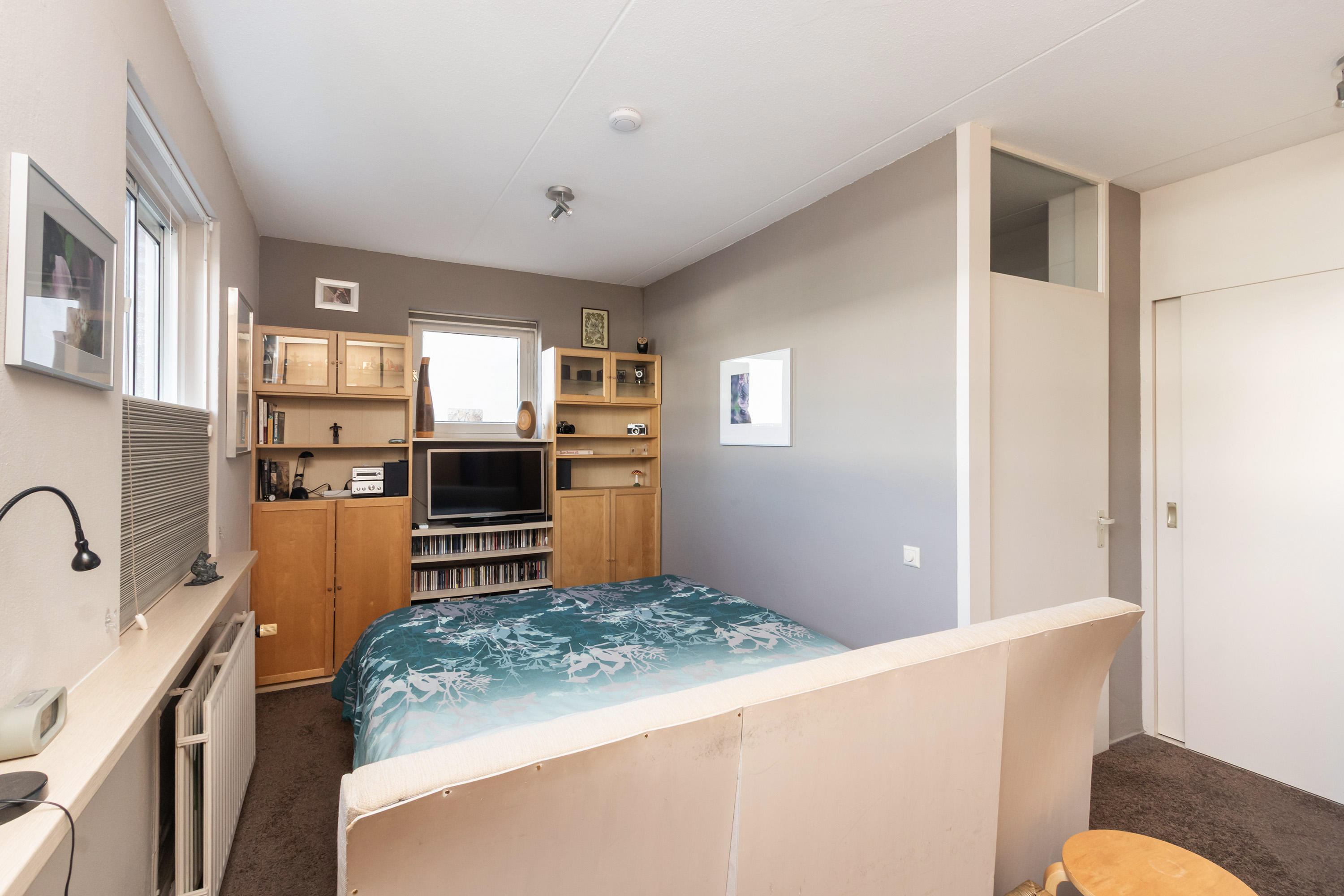 - Slaapkamer 2, gelegen aan de voorzijde, grote kamer met een schuifkastenwand met een ‘walk-in-closet’. Extra lichtinval dankzij het zijraam;