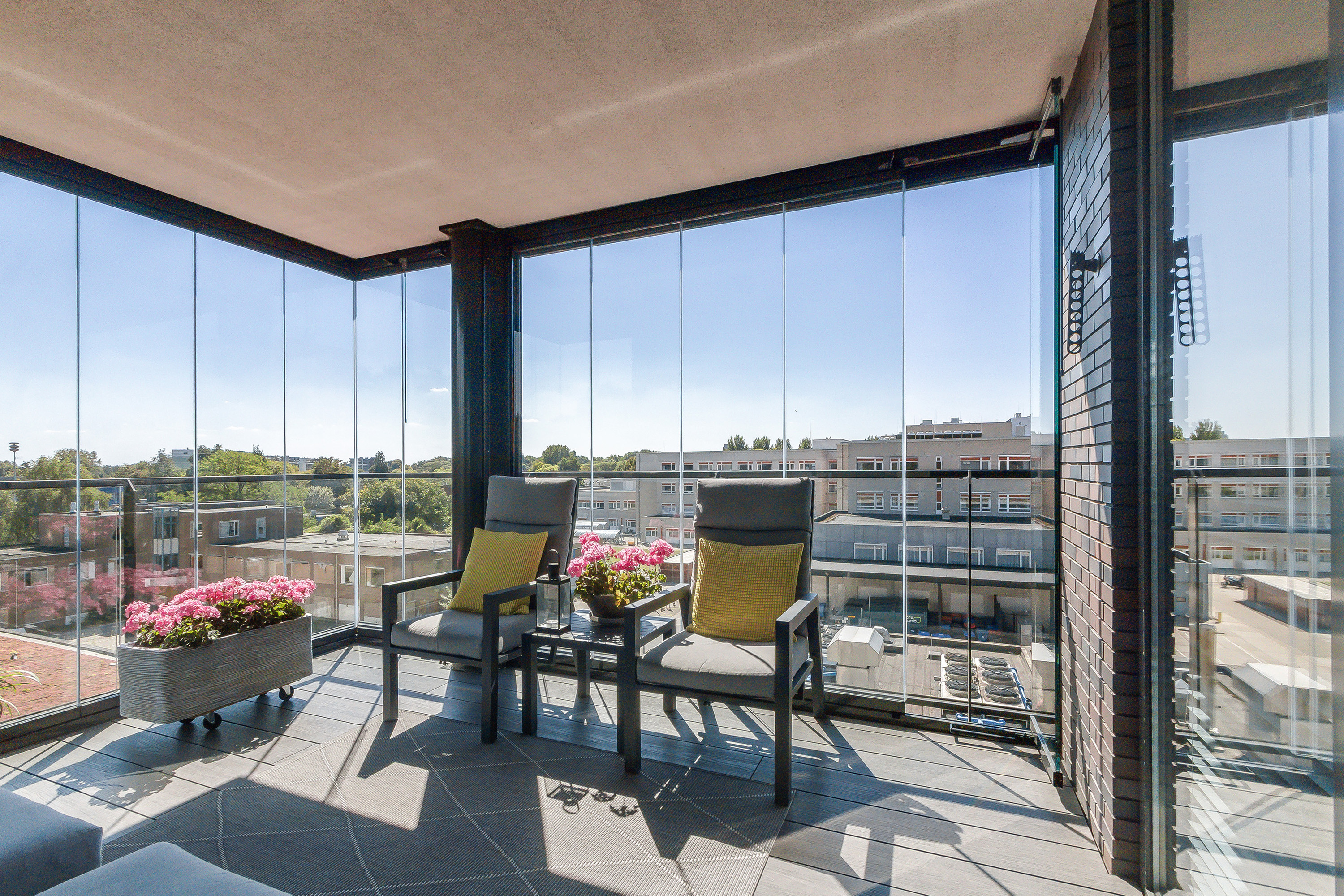 De royale lengte van ca. 16,70 meter en breedte van ca. 7,85 meter zorgen voor een ruimtelijk gevoel, dat wordt versterkt door de prettige lichtinval en het vrije uitzicht. Aan de voorzijde kijkt u uit op het groene Overkamppark, terwijl u aan de achterzijde, dankzij de ligging op het zuidwesten, geniet van zon op uw loggia tot het einde van de dag. De hogere ligging op de vierde verdieping biedt een mooi, weids uitzicht, mét nog steeds contact met het leven op straat.