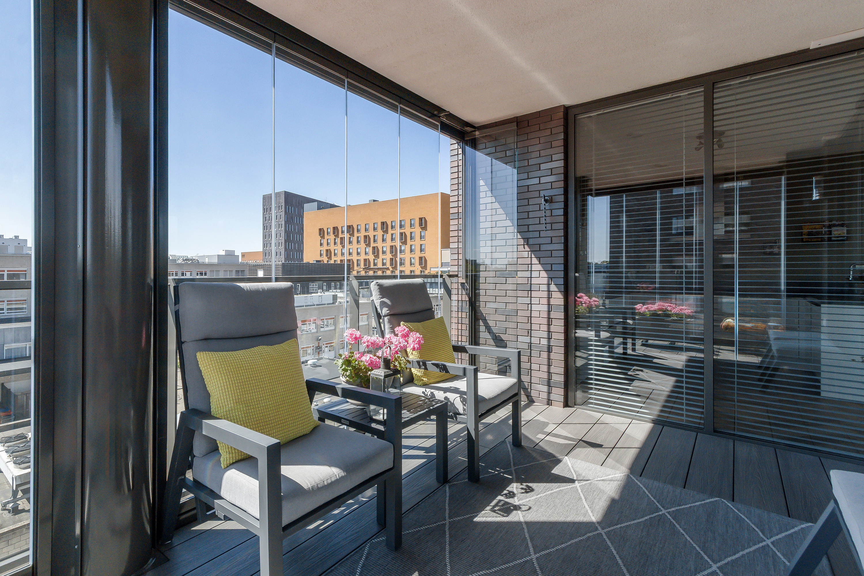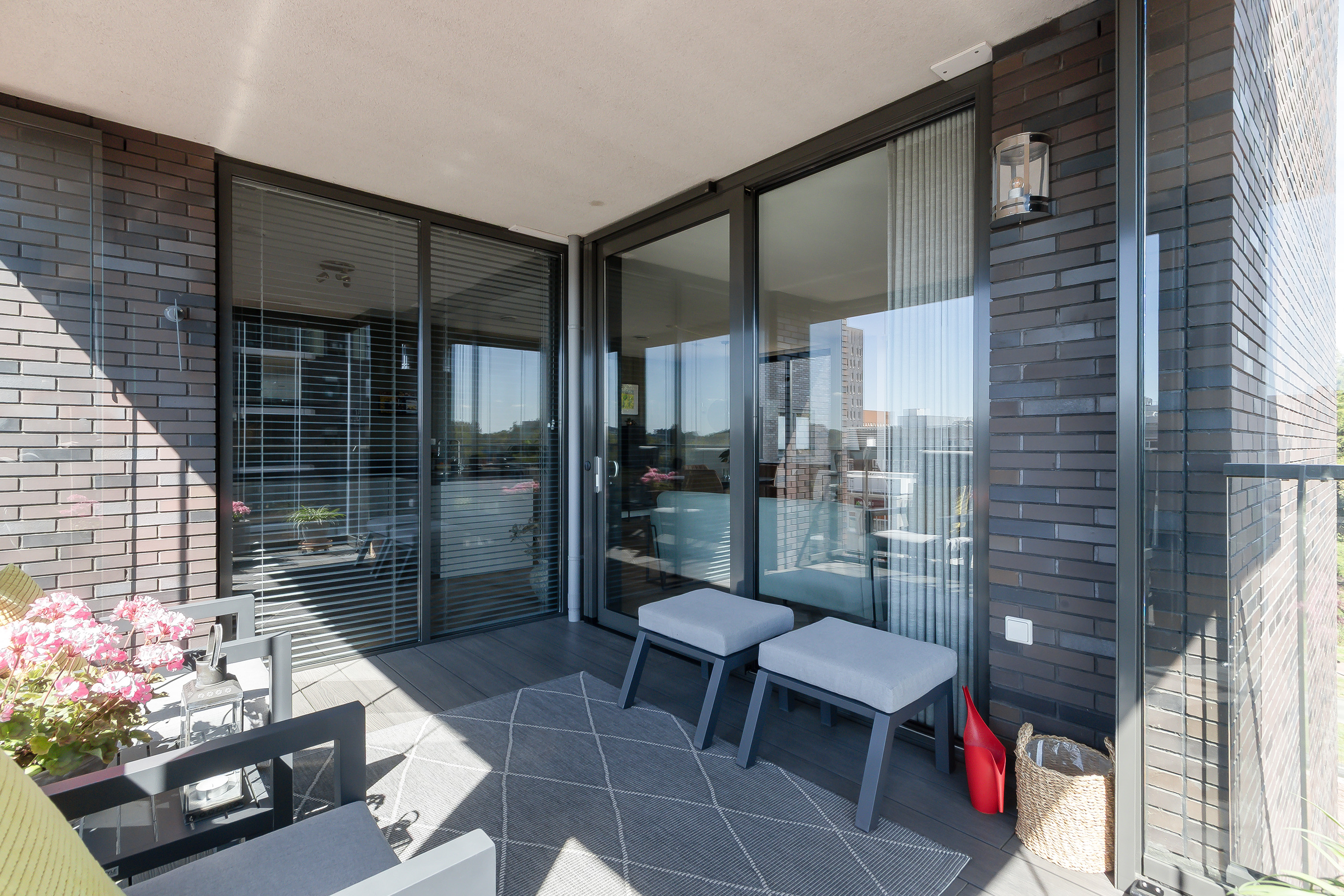 - Loggia, gesitueerd op het zuidwesten met nette composiet vlondervloer, v.v. elektra, hardglazen schuiflamellen en elektrische screens;