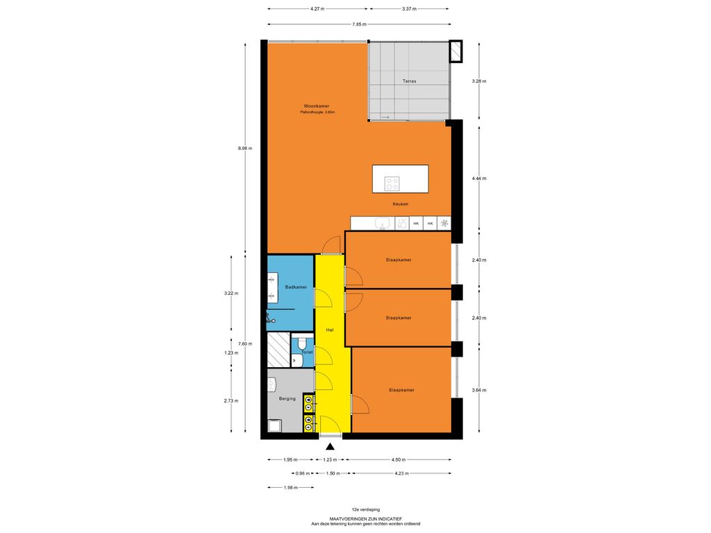 De vermelde afmetingen/ oppervlakten in deze informatie zijn gemeten op basis van de BBMI (Branche Brede Meetinstructie). De meetinstructie is bedoeld om een meer eenduidige manier van meten toe te passen voor het geven van een indicatie van de gebruiksoppervlakte. De meetinstructie sluit verschillen in meetuitkomsten niet volledig uit, door bijvoorbeeld interpretatieverschillen, afrondingen of beperkingen bij het uitvoer en van de meting.