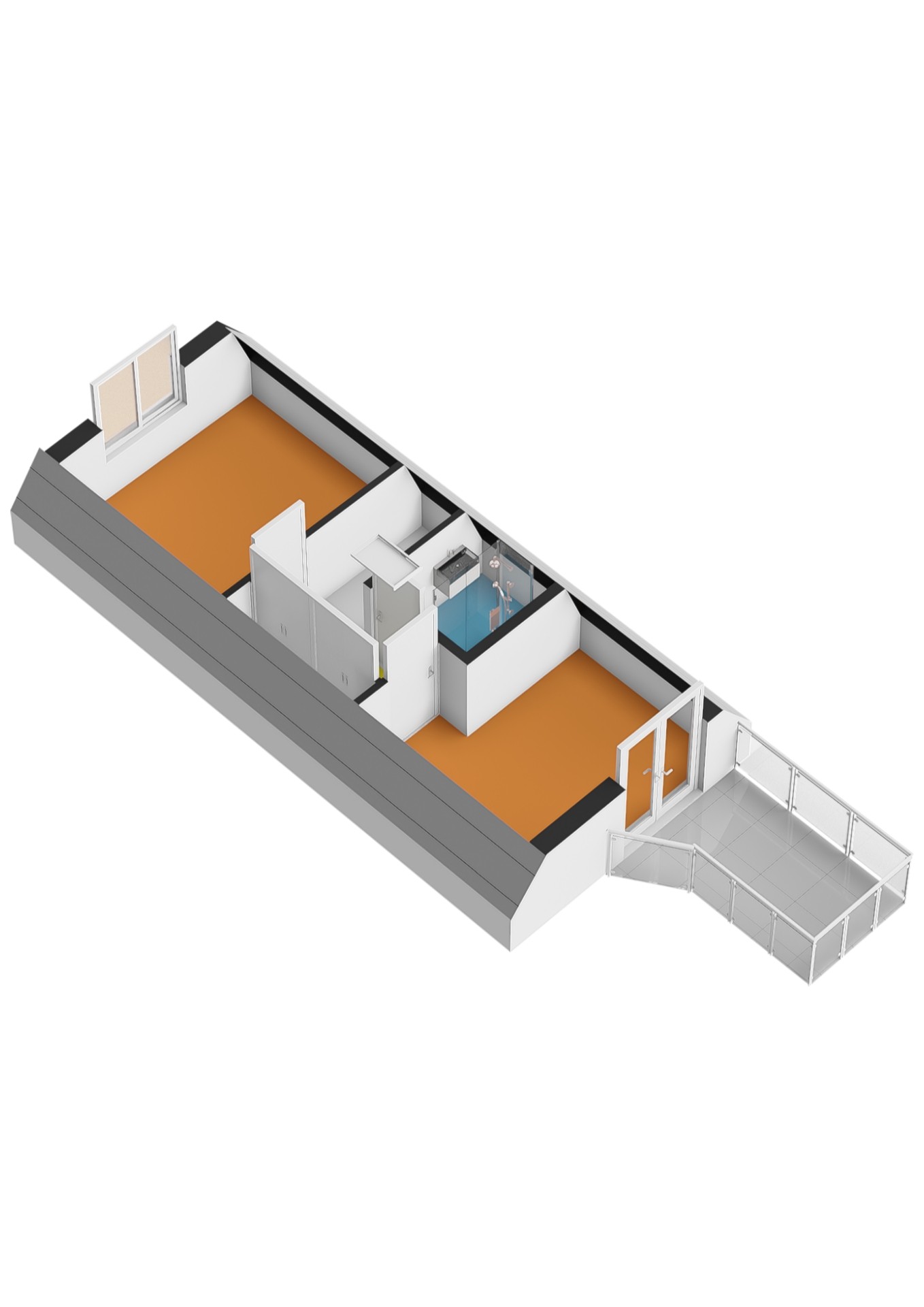 - Dakterras van ca. 6 m² voorzien van hardhouten planken, gelegen op het zuidwesten.