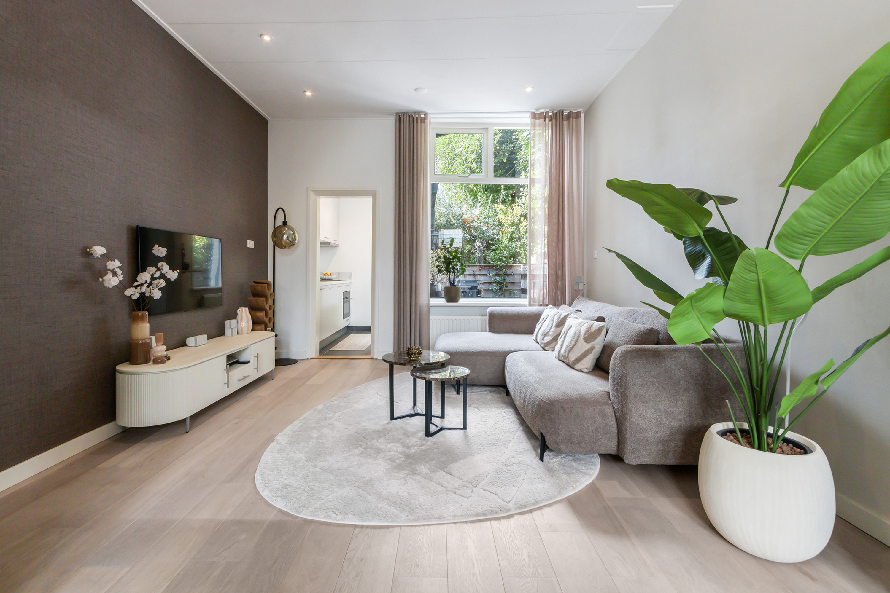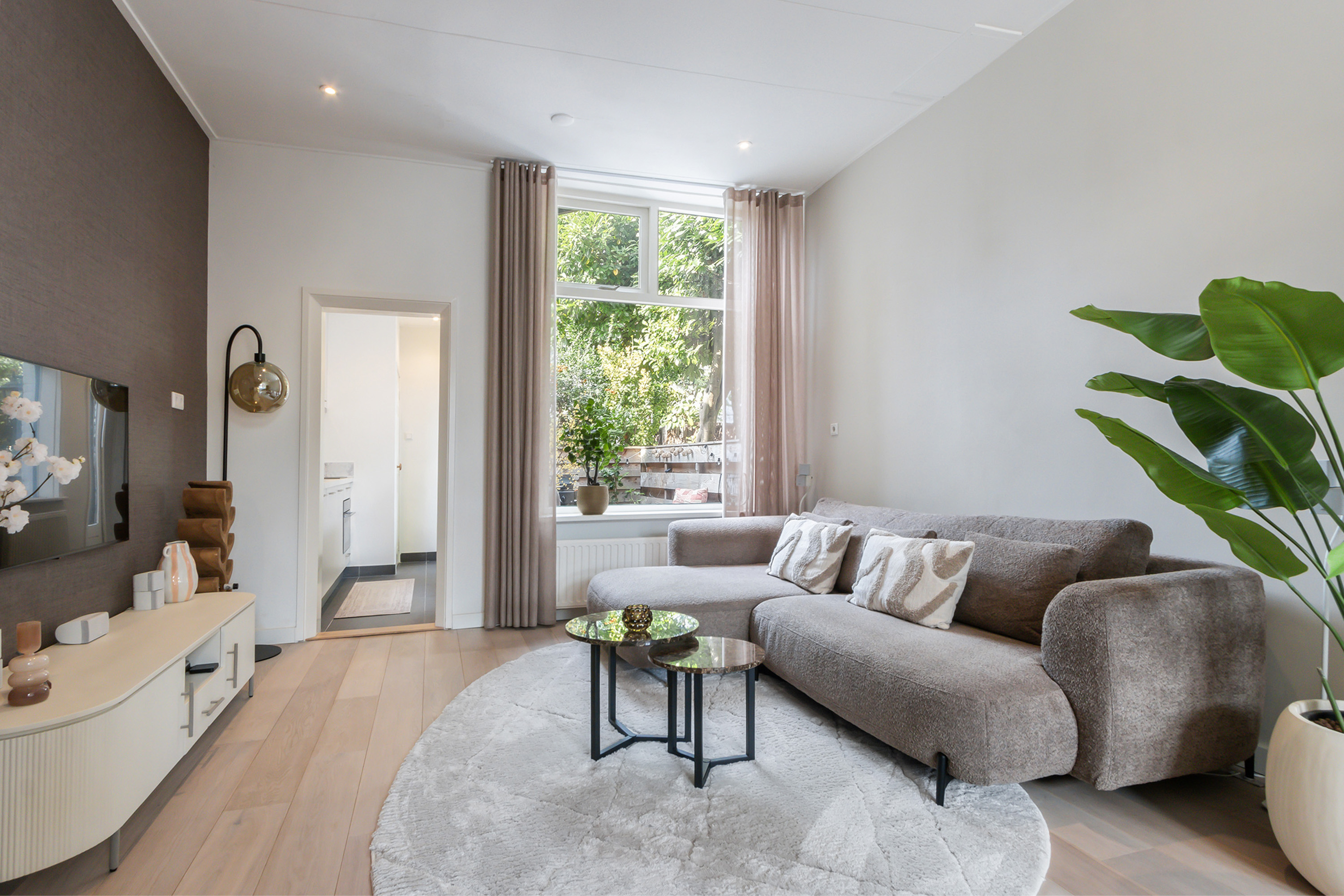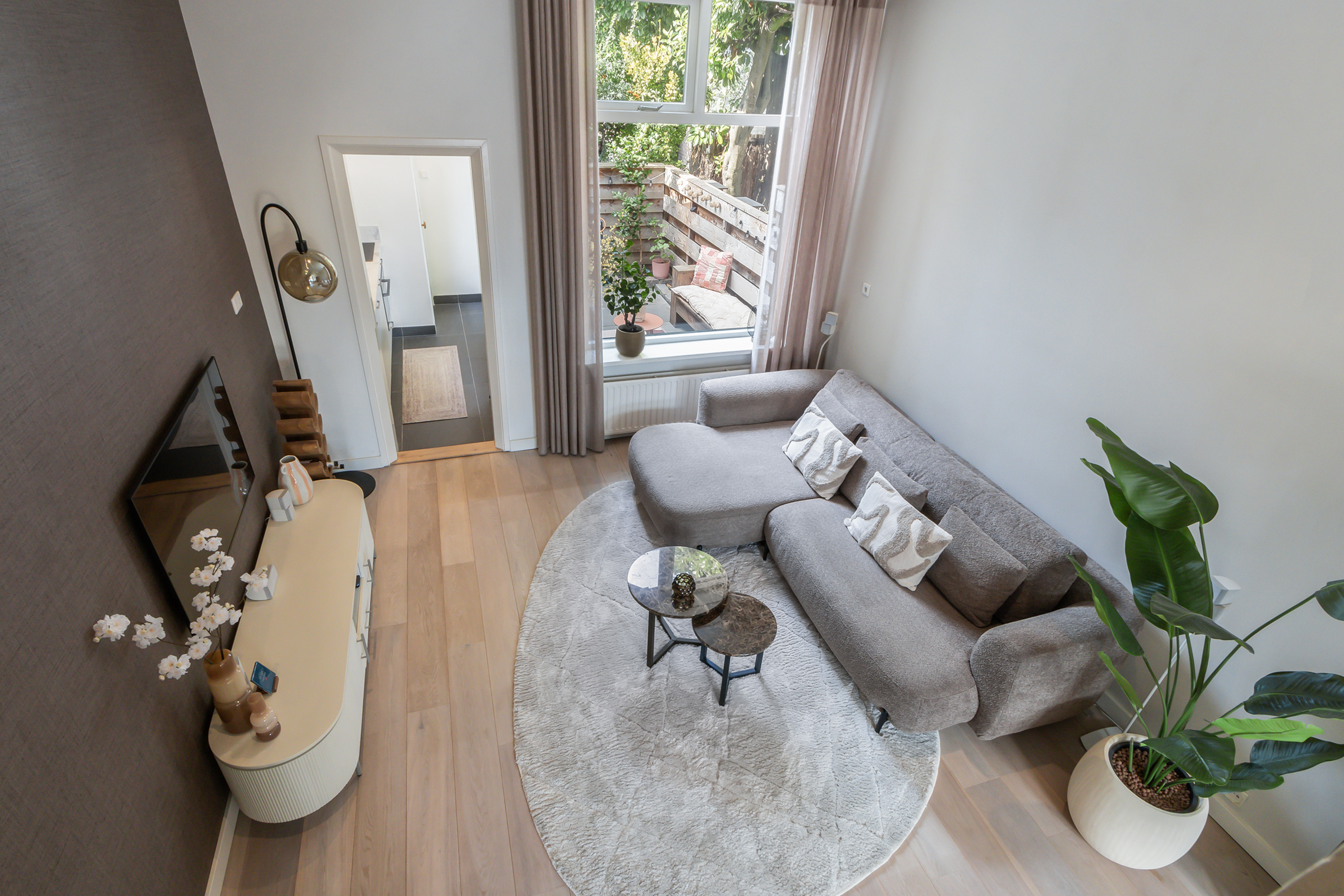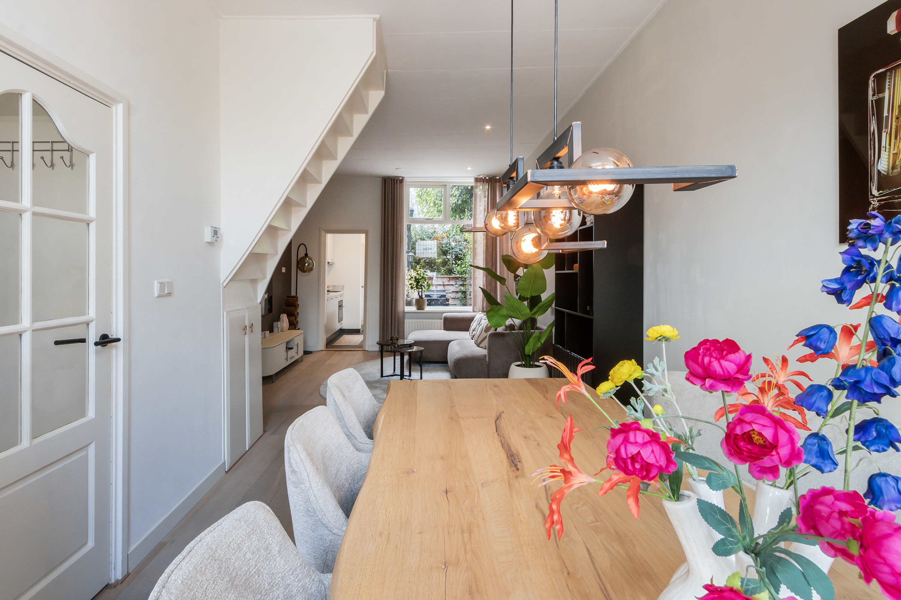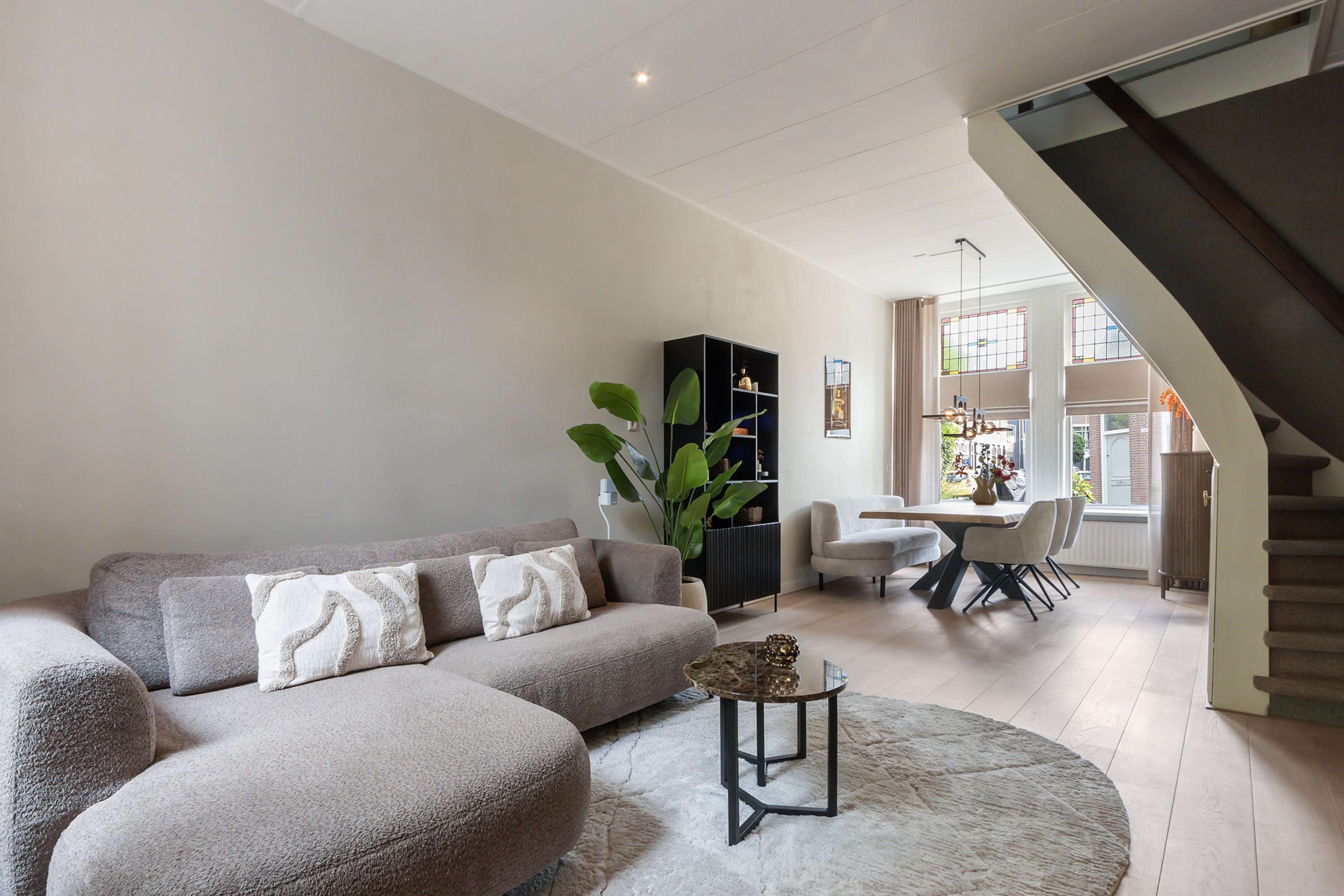 - Lichte doorzon woonkamer, hoge plafonds en trapkast;
