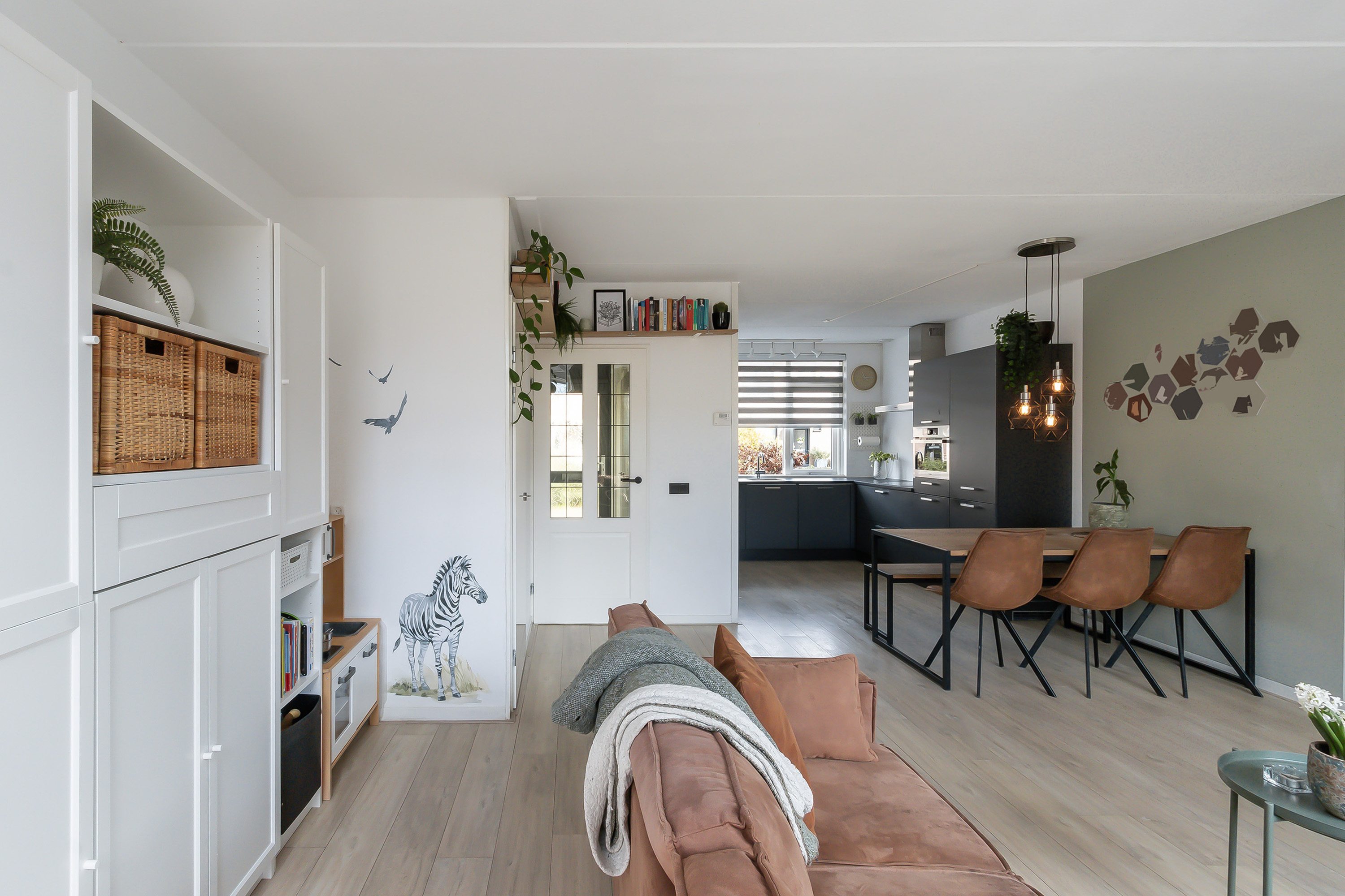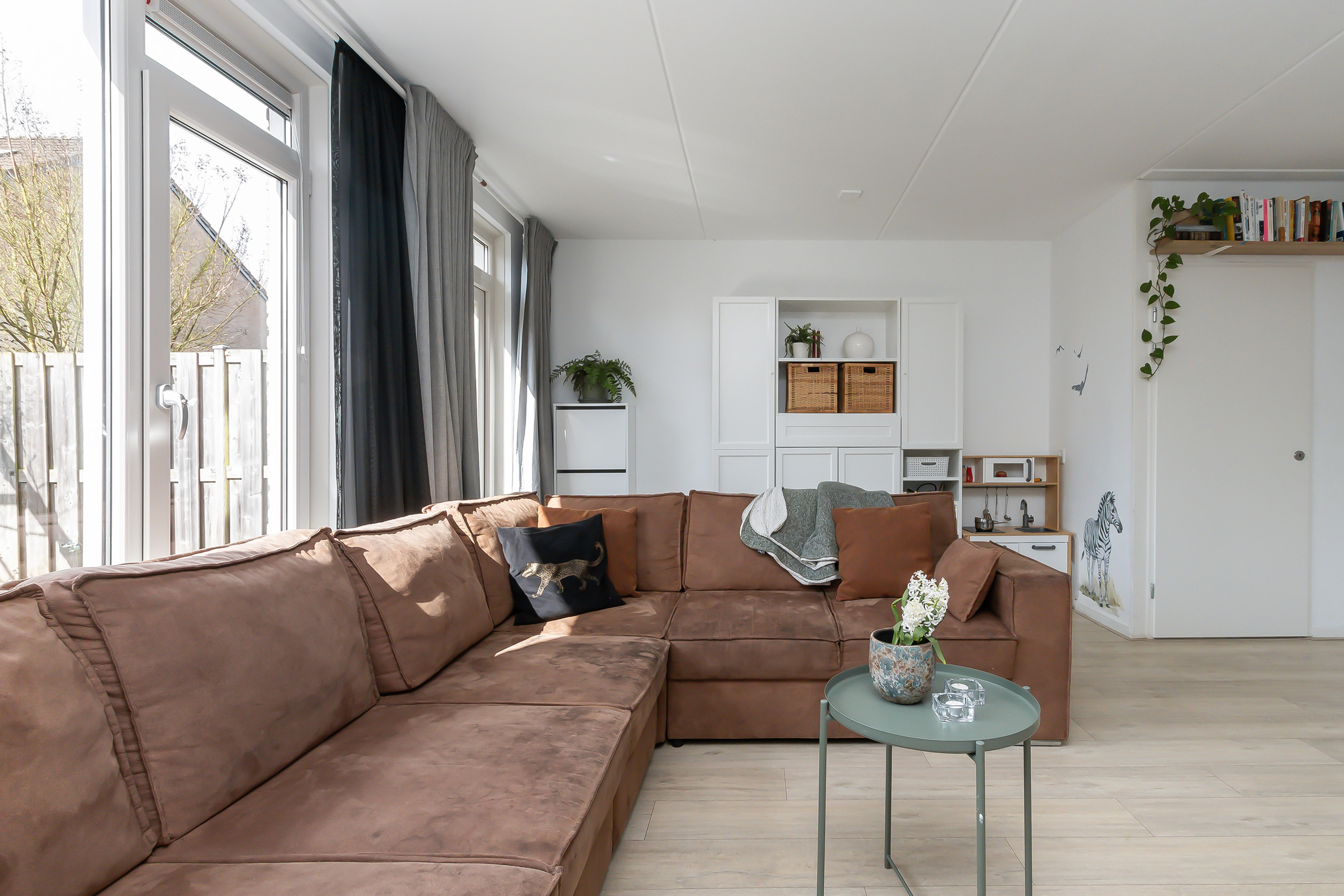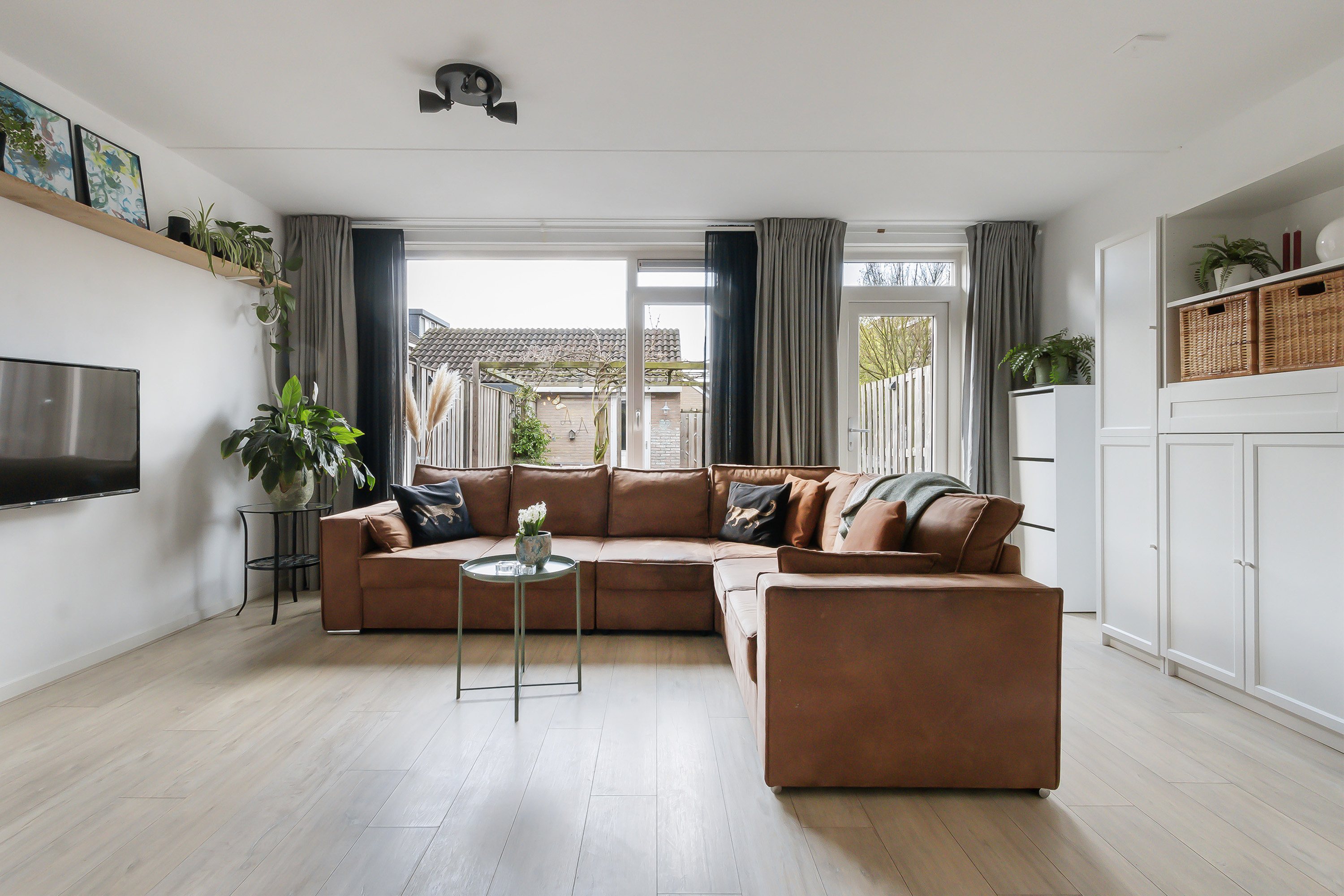 - Woonkamer, voorzien van laminaatvloer en een praktische inpandige kast;